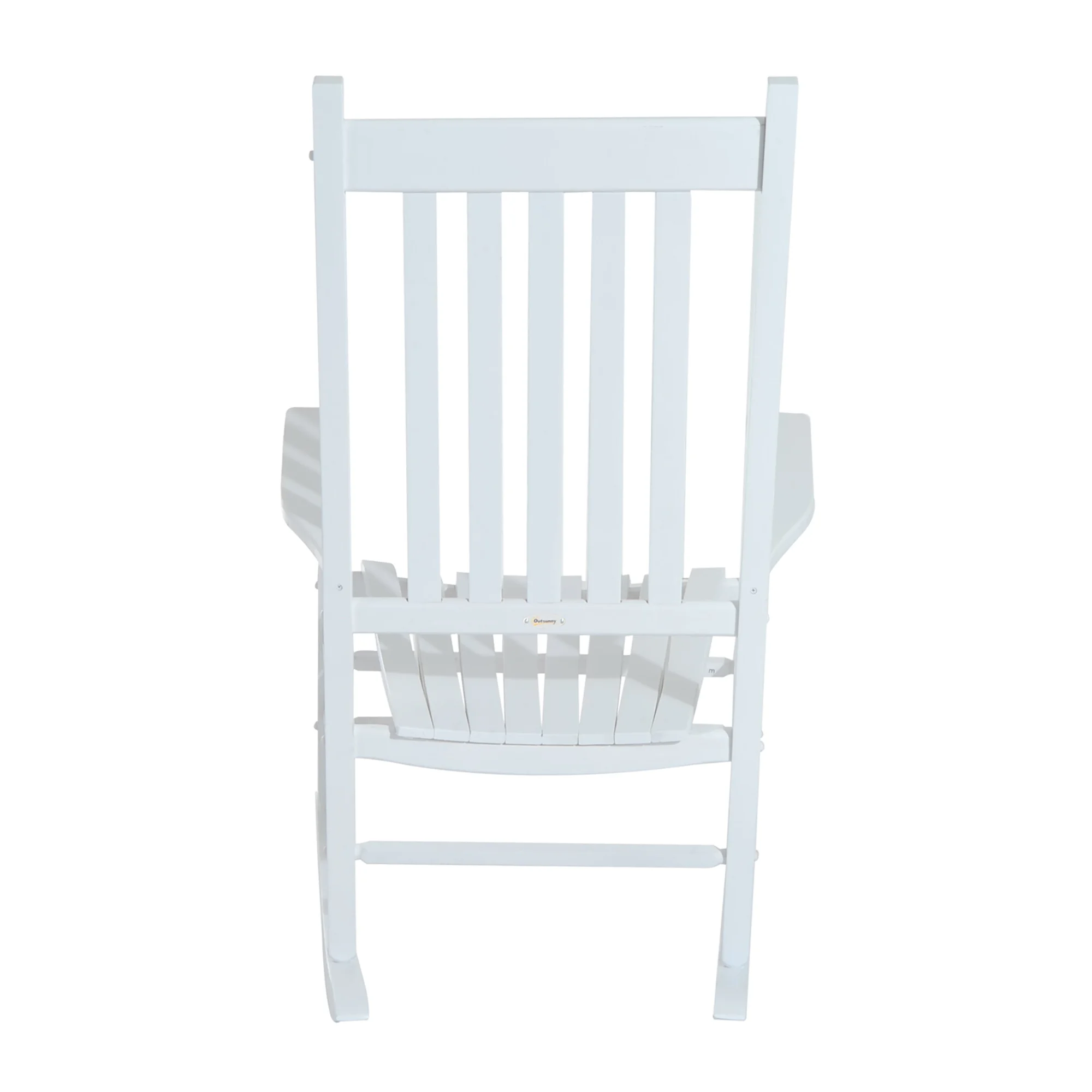 Outsunny Outdoor Rocking Chair, Patio Wooden Rocking Chair with Smooth Armrests, High Back for Garden, Balcony, Porch, Supports Up to 352 lbs, White