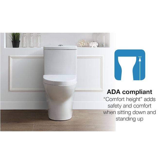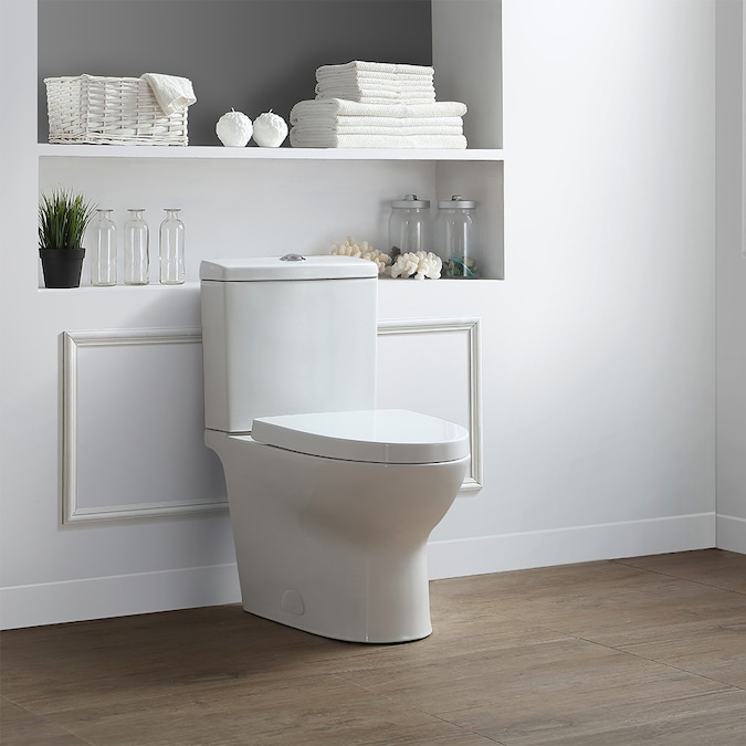 Add minimalist modern style to your bathroom with the Beverly elongated 2-piece toilet from OVE Decors. A roomier bowl and ADA compliant height prioritizes your comfort and makes standing and sitting easier. Features a sleek skirted design, concealed trapway, overhang seat cover, and soft-close elongated seat. Powerful WaterSense certified dual flush technology eliminates the problems of older ball-chain flapper systems.