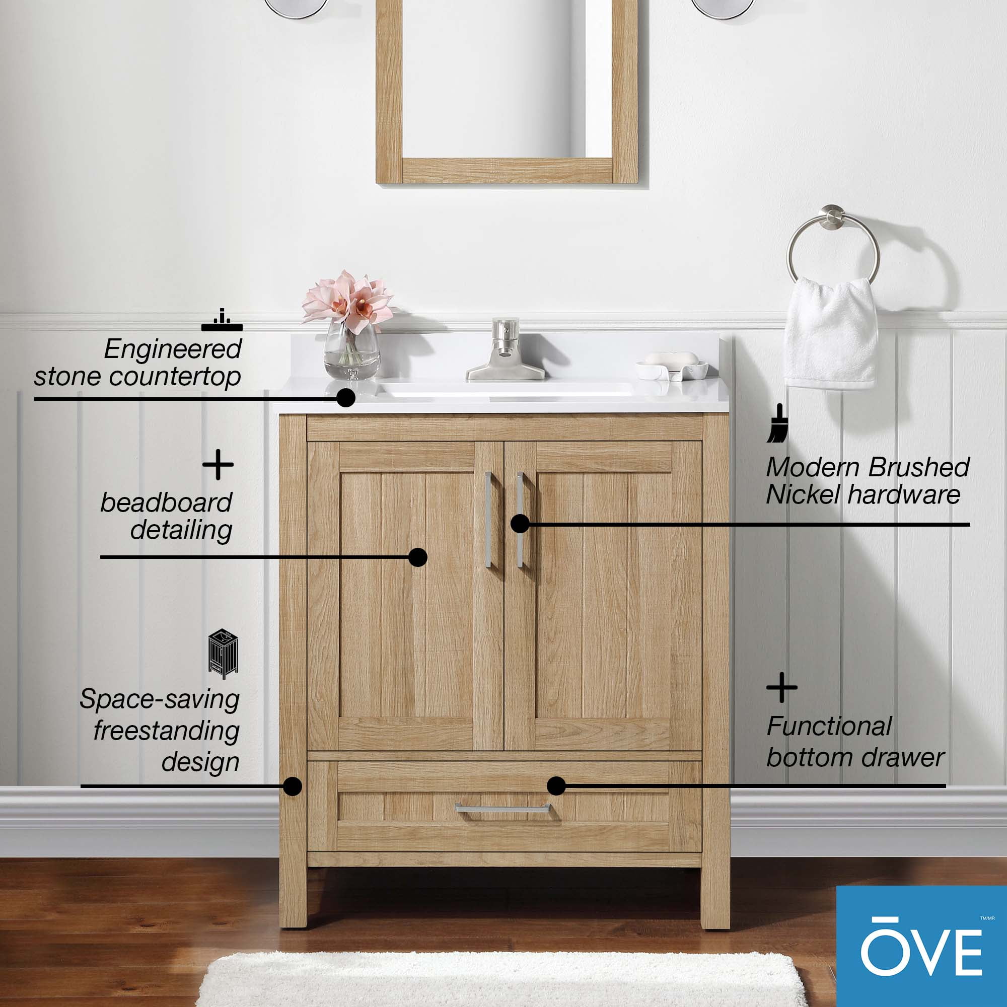 Ove Decors Kansas 30 W x 19″ D Freestanding Bathroom Vanity with Sink, White Oak