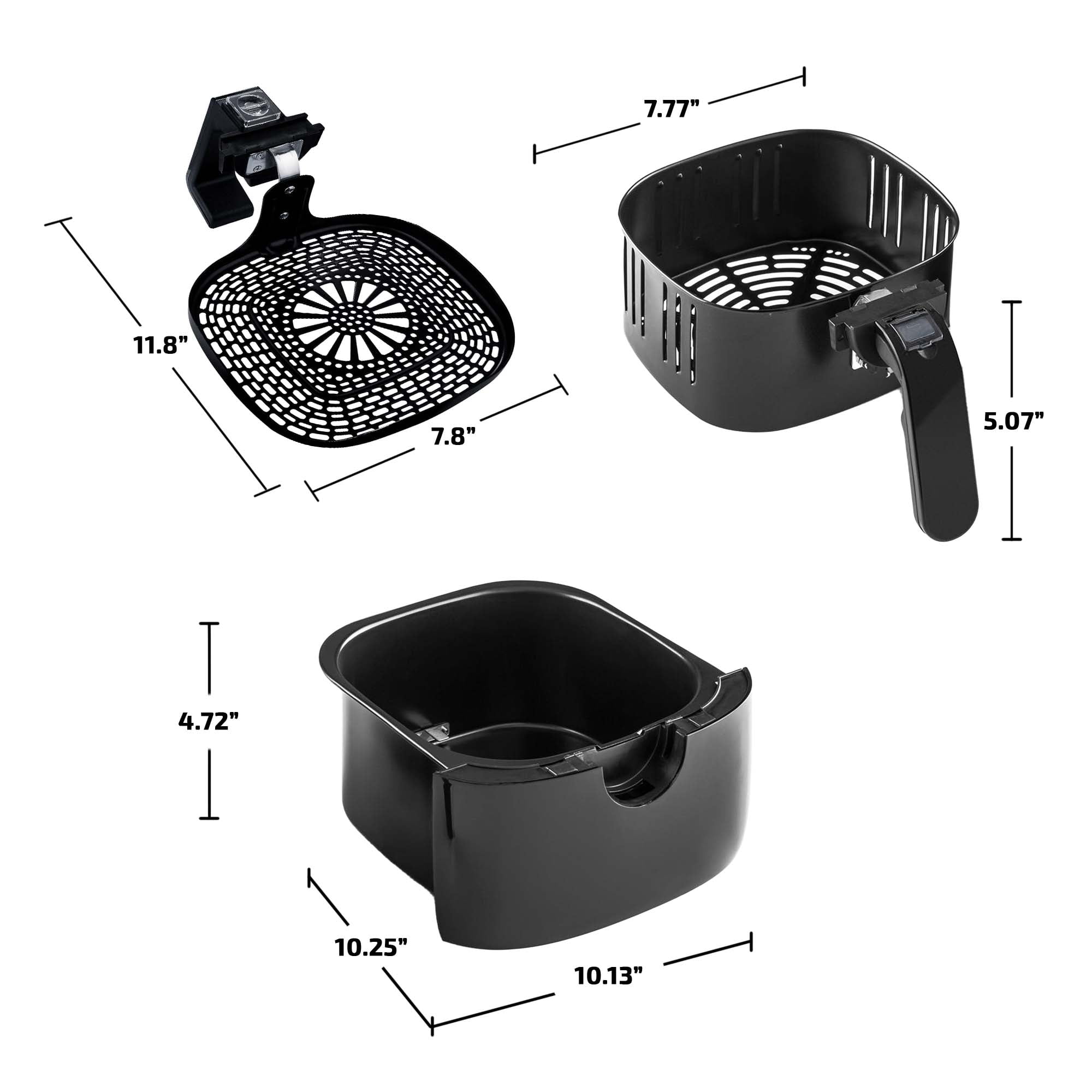 LESS OIL, MORE FLAVOR – On average, air fryers use 70% less oil than conventional frying methods, saving you money. With an air fryer, you can taste the true quality of your fried foods, instead of it being saturated in greasy oil POWERFUL & ADJUSTABLE – Comes equipped with 1400W power, high-speed air circulation technology, a touch-sensitive control panel and a clear digital LED display screen CONVENIENT – Features 6 preset cooking programs (fries, fish, steak, pastries, etc) a timer (< 60 min), a fold-in handle for portability and easy storage, has dishwasher-safe parts, and auto shut-off for safety. VERSATILE – Fry, bake, grill, and roast anything with this extremely versatile appliance! From homemade French fries to brownies, it does it all with a simple touch! The instruction manual also includes recipes. FANTASTIC VALUE – Your purchase of an Ovente Air Fryer also comes with a bonus grill/fry pan and a fry basket to suit your versatile cooking needs. GUILT-FREE FRYING – Stay healthy by cooking with 85% less oil for fat-free delicious meals. The same flavor and crispy finish without the added calories. Enjoy juicy fish fillets, nuggets, chicken tenders or crispy veggie chips without fatty oils with our new Air Fryer. LIMITLESS CREATIONS – Fry, bake, grill and roast, this air fryer can pretty much do it all! Just choose the appropriate setting from the six cooking presets; frozen fries, homemade fries, steak, drumsticks, fish and cupcake. Has a powerful 1400-watt with a high-speed air circulation technology that cooks food quickly and thoroughly. EASY TO USE – Everything you need to know is displayed in the digital LED display that is operated via touch. Comes with a free grill pan and non-stick frying basket. Changing from one accessory to another is fast too. Simply press the eject switch and snap the detachable handle onto the accessory that you need and you’re all set. PORTABLE & SPACE-SAVER – This lightweight and compact 12 lb air fryer only needs a little countertop space. A must-have item! Ideal for a small apartment, office, or college dorm. Features an auto shut-off and cool-touch handle for added safety. US-BASED CUSTOMER SERVICE LETS YOU BUY WITH CONFIDENCE – OVENTE warranties that the product shall be free from defects in material and workmanship under normal use and conditions, for 1 year from the original purchase date.