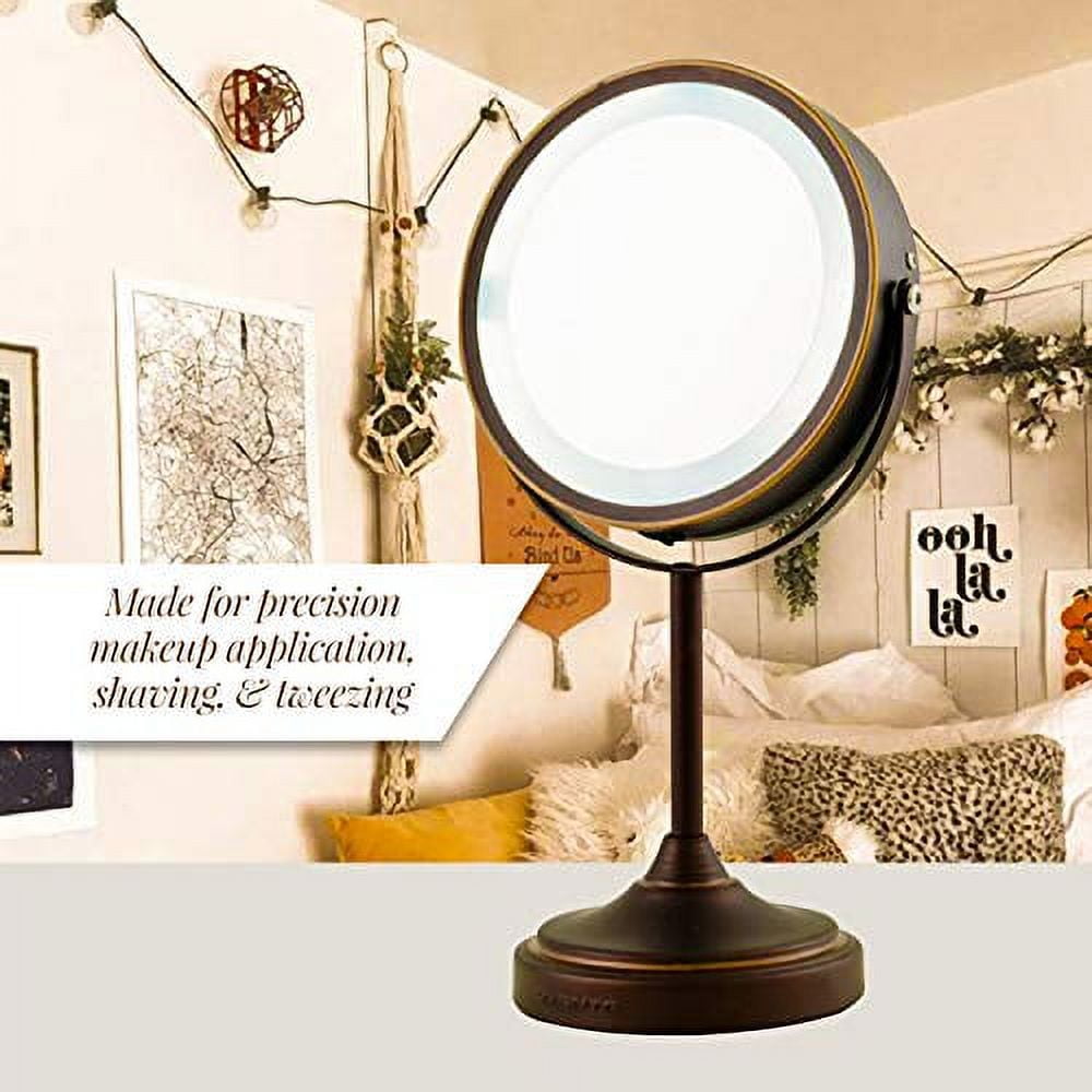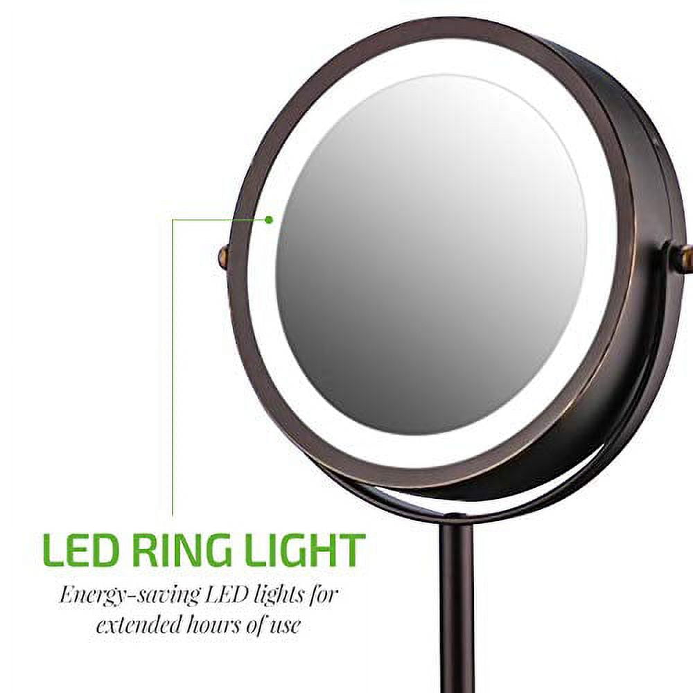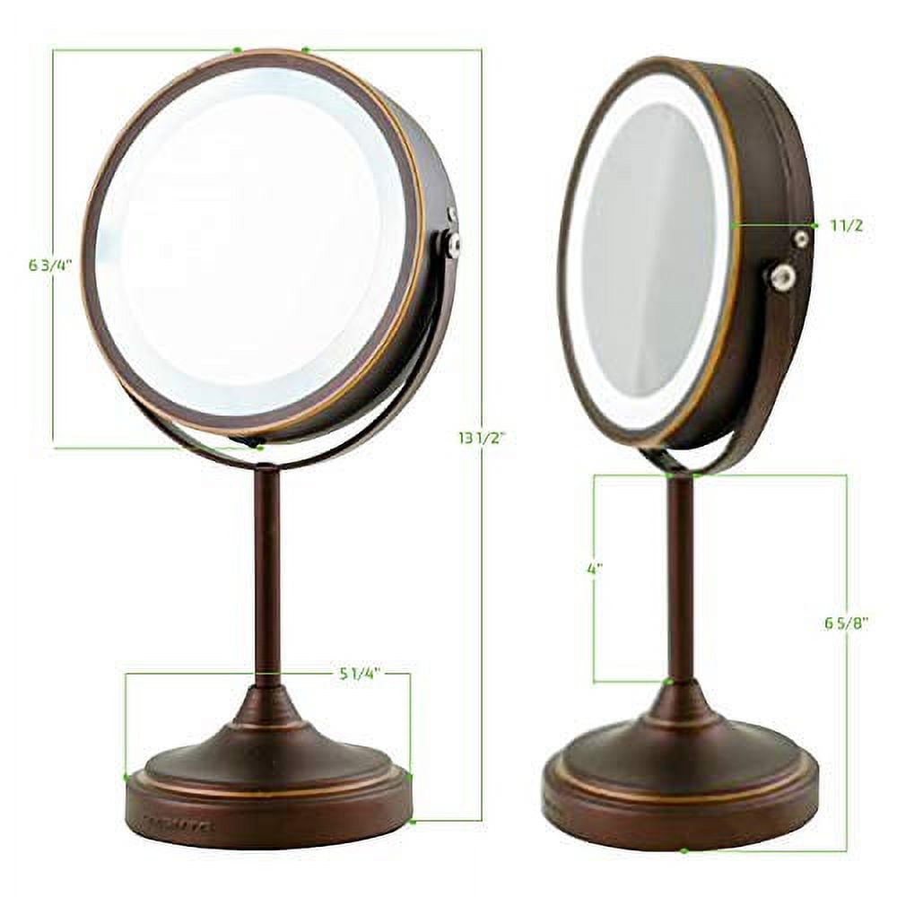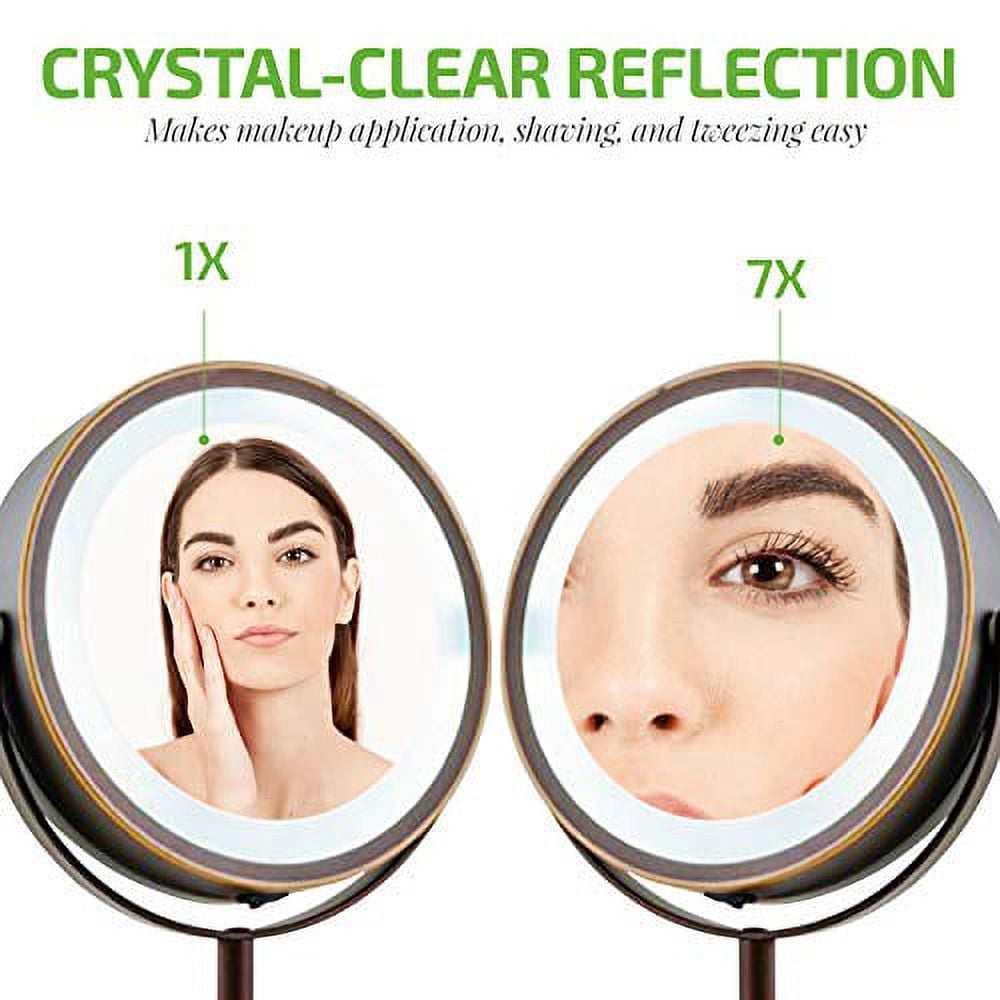 COMPREHENSIVE This dual-sided 360 swivel design luxury mirror features 1x7x magnification. 1x for a great view of your entire face all at once, and 7x for precision, because every detail counts (7 diameter). RECHARGEABLE & CORDLESS This mirror is powered by a built-in 1000mAh rechargeable battery which can be recharged by a USB Cable (included). This is perfect for those who dont want to spend extra cash on batteries every time they need to be replaced. COOL-TONE LED LIGHTS Last longer and use less electricity than all other types of lighting, helping you save money. You also will never need to replace the light bulb, it will last for the lifetime of the mirror. SLEEK, MODERN, STYLISH Creates a luxurious focal point while brightening and opening up small spaces. Its also lightweight, and conveniently portable, so no matter where you take it, youll have a clean & cord-free vanity space. DISTORTION FREE Look about 4 in. away from the 7x magnification mirror for a distortion-free view. This works best for putting cosmetics on and grooming eyebrows.