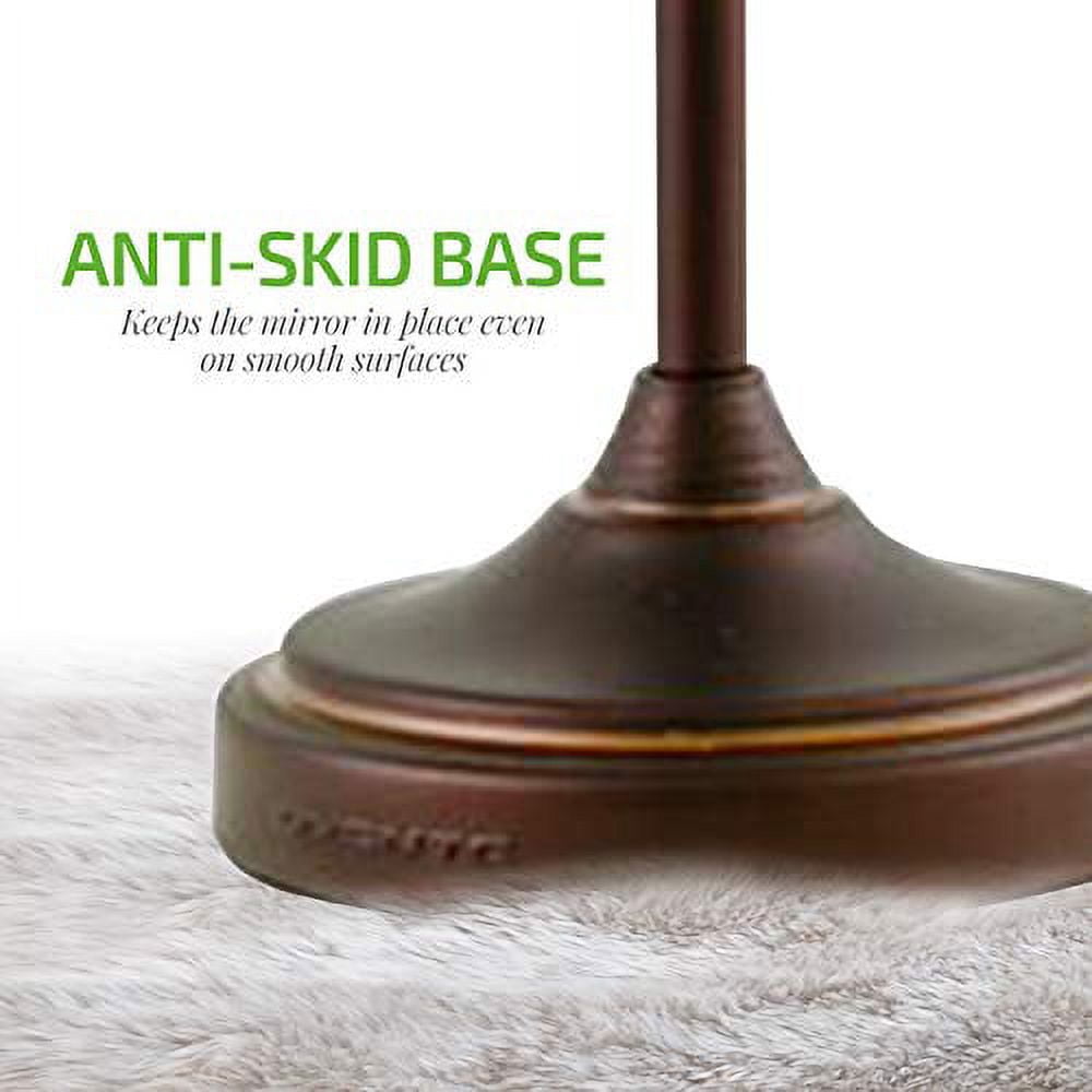 Enhance Your Homes Glamour Factor for Less! Ovente mirrors are built with a diffused ring light that eliminates shadow while in use as well as unique 360 internal wiring that allows safe rotation to any angle. It allows you to view yourself most accurately through its 7 viewing space, precise 1x7x magnification, and its LED lighting is the closest you can get to natural lighting. The mirror is also distortion-free, meaning it does not change the shape of an image. However, as the magnified lens is concave, you must be about 4 inches close to the mirror to get the most accurate results. With your Ovente cosmetic mirror, you can be confident in how you look, anywhere you go, at any time of the day. At Ovente, we believe its important to reduce your carbon footprint, so we use LED lights in many of our products. LED lighting is not only beneficial because of its natural lighting, its also a popular option because it saves you money from energy bills while also reducing waste. They contain no toxins or mercury, and you no longer need to worry about replacing light bulbs, since LED lights last many years and thousands of hours even when used all day long! This mirror is equipped with Cool-Tone LED Lights for a clearer and brighter visual color while enabling you view every pore, wrinkle, blemish, and hair as clearly as possible.This mirror is powered by 4 AAA batteries (not included). It flatters and enhances any room, creating a feeling of light and space. For Feng Shui enthusiasts, it aids in the flow of energy and brings a sense of calm all throughout the room. OVENTE MCT Series Cosmetic Mirror is available in:3 Deluxe Finishes: Polished Chrome, Nickel Brushed, and Antique Bronze