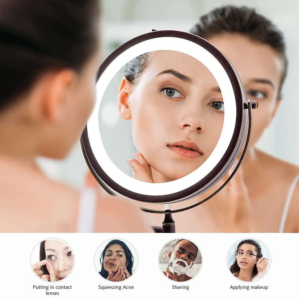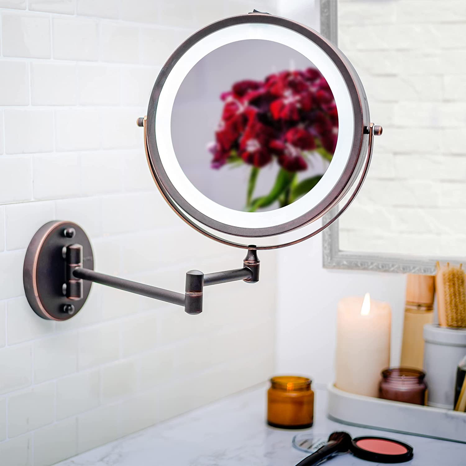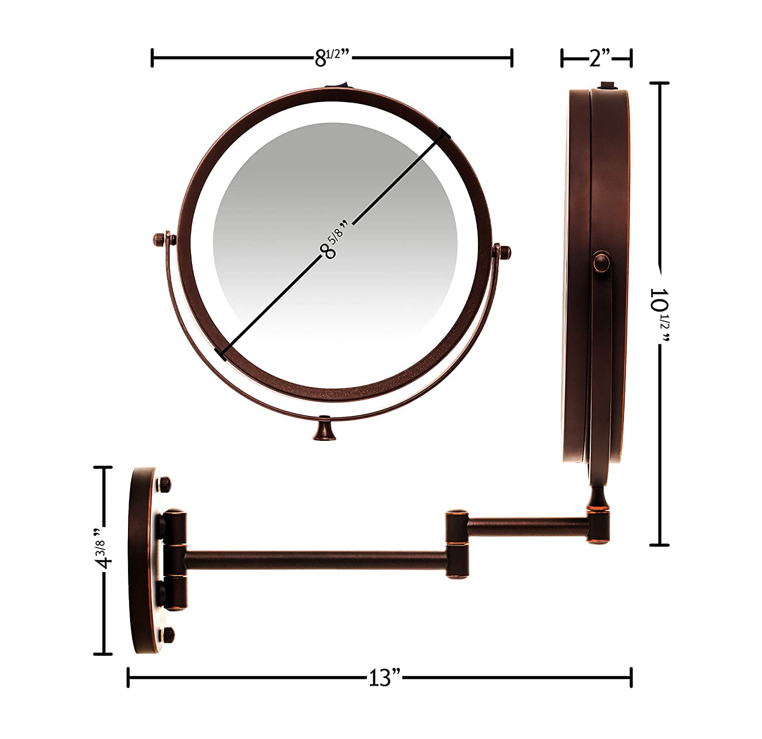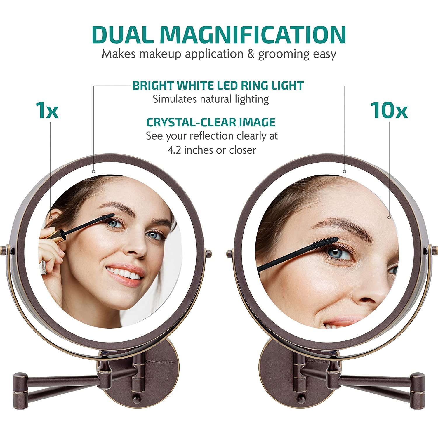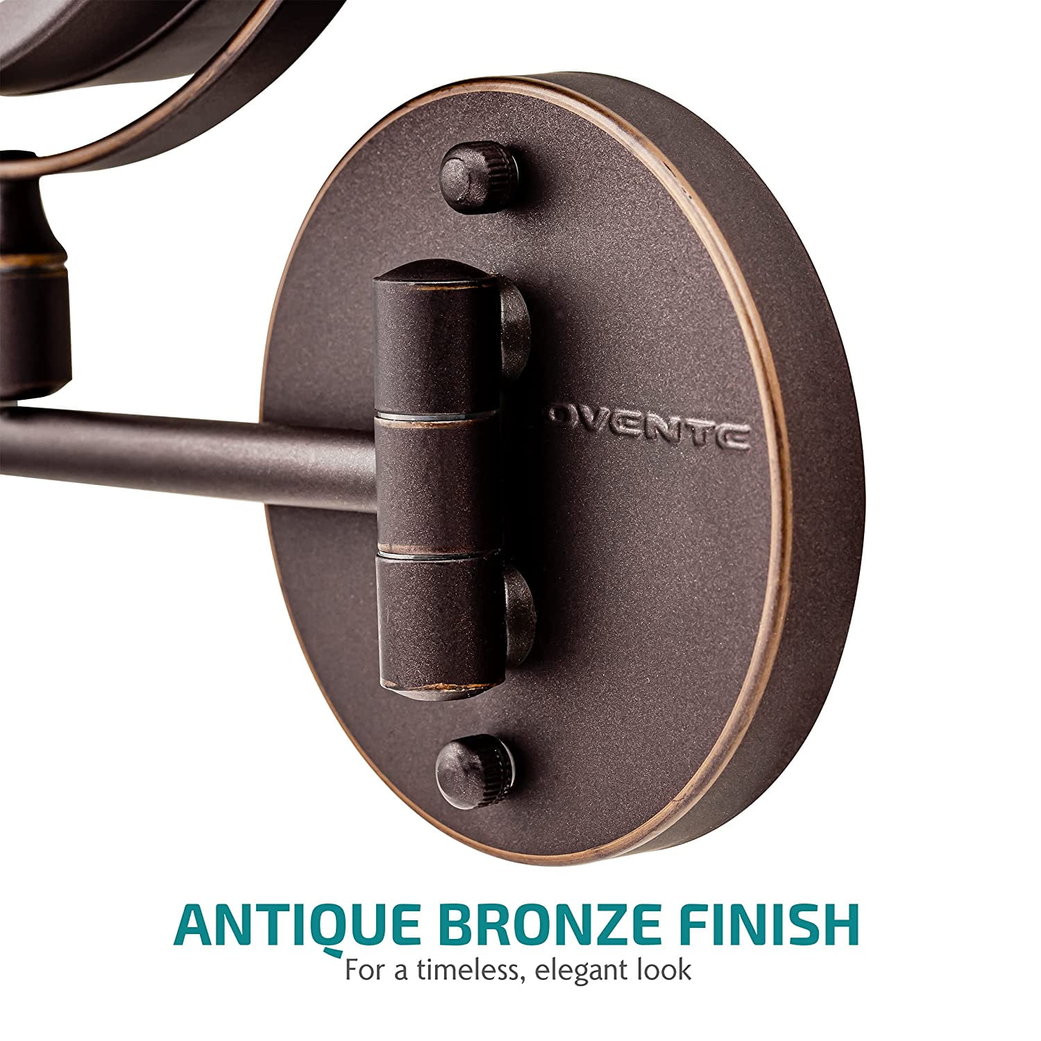 OVENTE 8.6″ Wall Mount Makeup Mirror – Double LED, 1X & 10X Magnifier, Antique Bronze MFW85ABZ1X10X