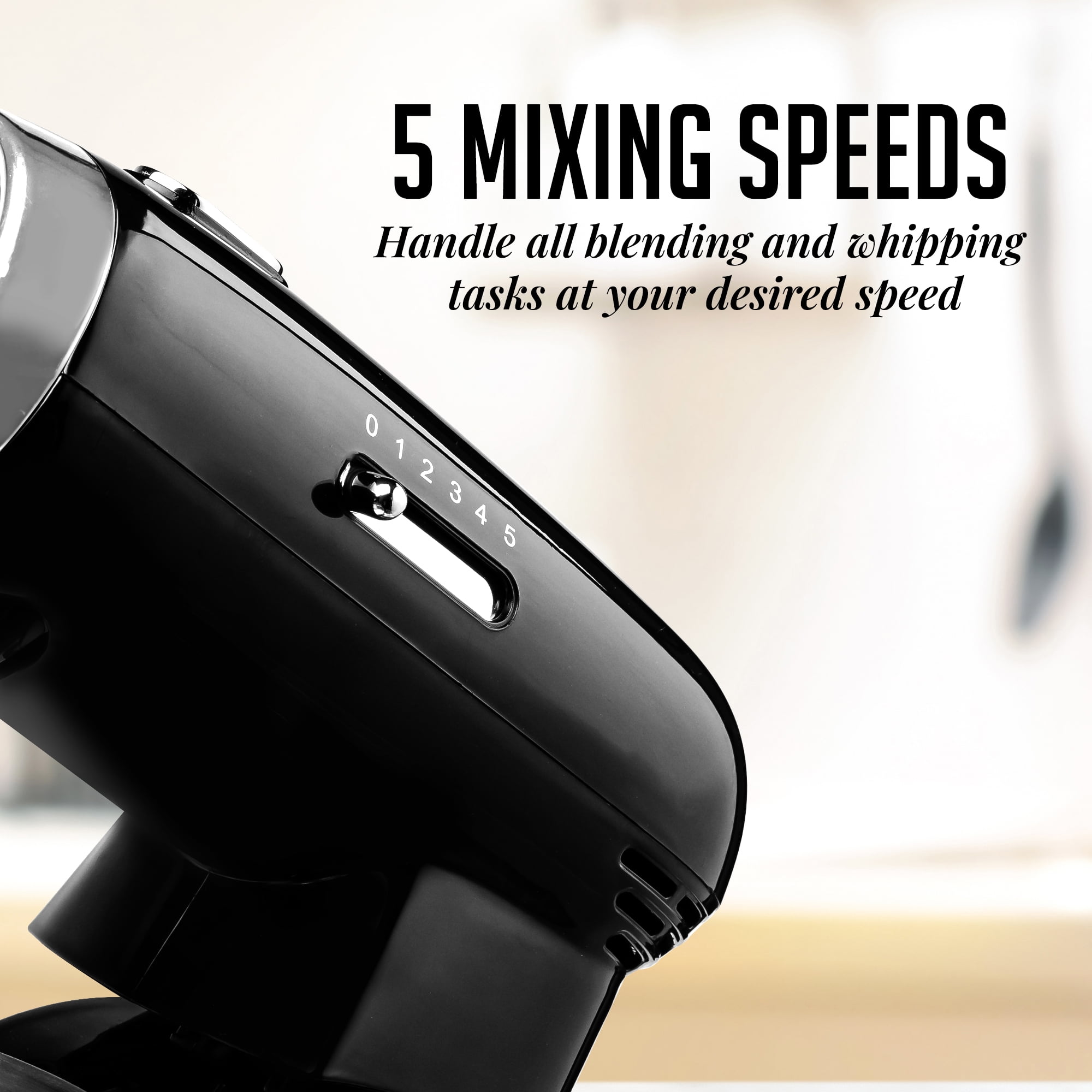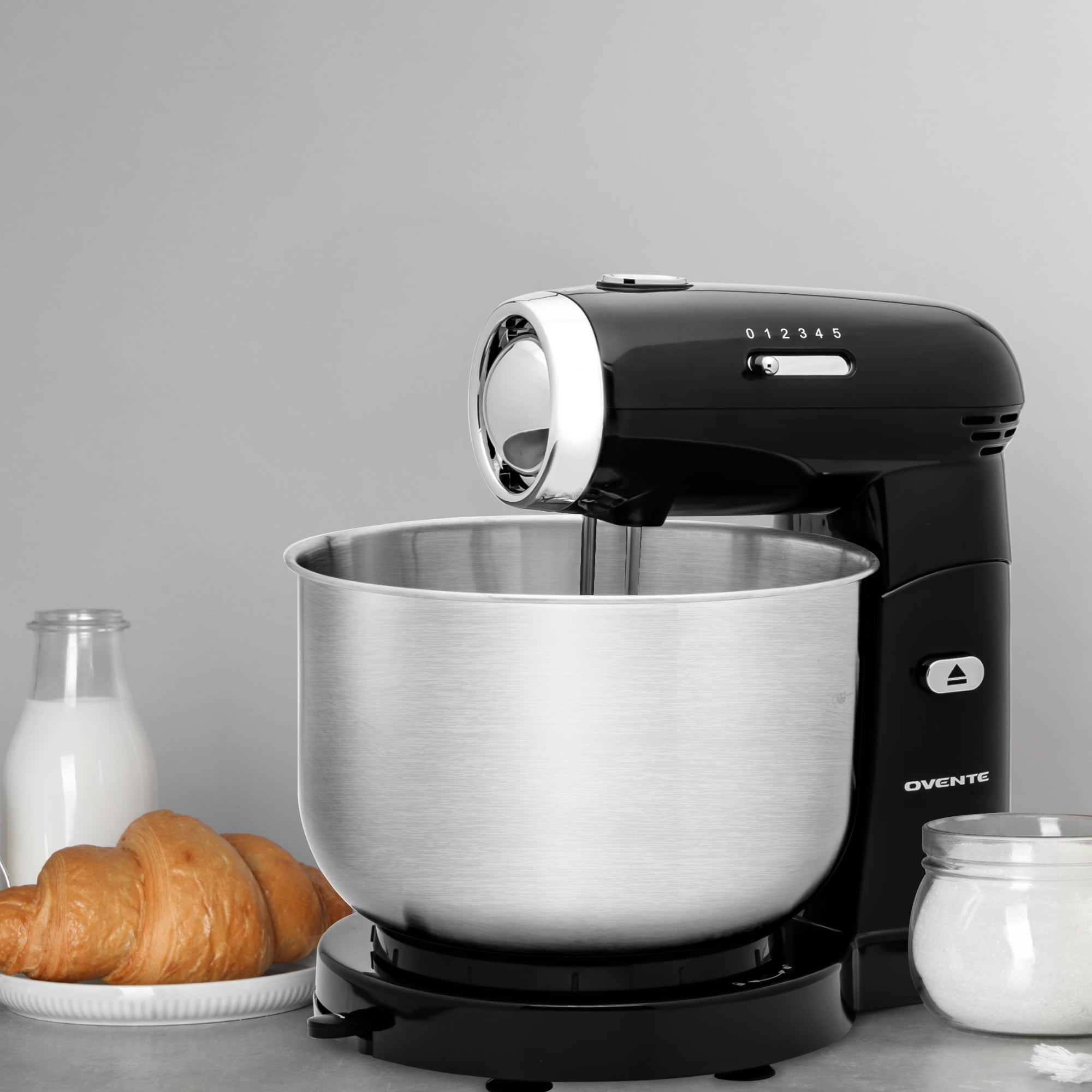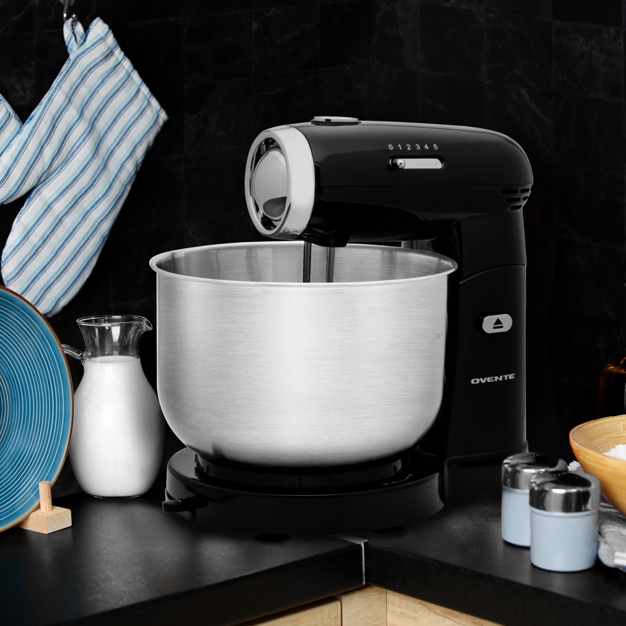 OVENTE Electric Kitchen Stand Mixer with 3.5-Quart Removable Stainless Steel Mixing Bowl, 5 Speed Control, 250-Watt Power, 2 Blender Attachment Egg Beater Whisk & Dough Hook Black SM680B