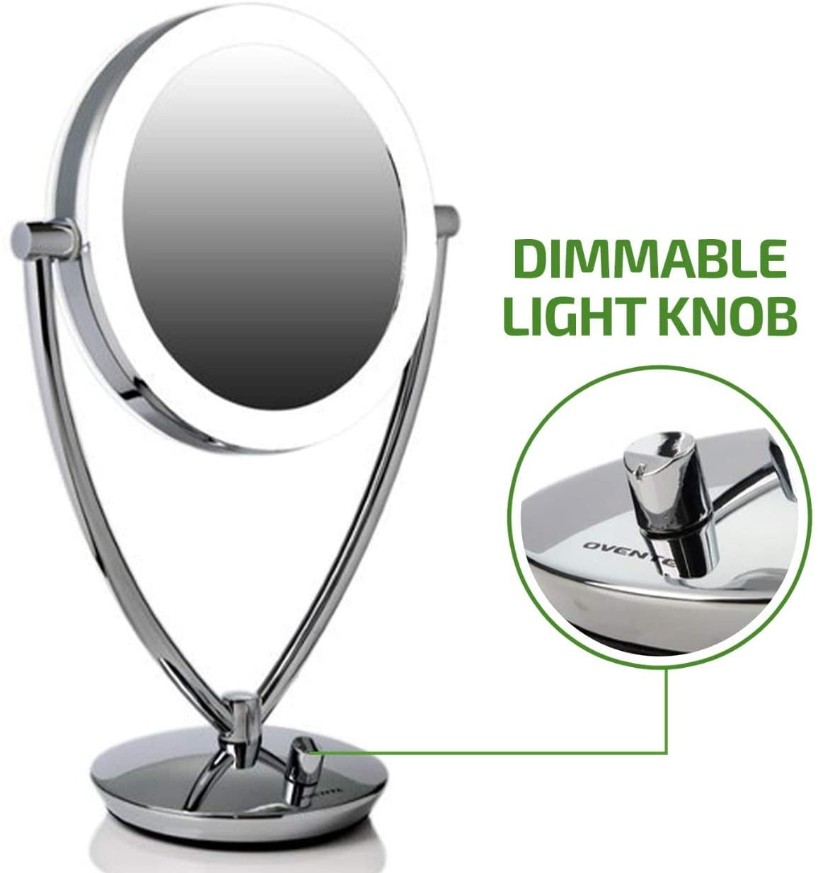 OVENTE LED Lighted Makeup Mirror 7.5 inch Table Top 1X 5X Magnifier Dimmable, Polished Chrome MLT75CH1X5X