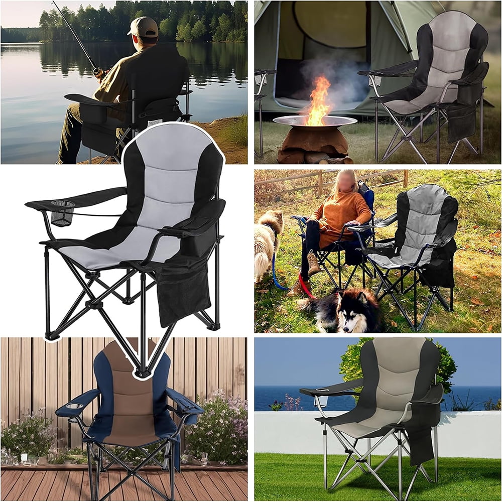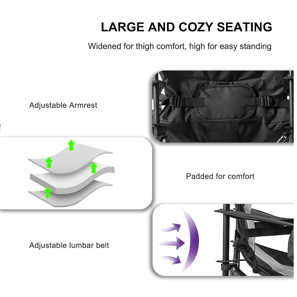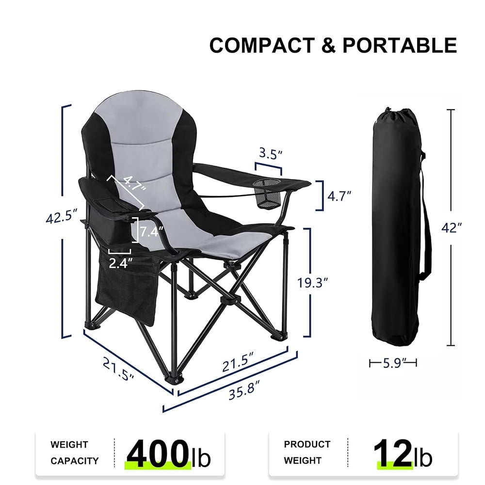 Oversized Camping Outdoor Heavy Duty Chair Support 400 LBS Carry Bag Included, Heavy People Padded Folding Camp Chairs with Lumbar Support, Cooler Bag, Mesh Cup Holder, Pocket for Lawn,Sport