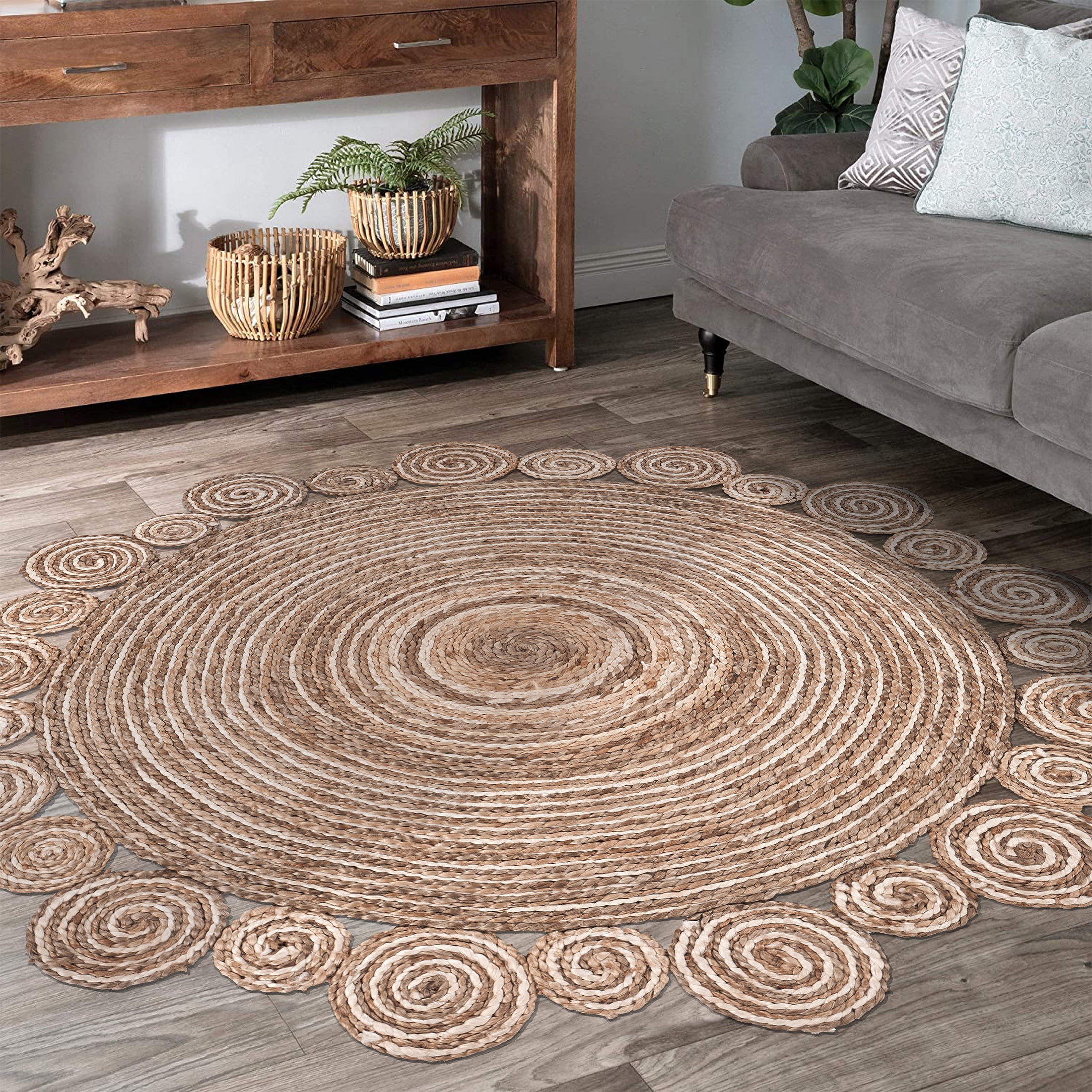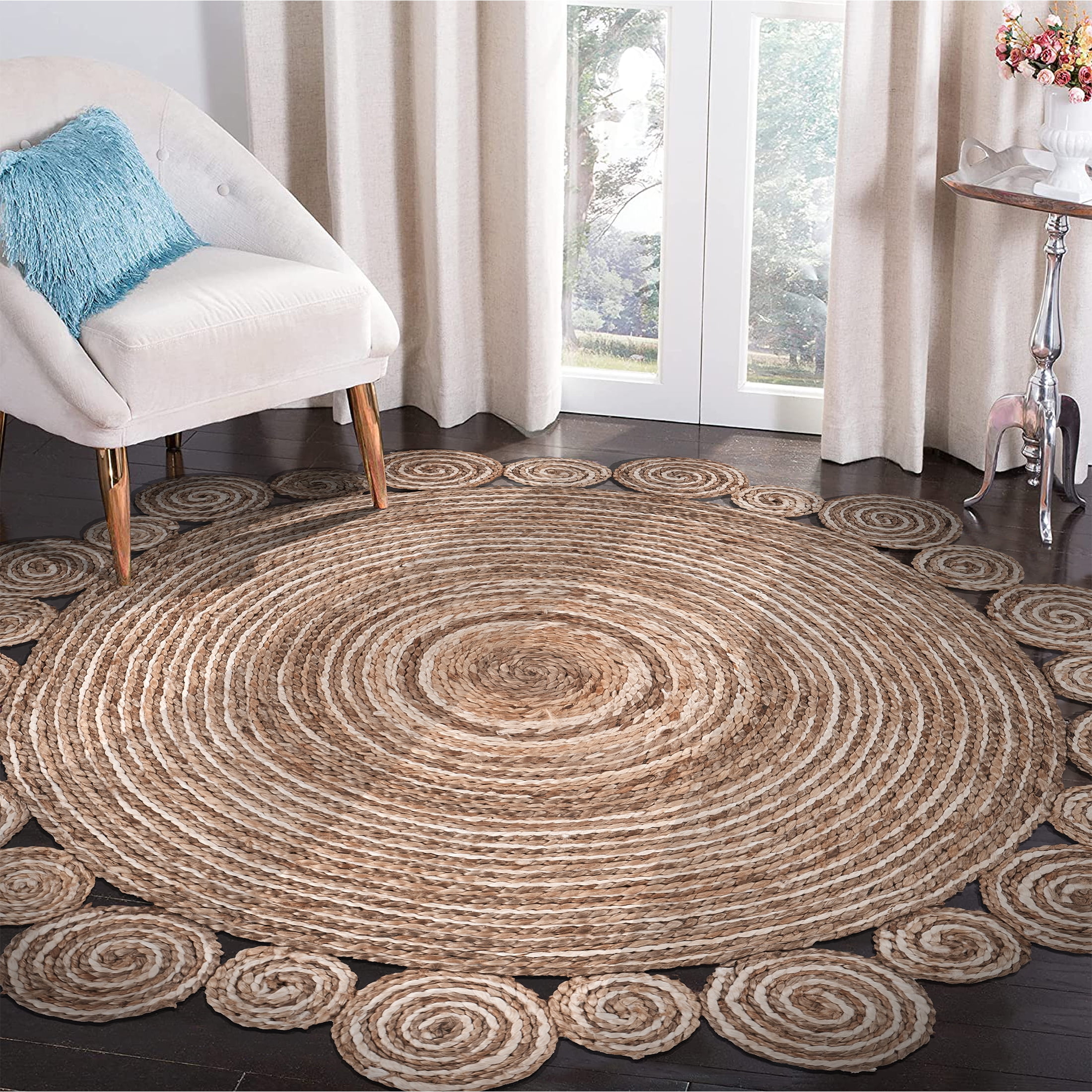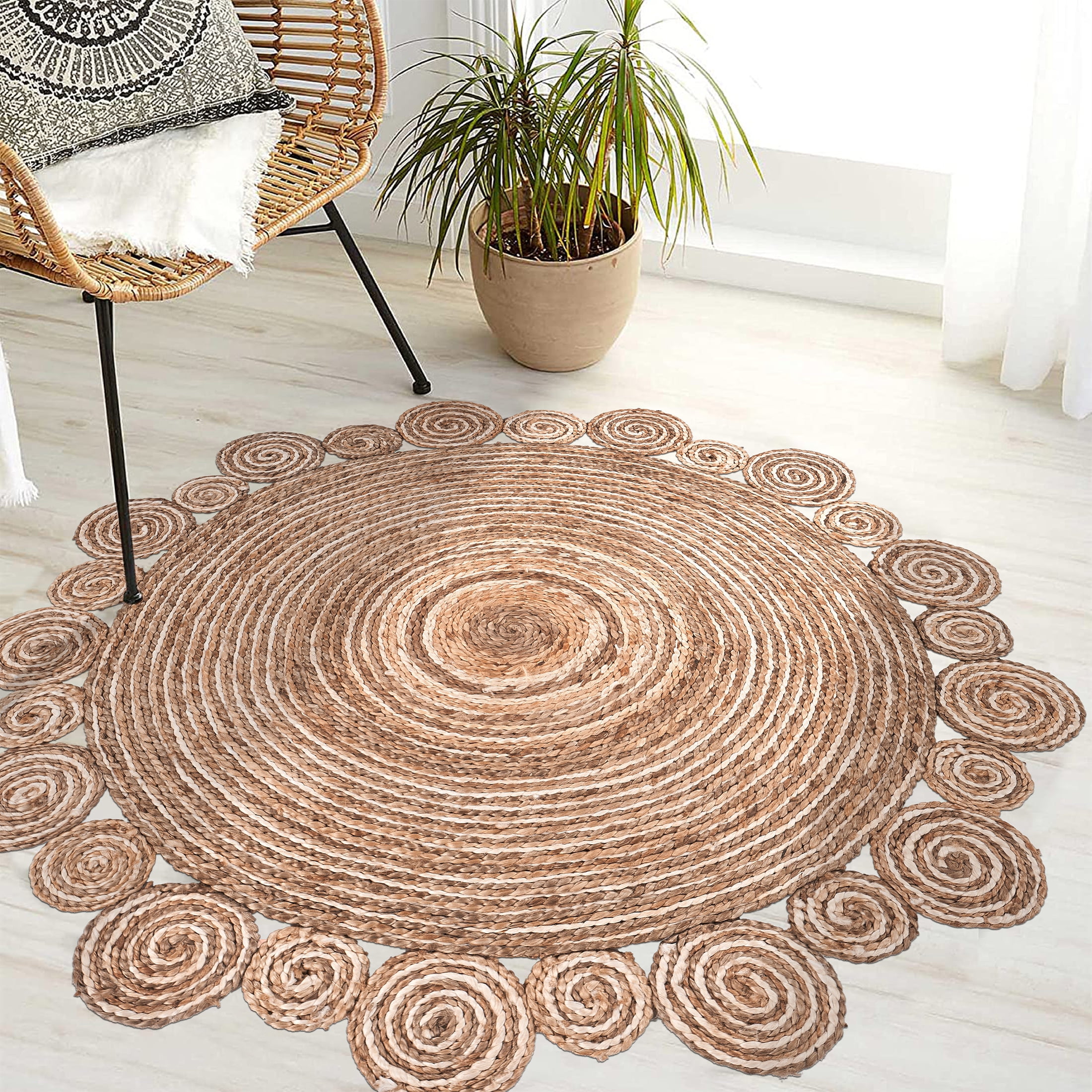 Handmade by expert artisans with keen attention to detail Complements a variety of decor including bohemian, farmhouse, tropical, and transitional Available sizes : 4′ Round , 6′ Round, 8 Round Reversible design with no backing, ensuring extended durability and easy upkeep Rug pad recommended to avoid shifting and maintain shape Spot Clean: Mix a couple cups of cool water with a teaspoon of dish soap or spray with carpet cleanser. Next, dip a section of a clean, white fabric towel into the soapy mixture and wring out as much water as possible. Blot the stain with the white fabric towel and repeat as necessary until the spot is removed. PLEASE NOTE: Digital images and colors may vary due to differences in computer monitors and mobile phones. Measurements are approximate and patterns may vary slightly according to shape and size selected.