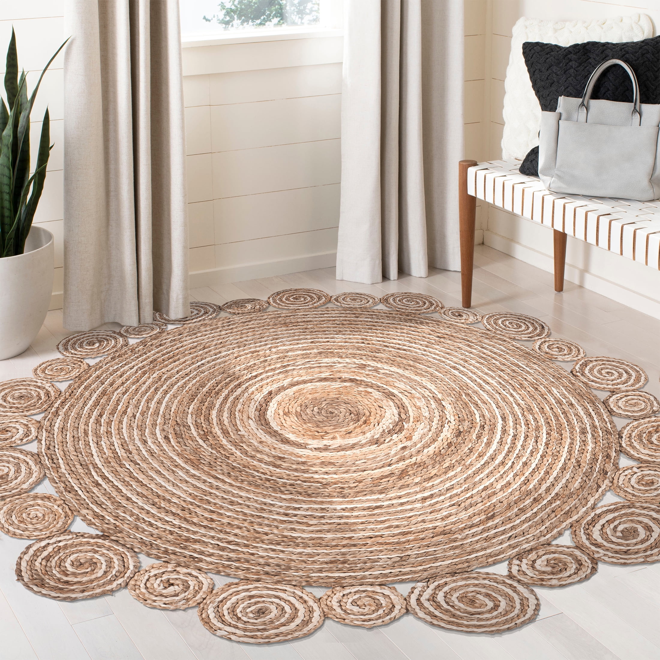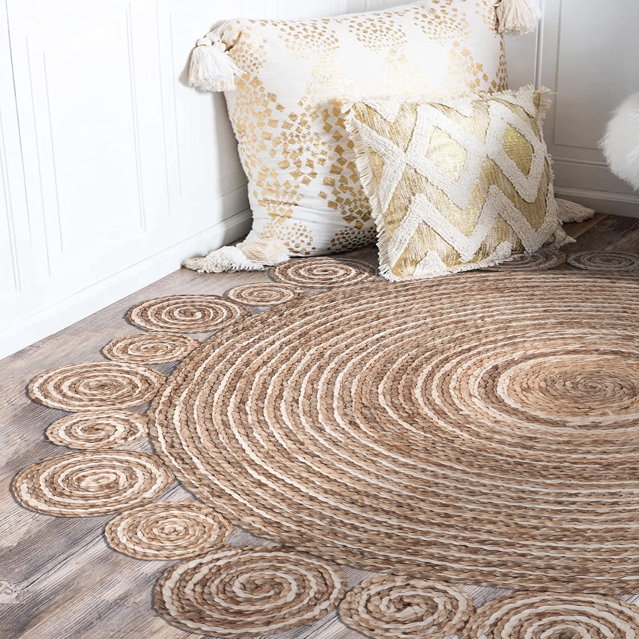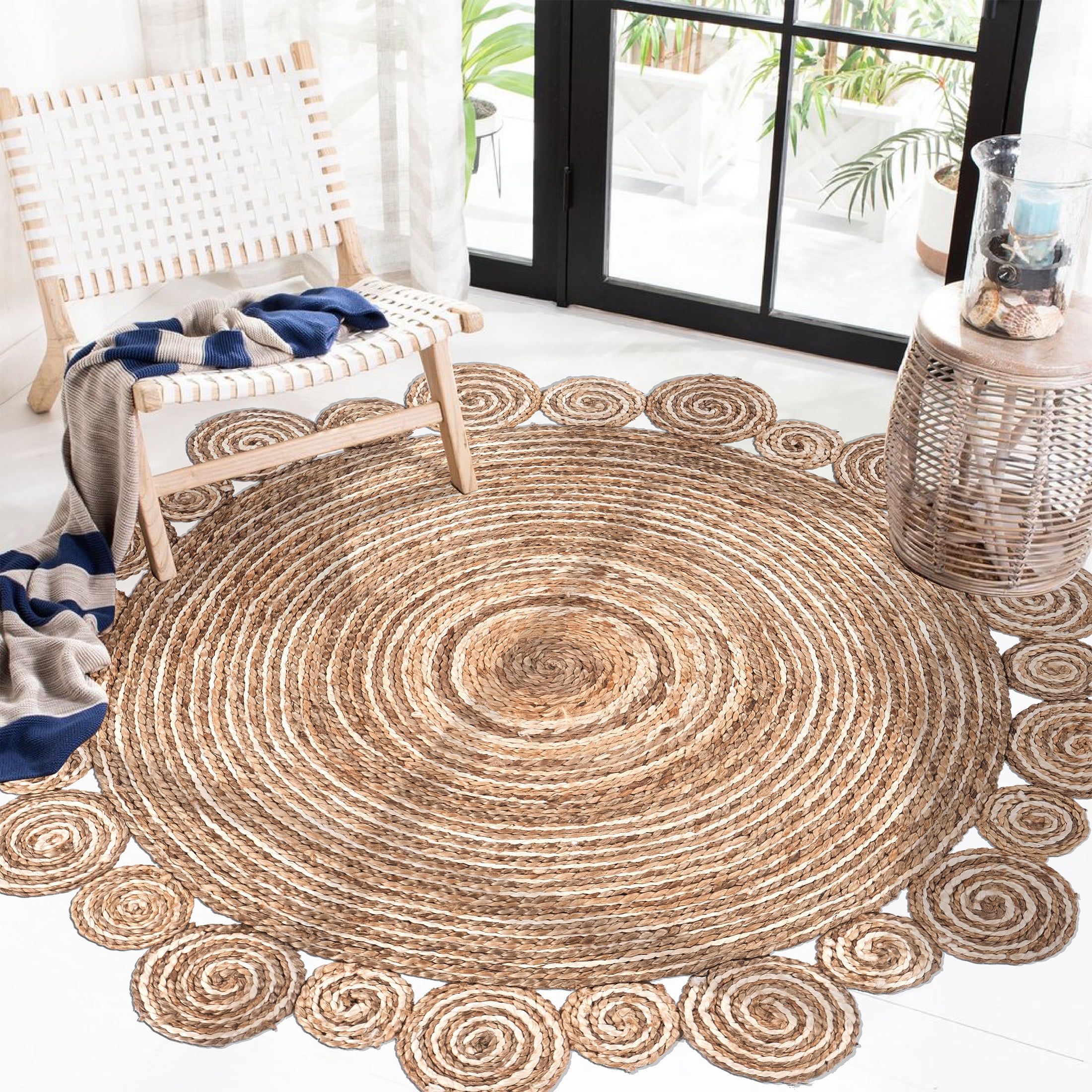 Handmade by expert artisans with keen attention to detail Complements a variety of decor including bohemian, farmhouse, tropical, and transitional Available sizes : 4′ Round , 6′ Round, 8 Round Reversible design with no backing, ensuring extended durability and easy upkeep Rug pad recommended to avoid shifting and maintain shape Spot Clean: Mix a couple cups of cool water with a teaspoon of dish soap or spray with carpet cleanser. Next, dip a section of a clean, white fabric towel into the soapy mixture and wring out as much water as possible. Blot the stain with the white fabric towel and repeat as necessary until the spot is removed. PLEASE NOTE: Digital images and colors may vary due to differences in computer monitors and mobile phones. Measurements are approximate and patterns may vary slightly according to shape and size selected.