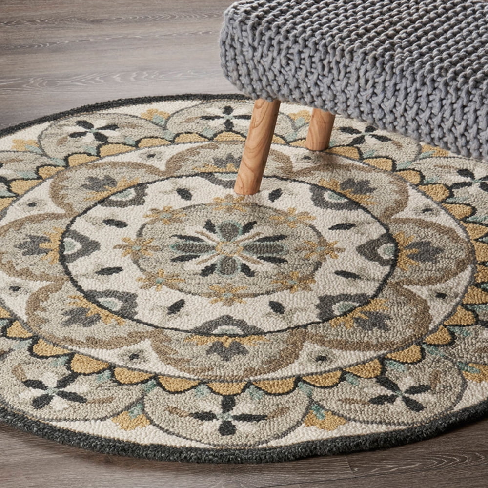 Ox Bay Elle 4′ Round Ivory/Gray Floral Medallion Indoor Area Rug