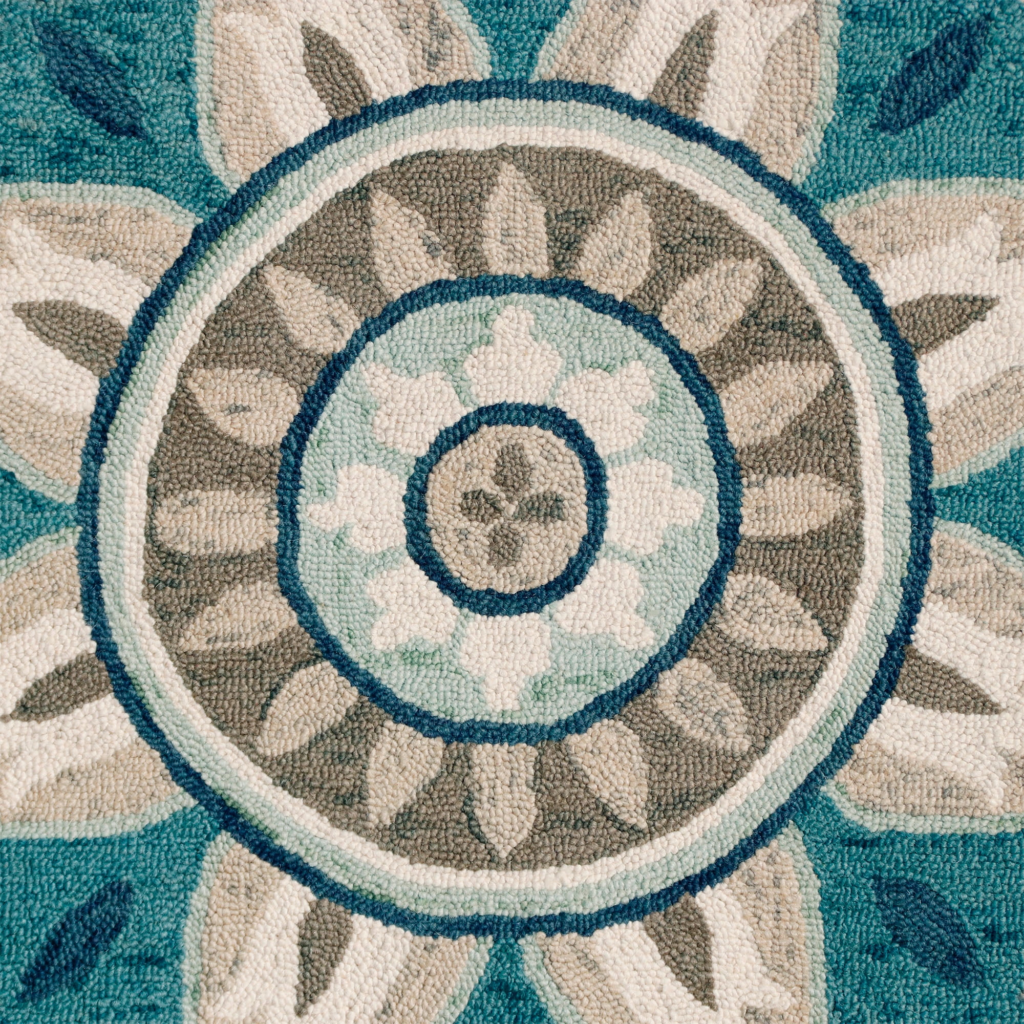 Handmade by expert artisans with keen attention to detail 100% Wool on Cotton Backing Available Sizes: 4′ x 4′ Round, 6′ x 6′ Round To expedite the flattening process, roll the adult, indoor rug in the opposite direction and massage visible creases with your hands. Complements a variety of décor including contemporary, farmhouse, and cottage Available Colors: Aqua Blue/Gray, Red/Green Cotton backing prevents sliding and shifting; rug pad not recommended PLEASE NOTE: Digital images and colors may vary due to differences in computer monitors and mobile phones. Measurements are approximate and patterns may vary slightly according to shape and size selected.