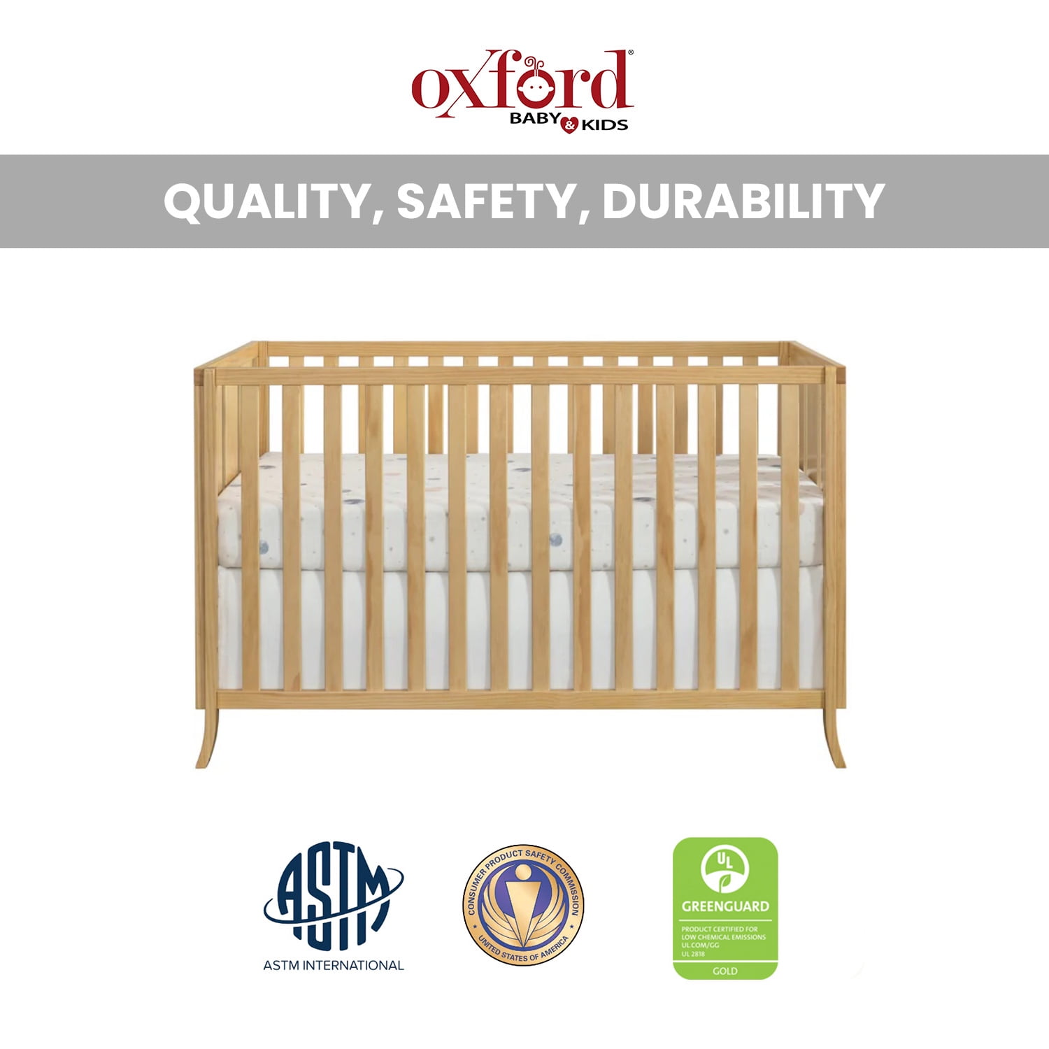 SAFETY FIRST: Oxford Baby Nursery Furniture is made to the highest safety standards that meet those set by the Consumer Product Safety Commission (CPSC) and American Society for Testing and Materials (ASTM); Our furniture endures rigorous testing by third-party labs to guarantee compliance with U.S. and Canada market so you can rest assure that your child is sleeping in a safe sleep environment EXQUISITE STYLING: With its sleek design, the Arlie 4 in 1 Island Crib adds a charming, modern aesthetic to your nursery. The crib features flat slats in the front, slanted legs, and extra wide slats on the sides. PREMIUM QUALITY & CRAFTSMANSHIP: Made from solid woods and wood veneers and backed by a 1 Year Limited Manufacturer’s Warranty, this crib is expertly crafted from solid and sustainably sourced wood providing quality construction creating a safer, sturdier sleep environment for your baby THOUGHTFULLY DESIGNED: Designed to fit a standard-sized crib mattress, this Oxford Baby 4-in-1 Crib offers a convenient convertible design that will grow as your child with 3 levels of mattress height adjustment and by converting to a toddler bed, day bed and full size bed.