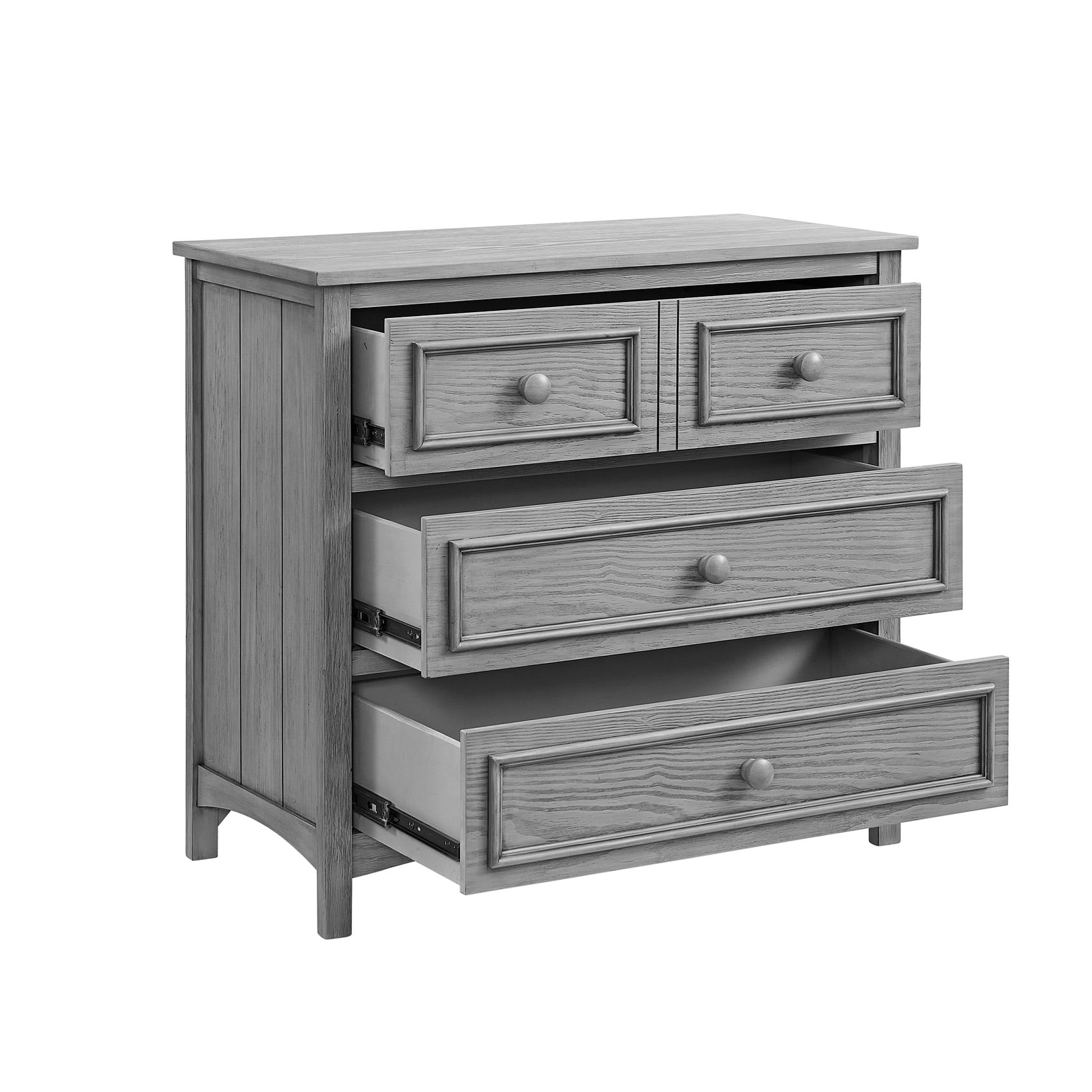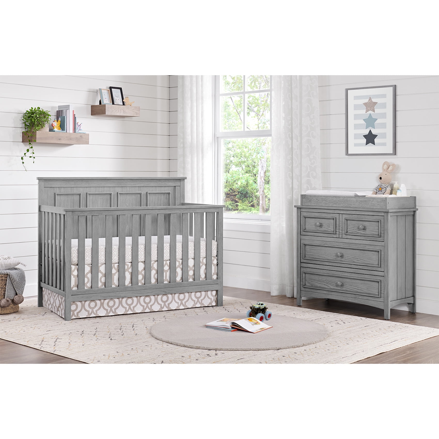 SAFETY FIRST: Oxford Baby Nursery Furniture is made to the highest safety standards that meet those set by the Consumer Product Safety Commission (CPSC) and American Society for Testing and Materials (ASTM); Our furniture endures rigorous testing by third-party labs to guarantee compliance with U.S. and Canada markets so you can rest assure that your child is sleeping in a safe sleep environment. PREMIUM QUALITY & CRAFTSMANSHIP: Made from fine solid woods and veneers with multi-step wire brushed finish, the 3 dresser drawers feature sturdy and durable French Dovetail construction and stylish drawer pulls; the top drawer features velvet lining THOUGHTFULLY DESIGNED: Premium side-mount ball bearing drawer glides with safety stop mechanism GROWS WITH BABY: Convert your dresser to a changing station with the Oxford Baby Bennett Changing Topper (12363530), sold separately COMPLETE NURSERY COLLECTION: The Bennett Collection by Oxford Baby in Rustic Gray features a 4-in-1 Convertible Crib (12811530), 3-Drawer Dresser (12333530), Changing Topper (12363530), Toddler Bed Guard Rail (12395530), Full-Size Bed Conversion Kit (12388530), and Oxford Baby Crib Mattress, sold separately; The Bennett Collection is available in Rustic White and Rustic Gray finishes ASSEMBLED DIMENSIONS: Measuring 37 in. W x 18 in. D x 34 in. H (113.80 lbs.), this Oxford Baby 3-Drawer Dresser arrives fully assembled [and includes anti-tip kit, hardware and tool for assembly]