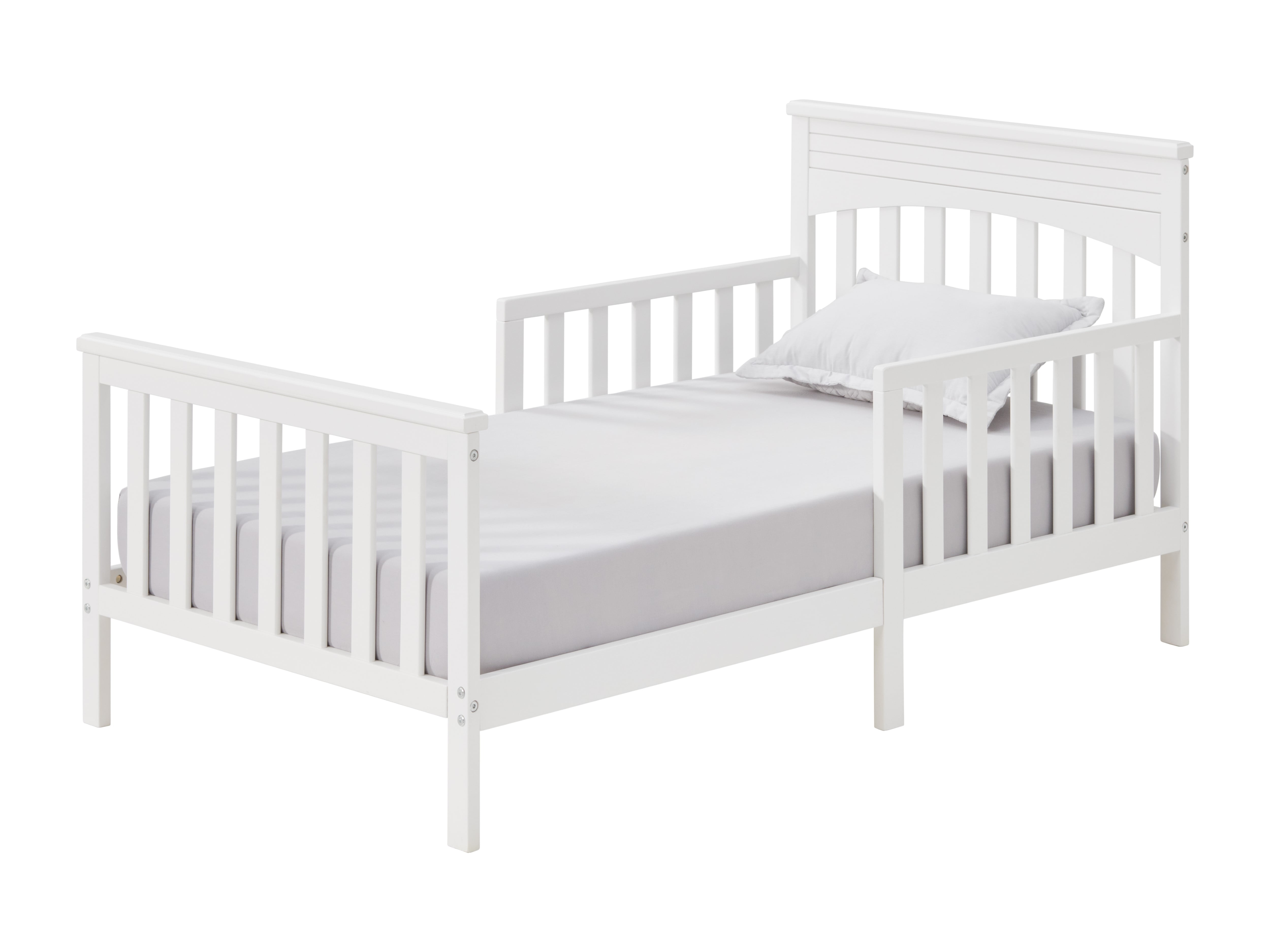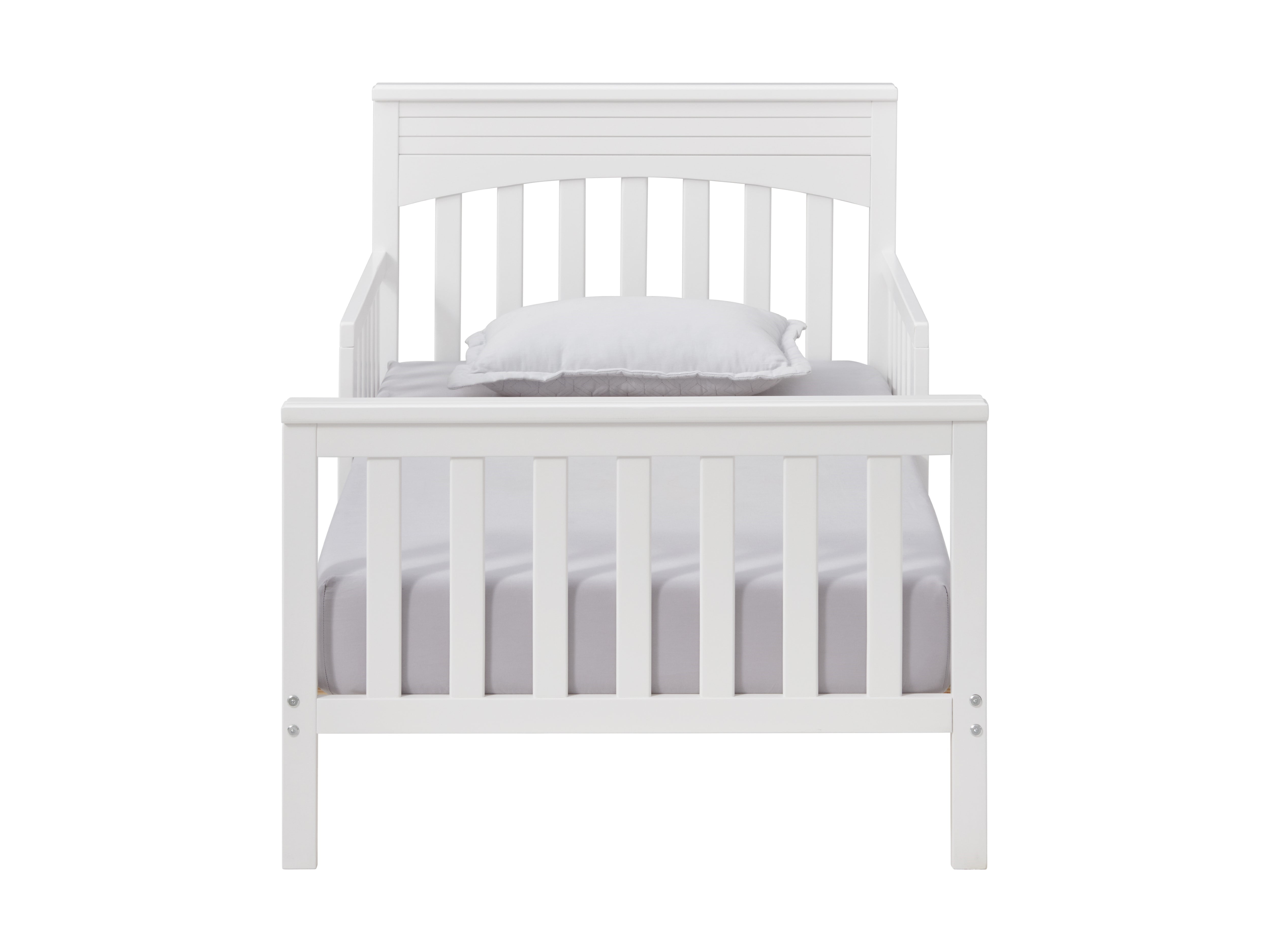 Make the transition from crib to toddler bed easy with the Oxford Baby Harper Wooden Toddler Bed Features a clean, straight-line headboard highlighted by wainscoting detail and two guardrails for safety Low to the ground design allows toddlers to get in and out of bed easily