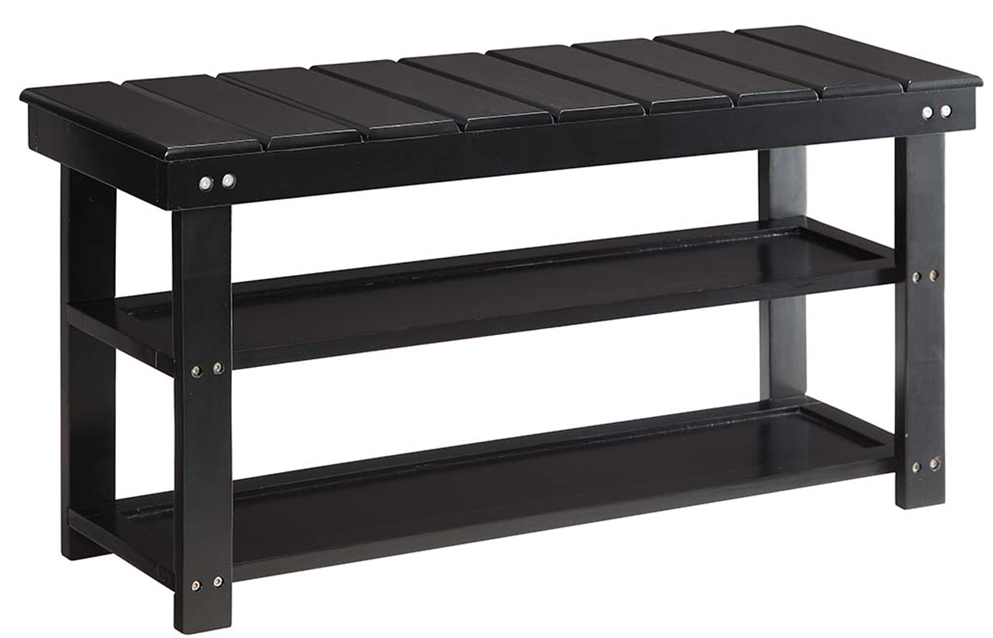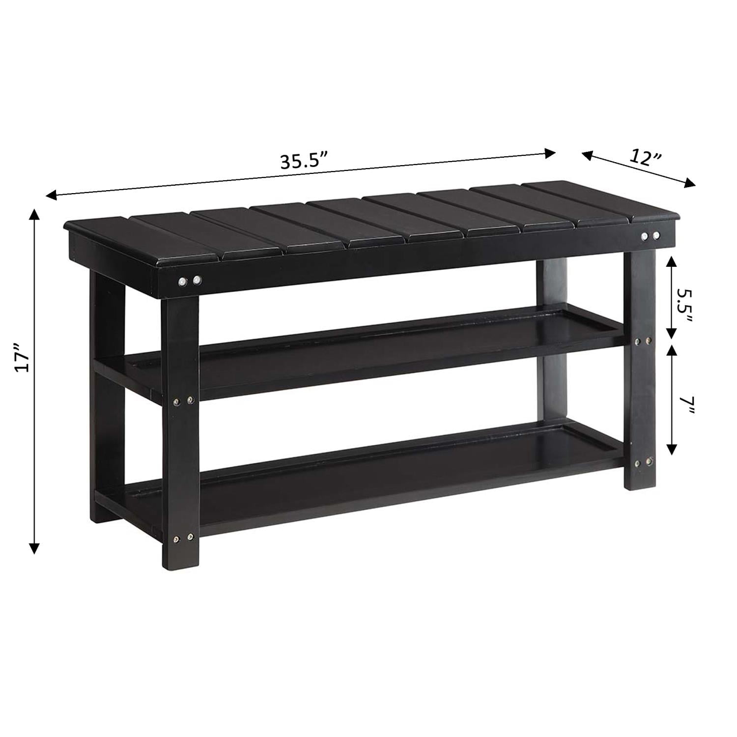 Features Bench with 2 lower shelves used to store shoes Displays a contemporary style to uplift any home decor Assemble in just 3 easy steps! Constructed from MDF/solid wood/non-lead based paint Overall Item Dimensions: 35″L x 12″W x 17″H Product Weight: 12 lbs