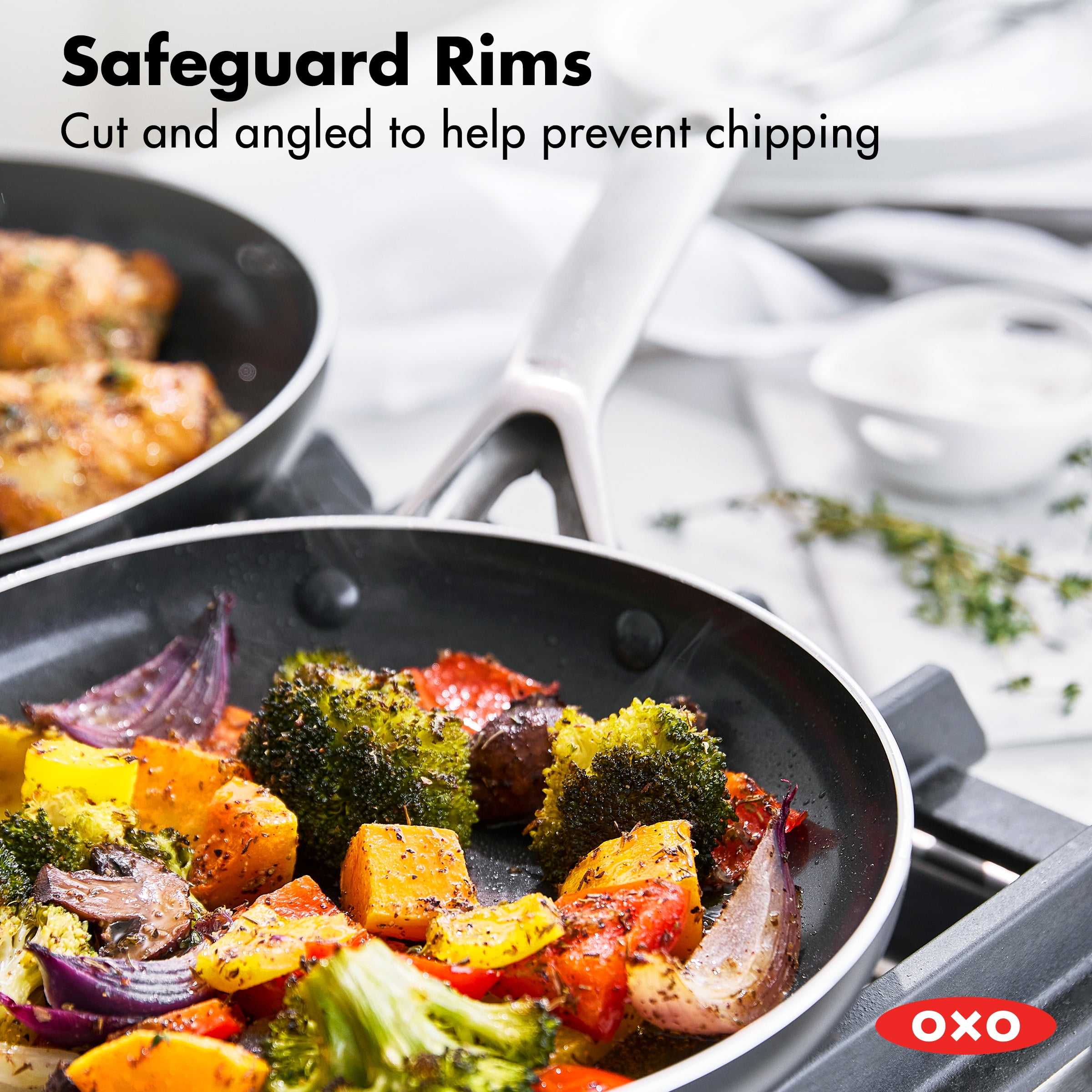 Experience the perfect pairing of convenience and performance with the OXO Ceramic Non-Stick Agility Series Frying Pan Combo. This dynamic duo is designed to elevate your cooking experience, making every meal a delight. The pans showcase a diamond-reinforced ceramic non-stick coating, ensuring your culinary creations effortlessly release with minimal oil, promoting healthier cooking habits. Cleaning up is a breeze, and rest easy knowing the ceramic non-stick coating is Toxin-free—prioritizing your safety. Crafted with precision, the aluminum bodies of these pans ensure quick and even heating, allowing you to achieve impeccable results in every dish. The induction-ready bases expand the versatility, delivering outstanding performance on all stovetops. Take your creations to new heights with the oven-safe design, reaching temperatures up to 600°F. Embrace simplicity with these pans that not only enhance your cooking prowess but also simplify your cleaning routine. Dishwasher safe, this combo is a game-changer for any kitchen. Elevate your culinary adventures with the OXO Ceramic Non-Stick Agility Series Frying Pan Combo.