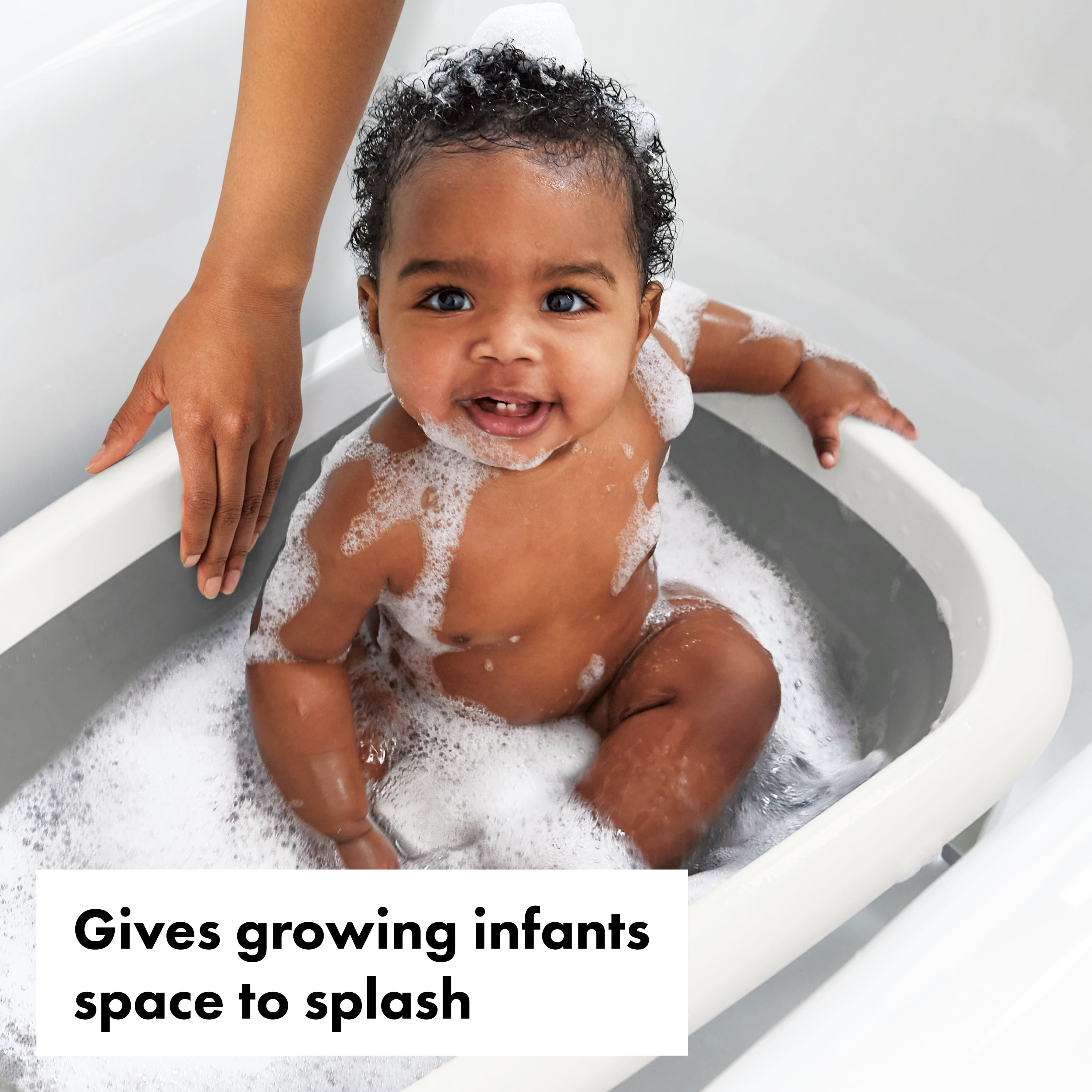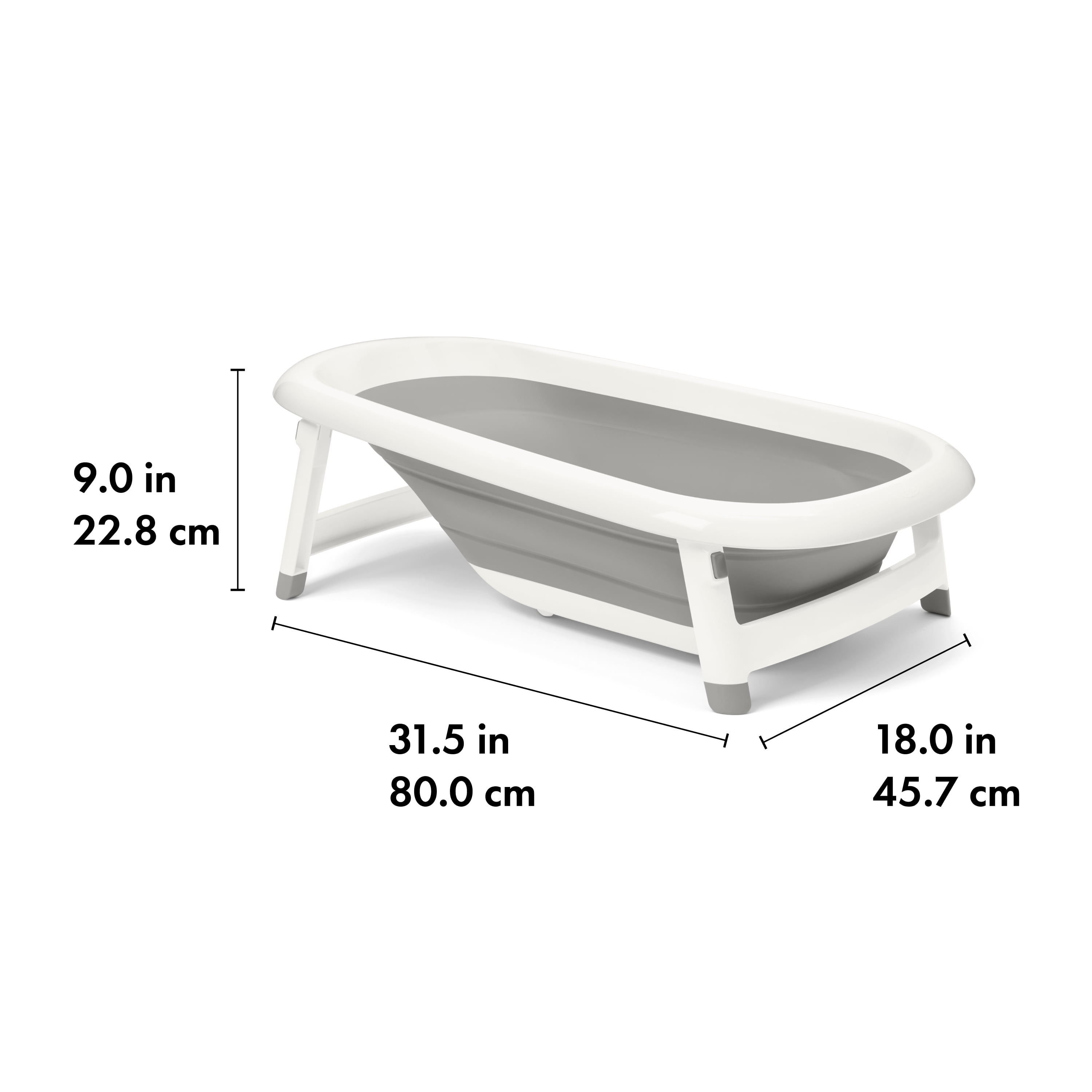 Bathe Baby from Infant to 18 Months: This bathtub is designed with narrow side to cradle newborns and infants – no need for a separate newborn insert. The wider end of the tub designed to hold babies from 9-18 months – babies who can sit up on their own Keep the Fun Contained: High side walls and a wide seat area give older babies (9-18 months) room to play and splash but keep your bathroom area neat – one less mess to clean up Keep Baby Safely in Place with the Built-in Support Post: Support post in bottom of tub provides extra security against baby slipping – no matter baby’s age or stage Save Space in Between Bathtime Sessions: This baby bathtub folds flat and the legs fold in for neat, compact storage in the bathroom, with a swiveling hook that lets you hang it from the shower rod or towel holders Easy Cleanup After Baby Is Clean: After bath time fun, tub cleanup is a breeze. This tub is designed with smooth surfaces, so you can wipe it down quickly. There’s a quick-release, two-sided drain that you can easily reach to empty out the water – even with baby in the tub Kid Tested, Parent Approved: Each OXO Tot product is tested in real homes with real parents and children (including our own!) to ensure that we provide only the best-designed products possible. We proudly use these products daily and it is our sincere hope that they exceed your expectations