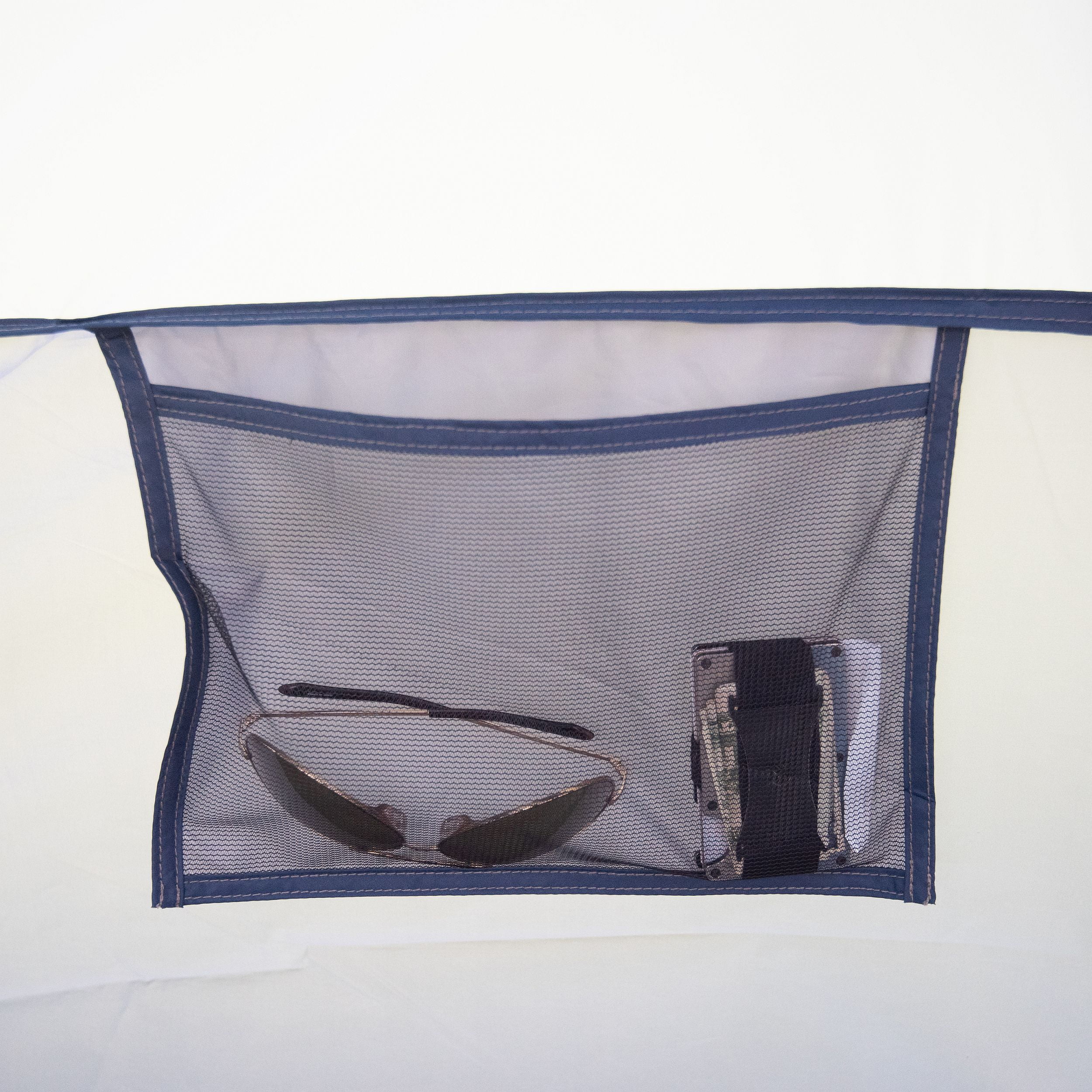Ozark Trail 10-Person Cabin Tent: Spacious interior fits 3 queen air mattresses 78 in. center height provides headroom and walk around space Two removable room dividers allow you to choose whether you want one big room or up to three separate rooms Each room has a separate door for easy access and privacy An easy-access D-style front door has a window that zips for privacy or rolls down for increased ventilation A mesh roof provides excellent star-gazing opportunities Six windows and a mesh ceiling provide cross-ventilation while keeping the bugs out Removable fly with taped seams for weather protection One movable hanging media pocket holds a tablet for group viewing Convenient interior loop for hanging a lantern Contains hanging organizers and pockets for convenient storage of small, lightweight items Zippered gear pocket for easy access to shoes and other small items left outside Pre-attached corner molds simplify set-up Fast feet replace the standard pin & ring system to make set-up quick and easy An X-frame and four guy ropes provide wind stability Carry duffle expands to make repacking and storage easy Floor Dimensions: 20 ft. x 10 ft. Center Height: 78 in. Floor Area: 177.5 sq. ft. Packed Size: 27 in. x 10.5 in. x 10.5 in. Carry Weight: 27.6 lbs. Sleeping Capacity: 10 Tent Body Fabric: Poly Taffeta 185T 1200mm Floor Fabric: Polyethylene Rainfly Fabric: Poly Taffeta 185T 1200mm Mesh Fabric: Poly Mesh 68D Carry Bag Fabric: Poly Oxford 600D Frame Material: Fiberglass and Steel Poles Number of Seasons: 3 Number of Rooms: 3 Number of Doors: 3 Number of Windows: 6 Number of E-Ports: 1 Number of Media Pockets: 1 Number of Pockets: 2 Number of Bottle Holder Pockets: 2 Number of Zippered Gear Pockets: 1 Number of Lantern Loops: 1 Number of Poles: 9 Number of Guy Ropes: 4 Number of Steel Stakes: 16 Number of Plastic Stakes: 4 Average Set-Up Time for 2 People: 18 Minutes Model No.: WMT922.4A