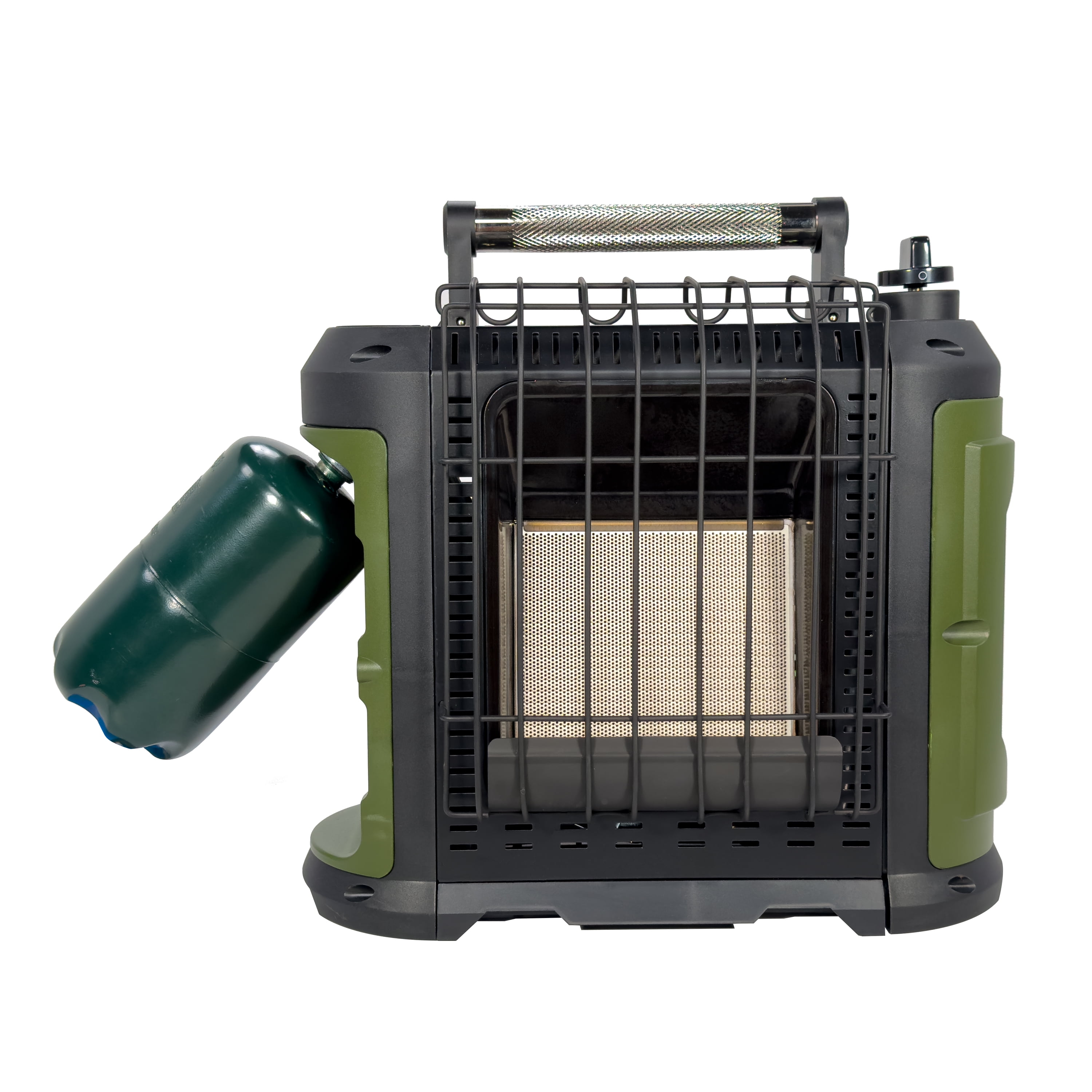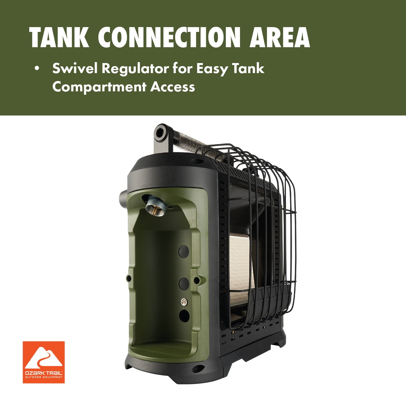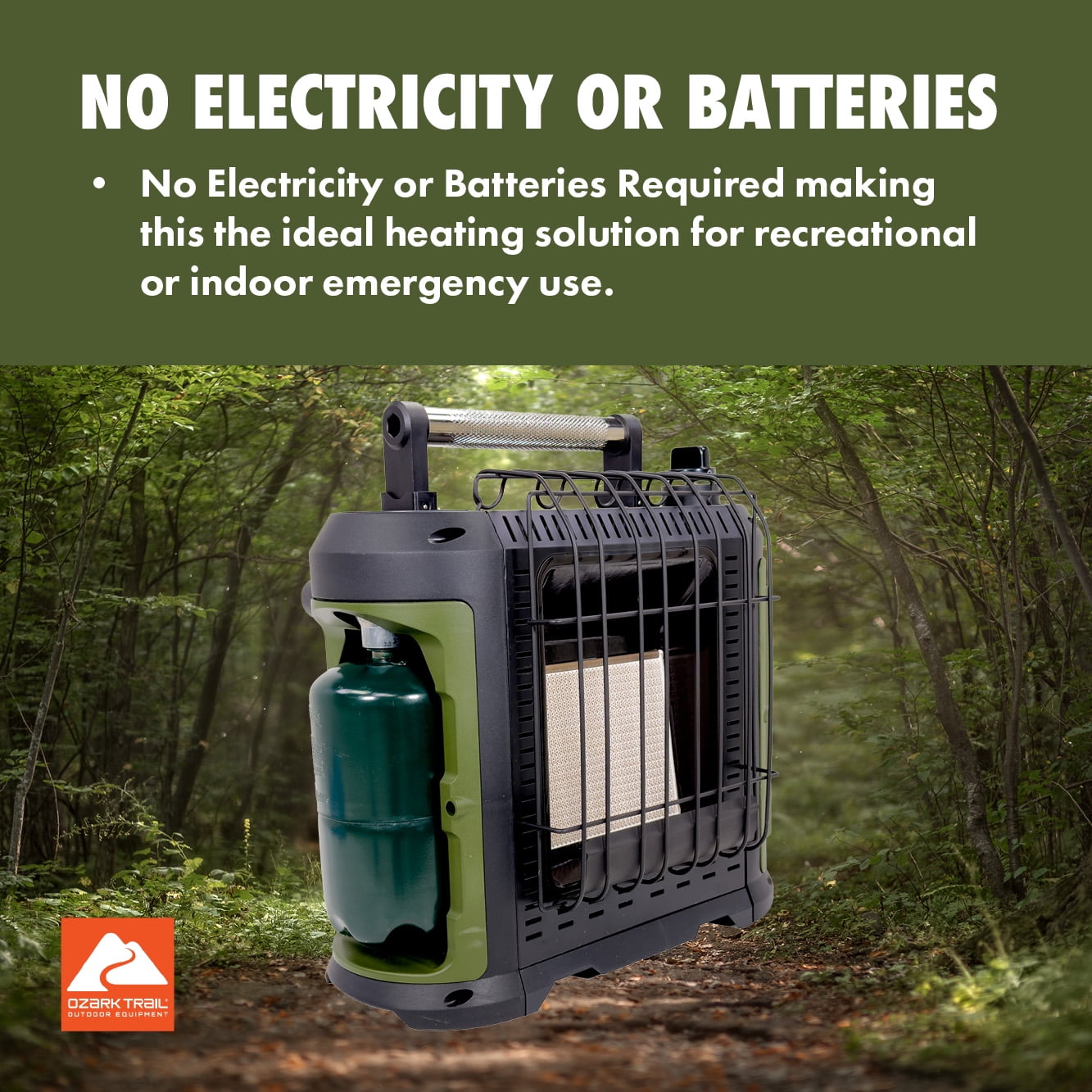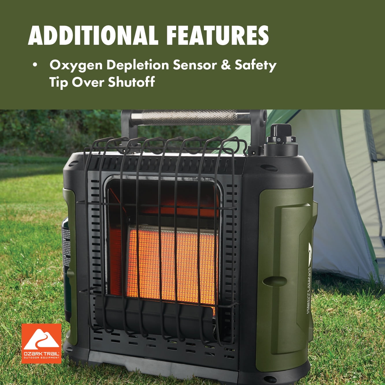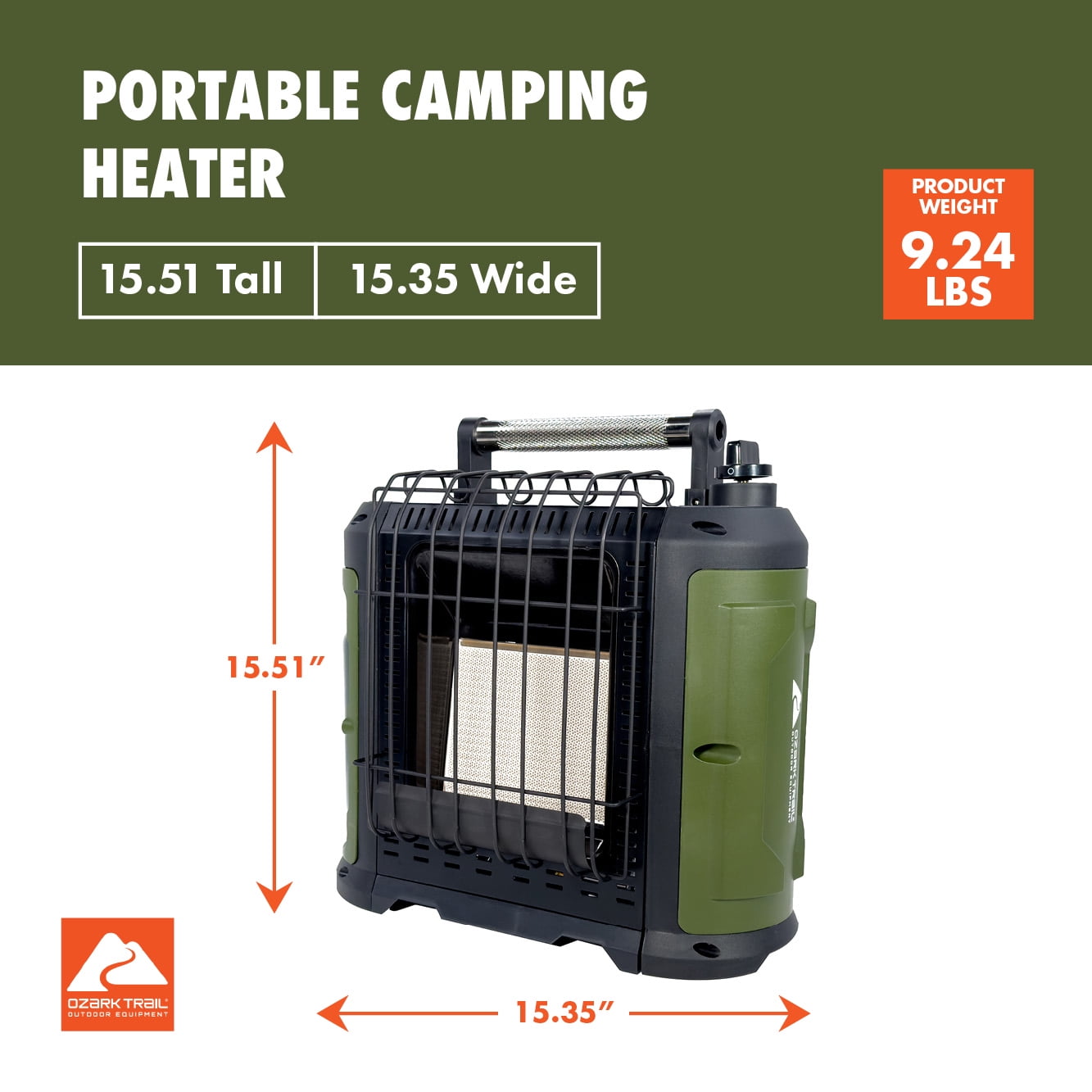 The Ozark Trail Portable Propane Heater provides great heat that you can take with you almost anywhere. With its durable styling and no need for electricity or batteries the Ozark Trail Portable Propane Heater is a great choice for heat in outdoor and emergency indoor situations. The Ozark Trail Portable Propane Heater has 2 heat settings that provide up to 10,000 BTU’s per hour on High and 5,500 BTU’s per hour on Low and also has a Tip Over Safety Switch and Oxygen Depletion Sensor for Safety. The Ozark Trail Portable Propane Heater utilizes one 1 lb propane cylinder – making it completely portable and able to be used inside in an emergency. When outdoors, you have the extra option of hooking up the Ozark Trail Portable Propane Heater to a 20 lb propane tank with the optional extension hose (Model HAKITDG) for extended runtime up to 45 Hours on High and 79 Hours on Low . The convenient carrying handle will allow you to easily move the heater to any location making it an outstanding solution for portable heating for sporting events, hunting, camping, fishing, garage/workshop, emergency indoor heating, backyard/patio heating, and many other uses.