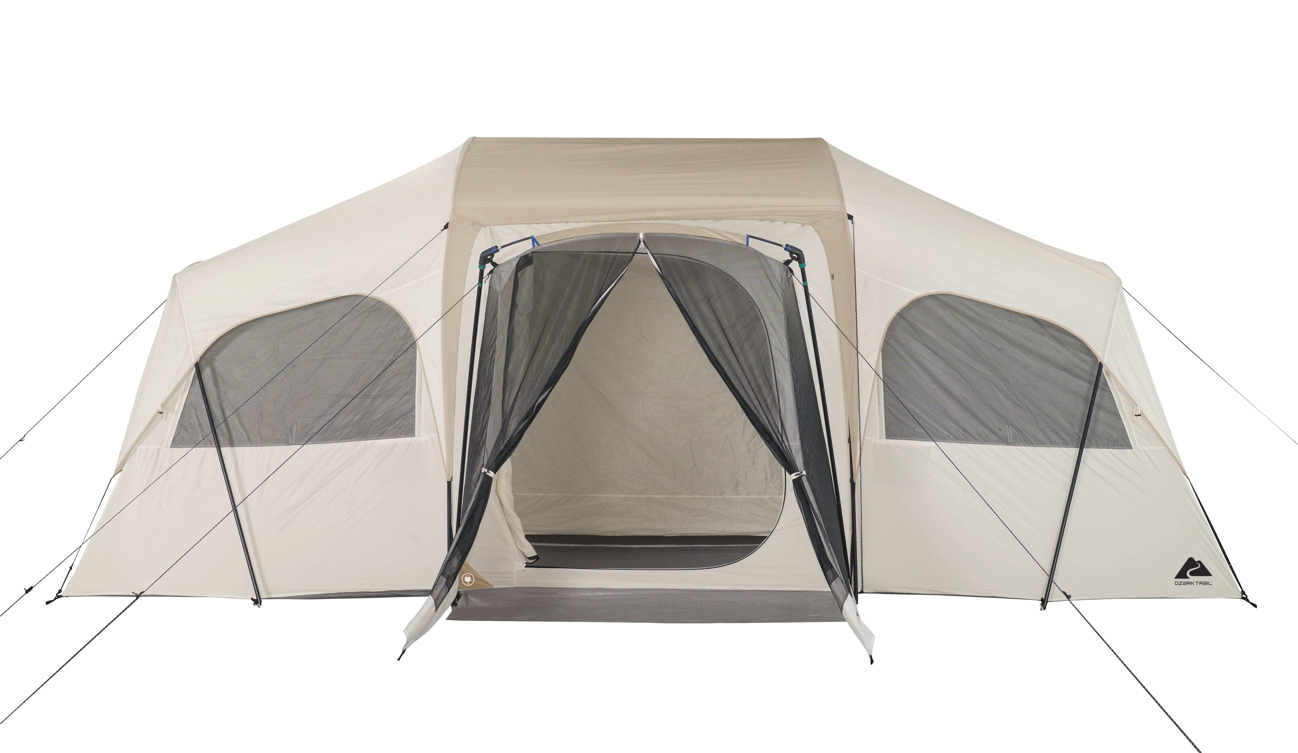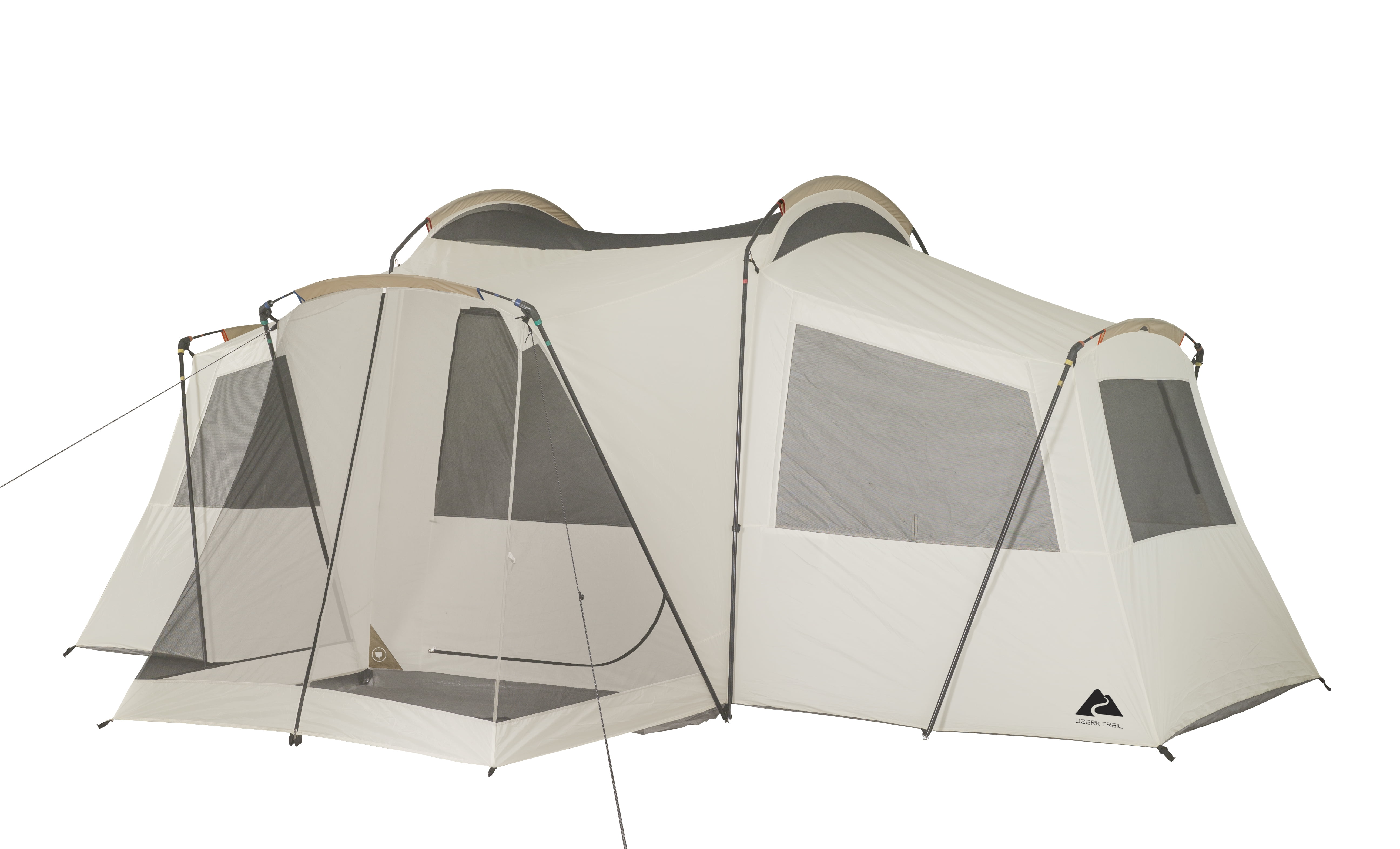 Ozark Trail 19′ x 18′ x 84″ Glamping Tent, Sleeps 12: Create a roomy, bug-free and ventilated oasis for your family and friends with the Ozark Trail 19′ x 18′ Glamping Tent. A chain corded free-standing frame system and 100 percent polyester cover makes it fast and easy to erect this outdoor tent on level ground. This home away from home sports tent is ventilated with 7 windows and a mesh roof that blocks insects and allows airflow, ensuring the comfort of everyone inside. You’ll have plentiful space for hanging with friends or relaxing. Perfect for long-term camping and sleeping up to 12 people, the welded tub floor keeps you dry and the hanging shelves allow for storage of clothes and sundries. If you want an instant outdoor oasis, consider buying the Ozark Trail 19′ x 18′ Glamping Tent today.
