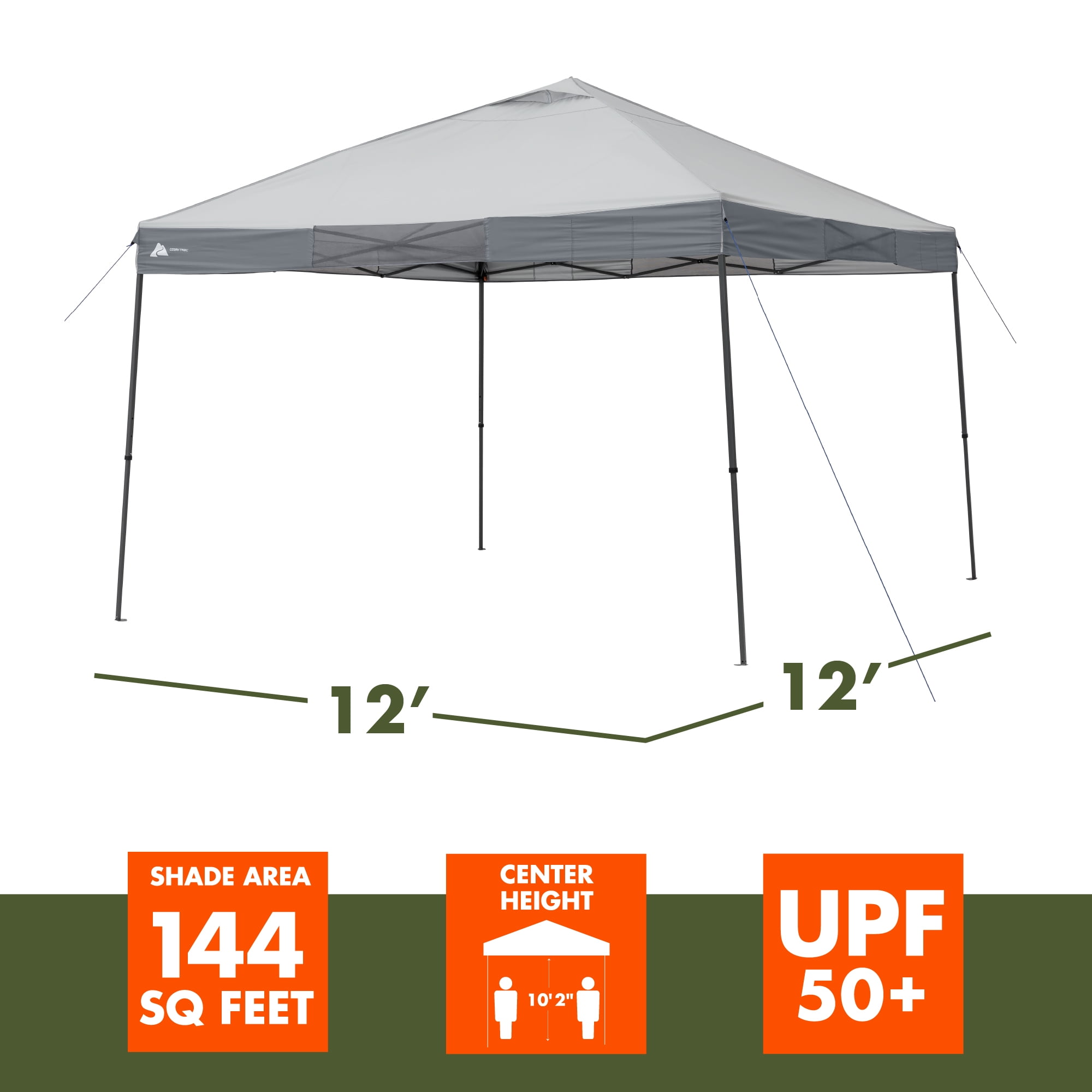 Ozark Trail 12′ x 12′ Instant Straight Leg Canopy for Camping – Gray