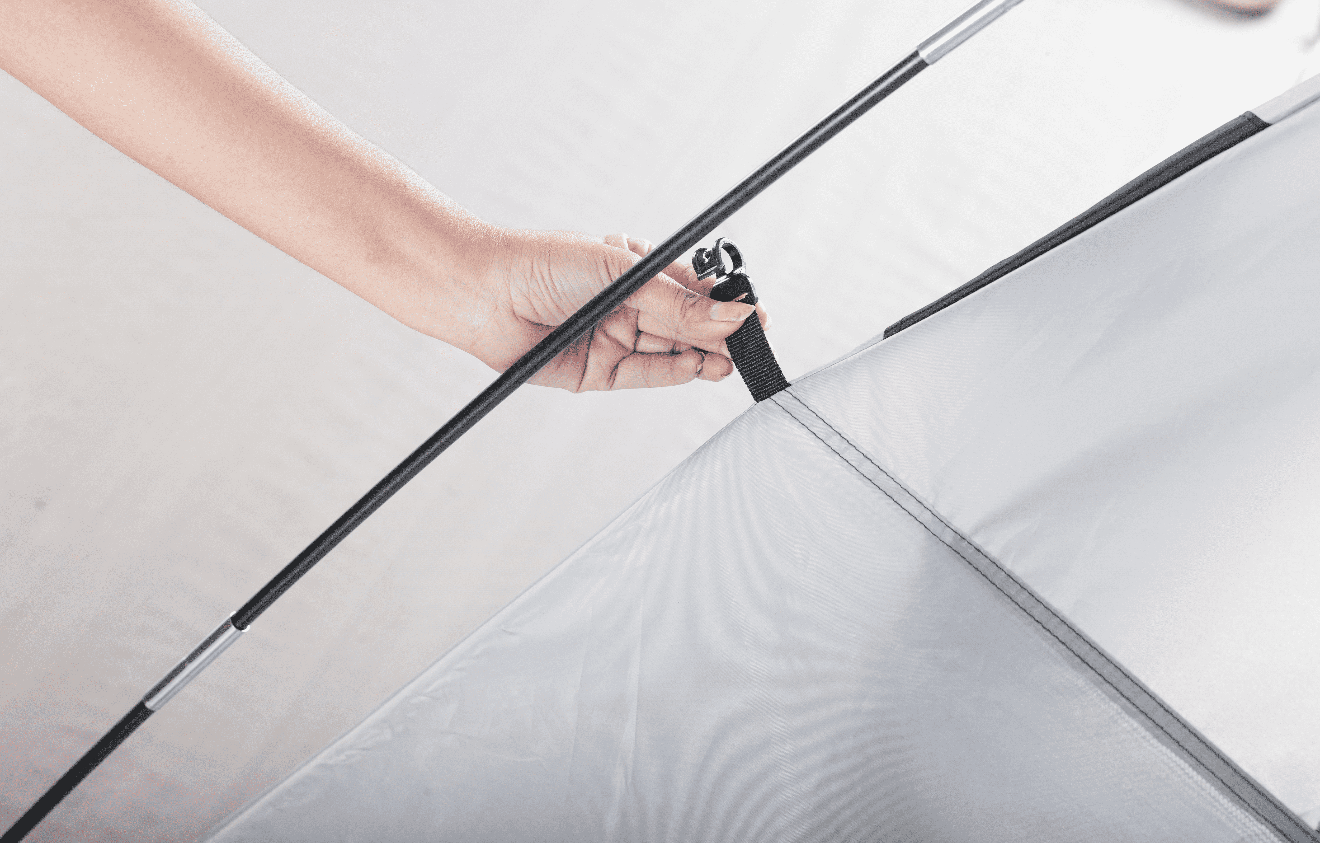 Ozark Trail 6-Person Clip & Camp Dome Tent, 12-Foot x 8.5-Foot x 72-Inch Sleeps 6 People 12 ft x 8.5 ft footprint 72 in Center Height Fits 2 18-inch Queen Mattresses Seam-taped removable rainfly for added weather protection Built-In awning at entryway Mud mat at entryway Mesh Roof/Walls for ventilation/star gazing Built-in storage pockets Additional storage pockets throughout Built-In e-port access for convenient power supply Hook and loop cord organization for holding cords off floor and out of way Item Assembled (LxWxH): 12 ft x 8.5 ft x 72 in Item Packed (LxWxH): 24 in x 5.5 in x 9 in Item Weight: 14 lbs Assembly required