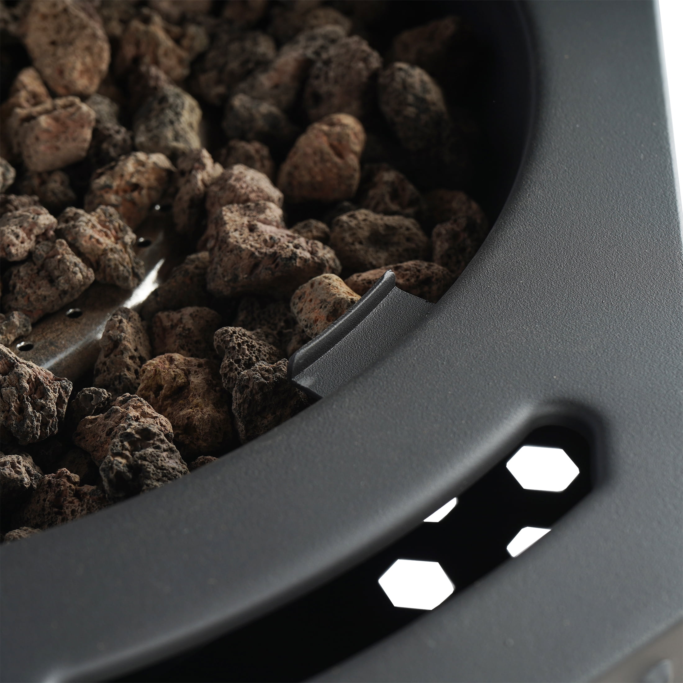 The Ozark Trail 15″ 54,000 BTU Propane Black Steel Portable Fire Pit with Locking Lid creates a glowing fire for your party – wherever you want it to be. This updated fire pit design includes a locking lid with a handle for protection and portability, and a control panel for changing the intensity of the flame. Gather with friends around the 11 ft heat radius and enjoy the warmth throughout the evening. The included lava rocks add beauty to your backyard while helping to spread firepit heat. Choose between a 5, 10, or 20 lbs propane tank (not included) to fuel the warmth.