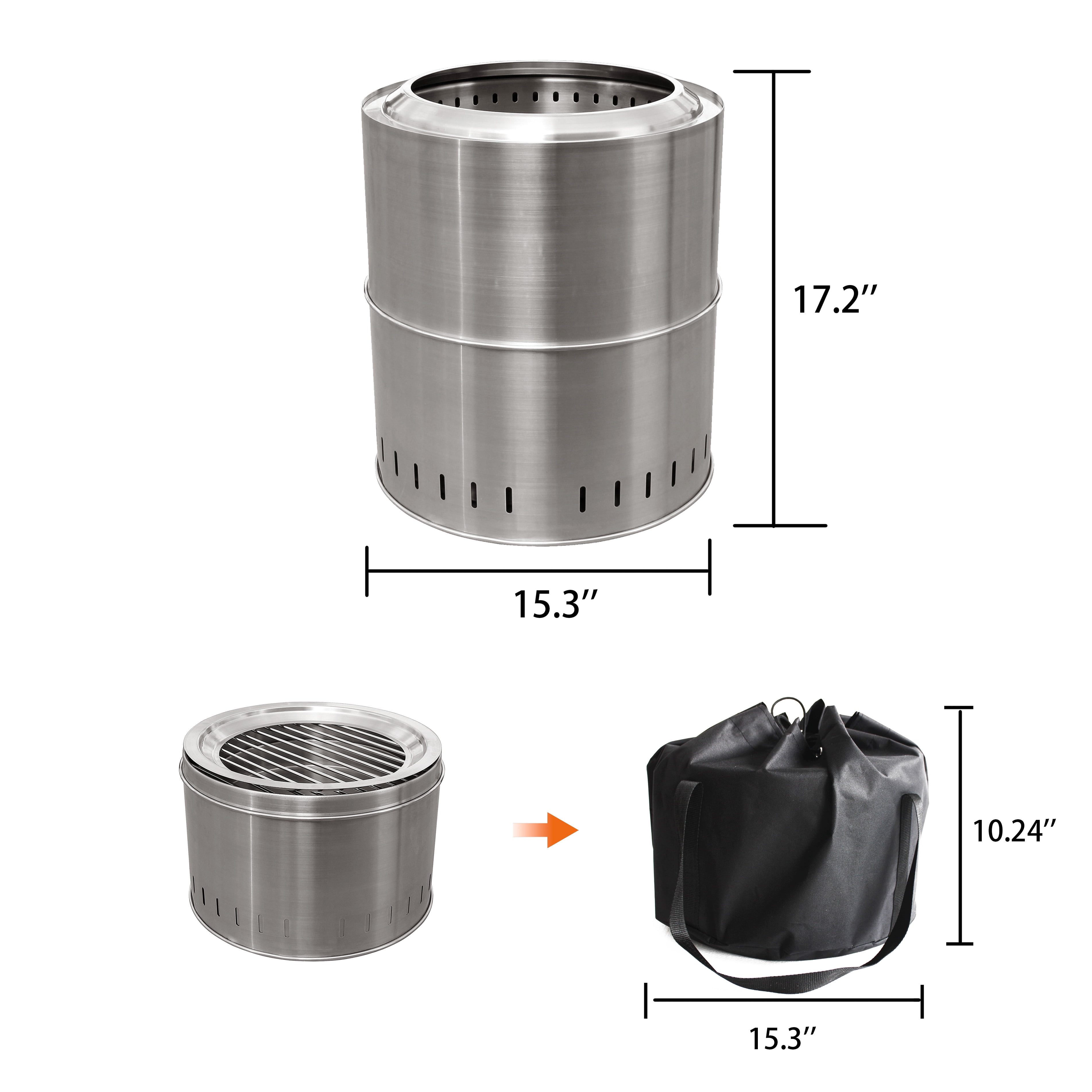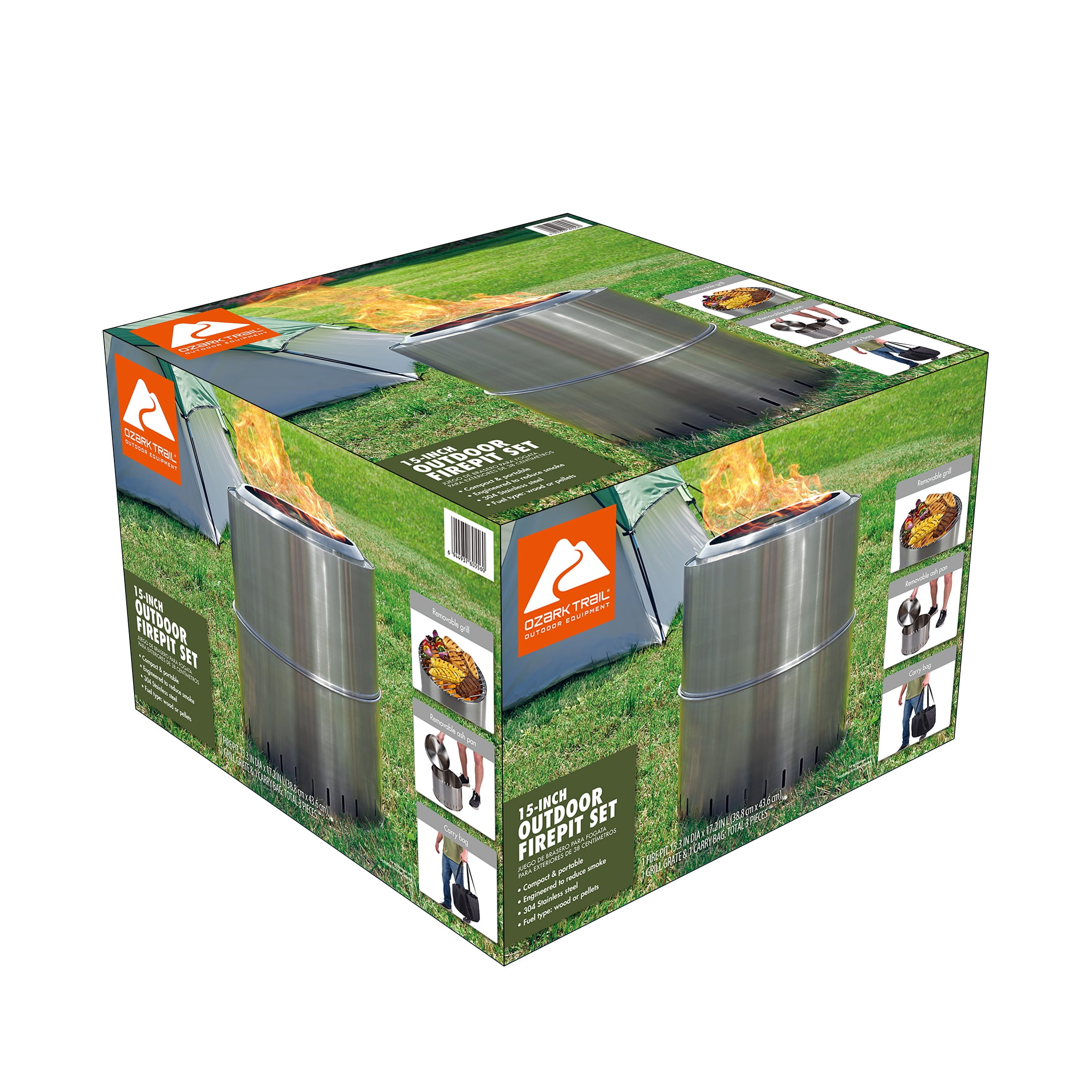 Ozark Trail 15″ Collapsible Stainless Steel Smokeless Wood-Burning Camp Fire Pit with Carry Bag