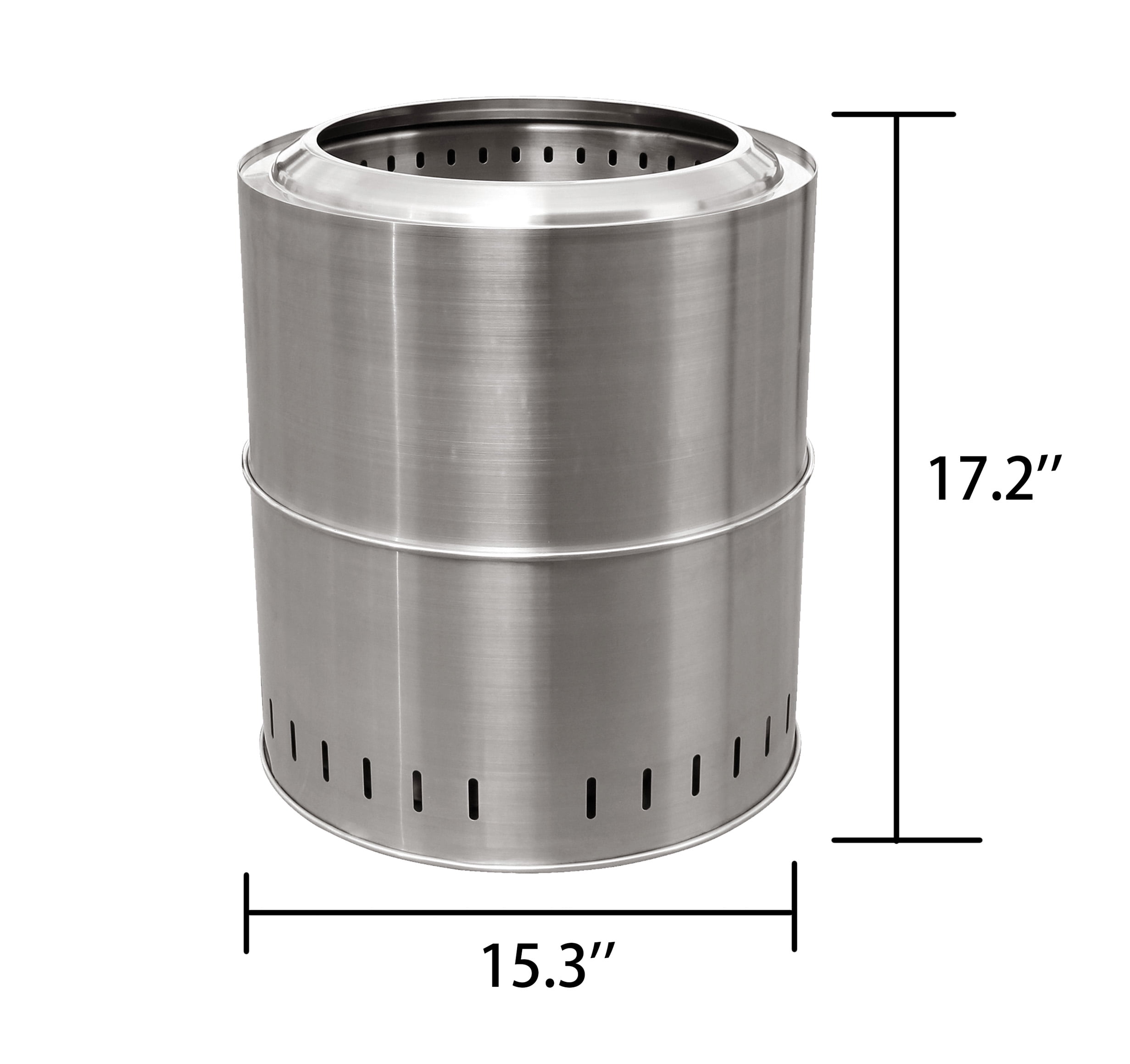 Ozark Trail Collapsible fire pit with carry bag, space-saving and easy to carry and store. 304 stainless steel body with high quality, not easy to rust, more durable high-temperature resistance. Food-grade stainless steel grill grate enjoy a delicious flavor Removable ash pan loose ash to prevent clogging of vital airflow, makes cleaning more easy. Camping stove strategically has holes in the double-wall structure which maximizes airflow from the bottom, providing the heated oxygen to the top and creating a burst of hot air over the fire while reducing the smoke without the use of batteries and fans in your fireplaces. Ideal for outdoor heating or camping Fuel type Wood or pellets For outdoor use only Color: Silver Weight 16.06 lbs. Dimensions 15.3” Dia x 17.2” H Ships in 1 box Imported
