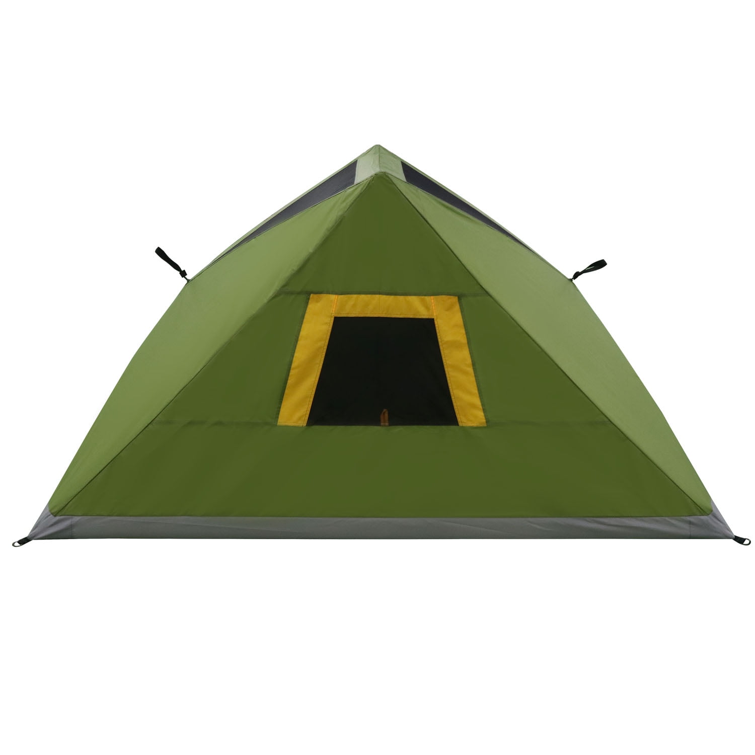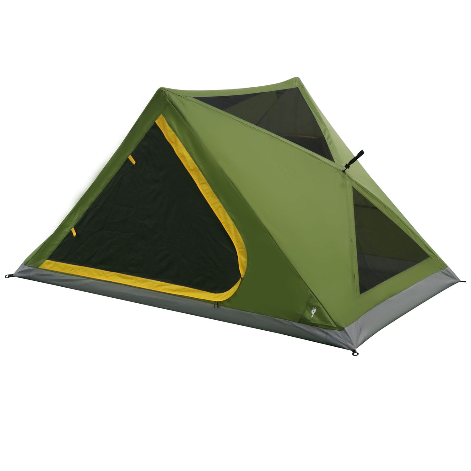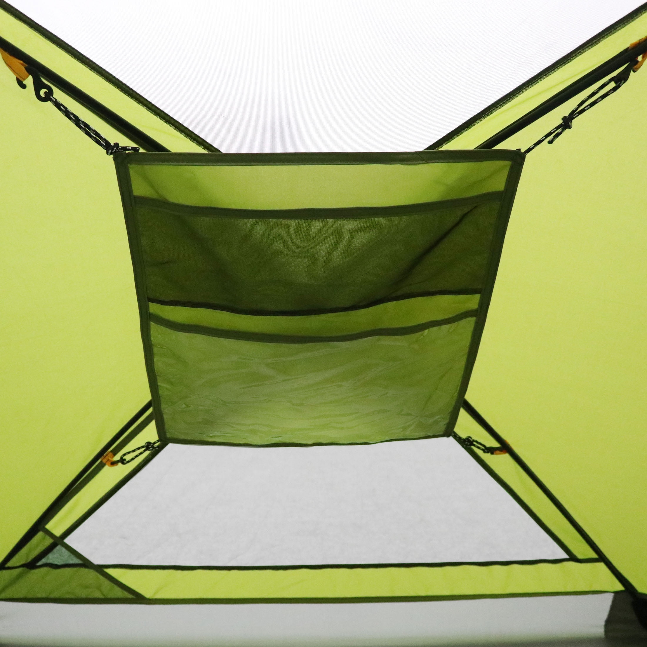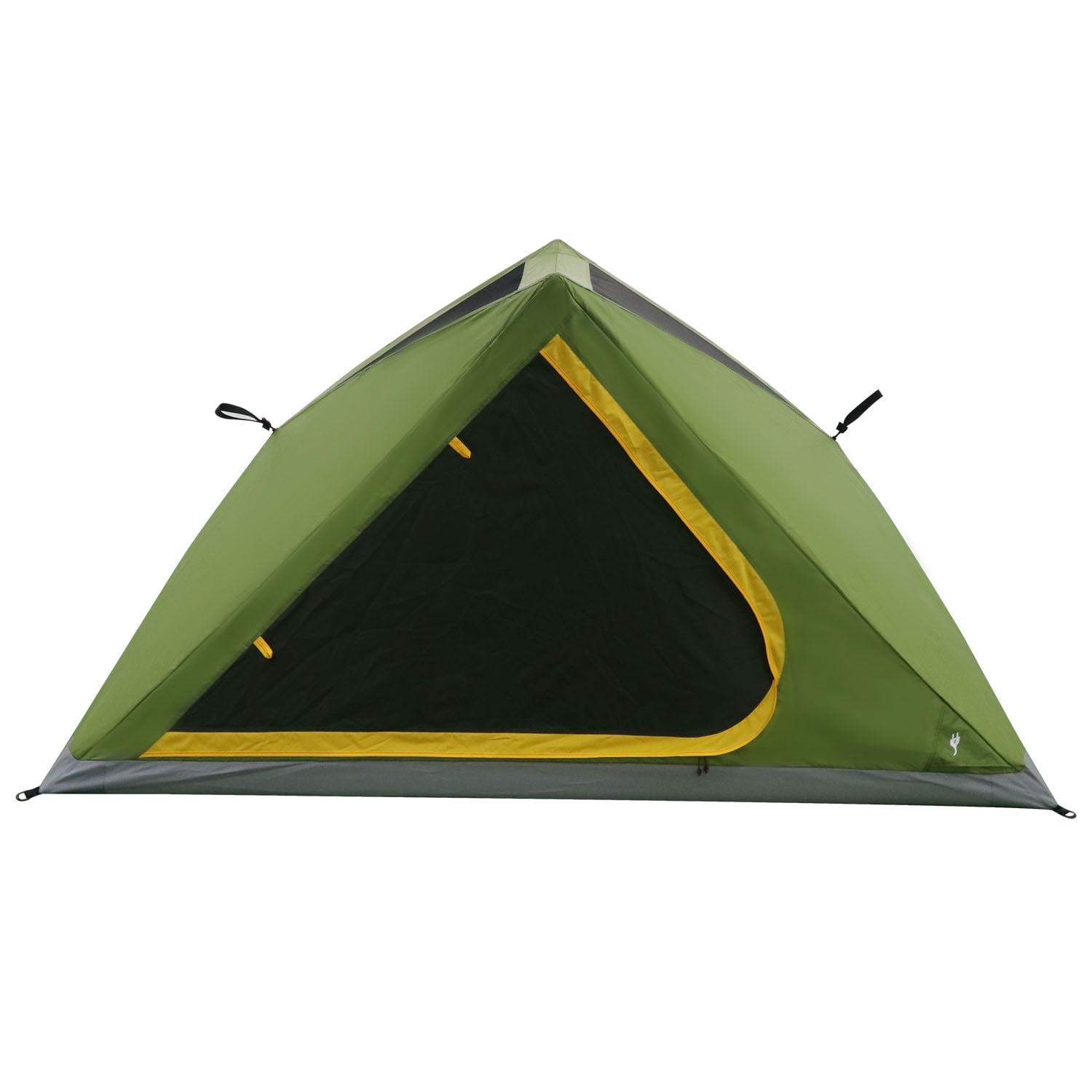 Simple to use fiberglass hub style frame sets up in minutes Four mesh vents and one rear window provide ventilation Includes E-Port, mesh pockets, and tablet holder Carry bag included for easy storage and transportation Maximum Occupancy 2 Dimensions (inches): 57.48” x 88.58” x 51.18” Product weight (pounds): 7.48 pounds Green 2-Person Pop up Hub tent Instant Tent