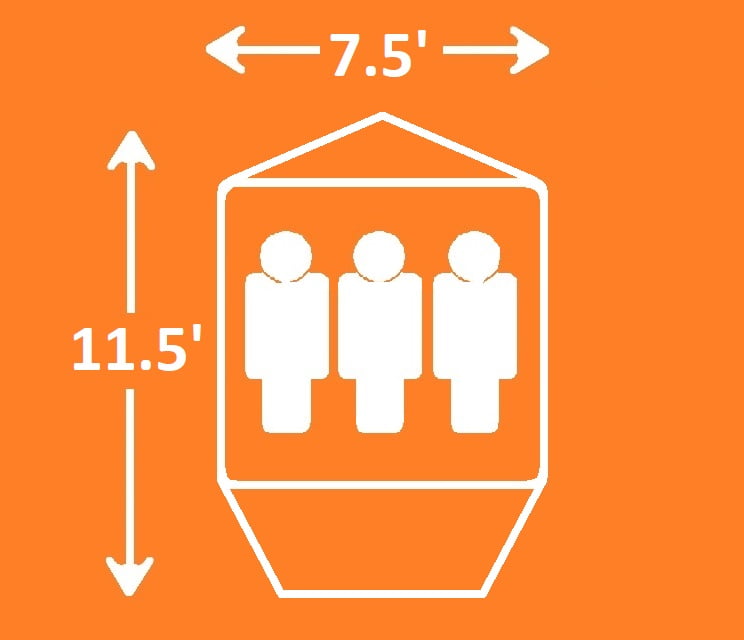 FEATURES: Sleeps 3 people 7.5? x 11.5? Footprint 55 in. Center Height for added head room Fits 1 Queen Air Mattress Taped Seams for added water-resistance Large Doorway for easier entry/exit Built-In Porch, Vestibule and/or Awning Gear loft for storing small items 2 separate storage pockets for organizing DIMENSIONS/WEIGHT: Item Assembled (LxWxH): 7.5? x 11.5? x 55? Item Packed (LxWxH): 18? x 4? x 8? Item Weight: 13lbs, 10oz Capacity: 3 Body Fabric: Polyester Taffeta Mesh Fabric: No-See-Um Mesh ADDITIONAL FEATURES: Limited 6 Month Warranty Assembly Required. Please see video at the top of the page, next to Item Images, for a complete set-up and take-down demonstration. Item instructions are stitched to the inside of the carrying bag. Manual and Guide can be located below for viewing and download under the Manual and Guide section. Please open the PDF attached there. For questions, replacement parts, or an extra copy of set-up instructions, please call our Customer Service Line: 1-888-280-7876