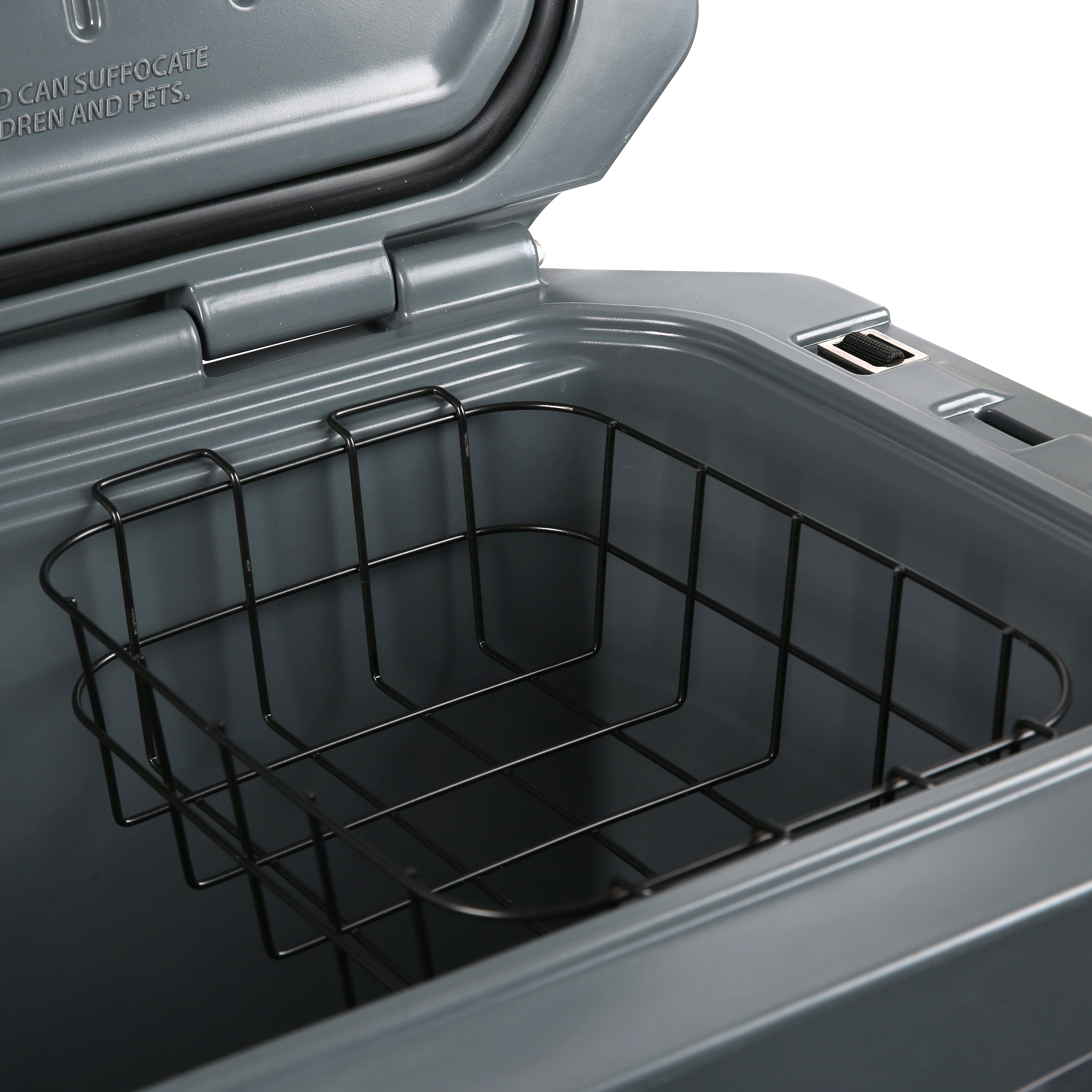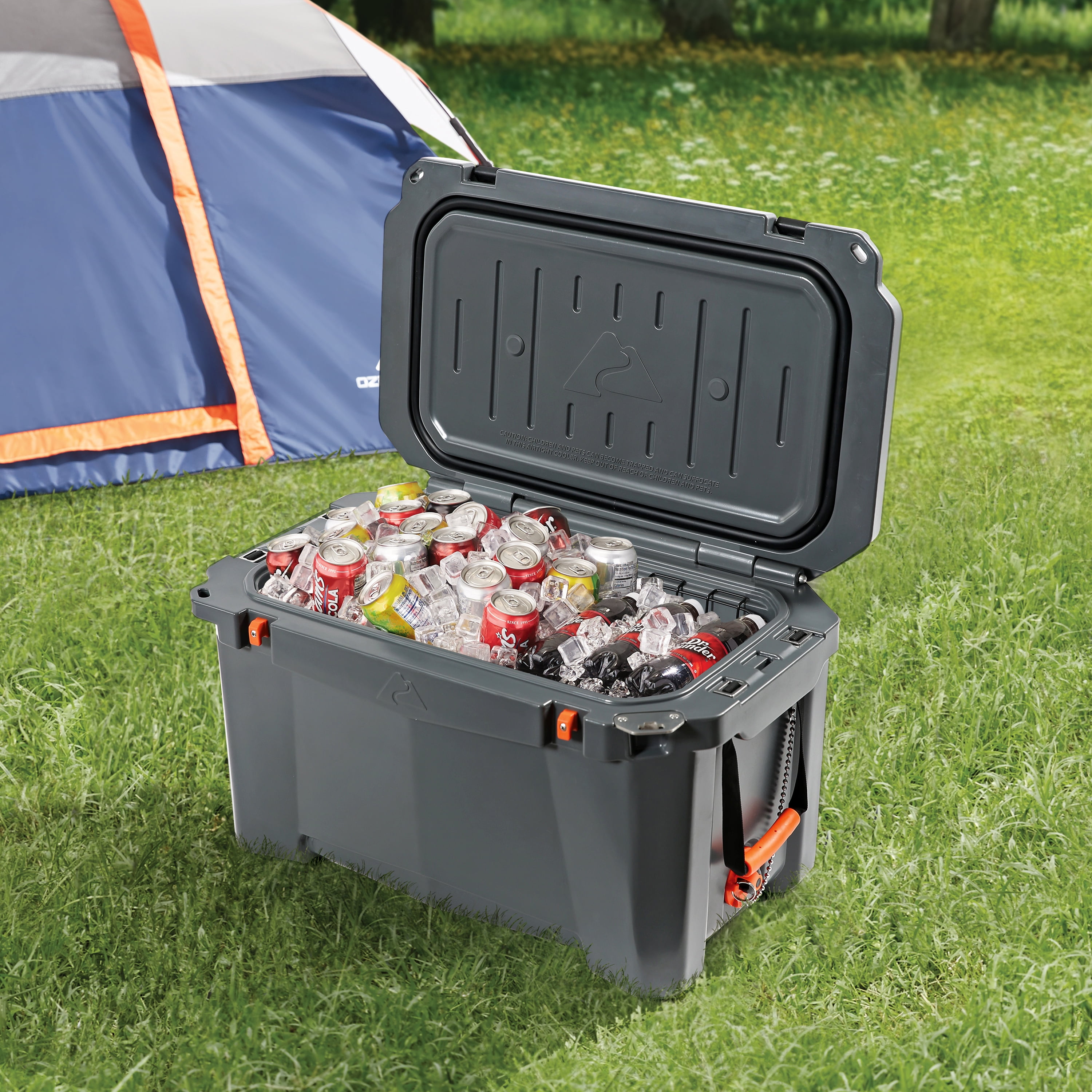 Ozark Trail 52 QT High Performance Roto-Molded Cooler with Microban®, Gray Premium insulation keeps ice for days Indoor or outdoor cooler with roto-molded, seamless, one-piece construction with UV-resistant exterior Air-tight, super-seal gasket keeps the cold in and the heat out Ice chest includes garden hose compatible, oversized drain Heavy duty handles with comfort grip Industrial strength stainless steel locking plate with built-in bottle opener Ice cooler includes wire basket for storage and organization Reversible anti-skid/slide feet Certified bear-resistant by the Interagency Grizzly Bear Committee Includes new, easy-open cam latches Fish ruler and 4 drink holders on lid Limited 5 Year Warranty Check out all Ozark Trail products! ‘s Ozark Trail Brand has ice chests and coolers for all of your needs. Our range includes soft or hard coolers for camping, hydrating, toting or rolling – Ozark Trail can keep you cool all summer! Assembled Product: 17.5″x 17″x28.5.” Assembled Product Weight 28.73 lb. Color: Gray. Color: Gray