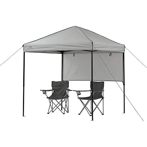 Ozark Trail 6′ x 6′ Instant Sport Canopy: Instant technology allows for quick set up in just minutes 36 sq ft of shade Half sun wall for additional sun and weather protection Perfect size for 2 outdoor chairs Easy push-button system for safe, quick and easy setup and takedown Durable telescoping steel frame and feet for use on concrete or dirt 50+ UV protection for additional protection from the sun Includes carry bag Measures: 6′ x 6′ Center Height: 85″