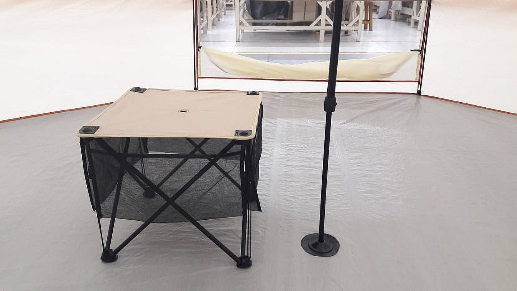 13′ x 13′ x 92″ footprint Fits two queen-sized air mattresses with room for gear Maximum occupancy: 8 people Seam-Taped rain-fly with built-in awning for added weather protection Windows feature a roll-down design for ventilation Integrated center table for added functionality of groups/family needs Mud mat helps keep tent clean of dirt and other debris 3 screened window walls for ventilation and keeping tent bug free Four-sided wrap around storage pockets on center table Two additional 4-section storage pockets for organization of everyone’s small items E-Port for running power to devices