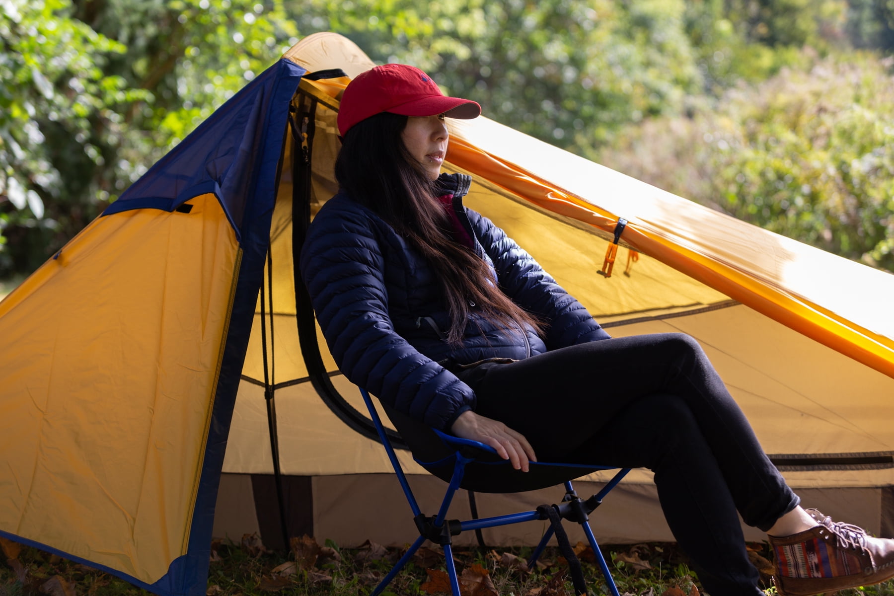 When you’re out on the trail, the Ozark Trail Compact Backpacking Chair in black can make any spot comfortable. With a blue powder-coated steel shock-corded frame, assembling and folding are simple. The backpacking chair comes with the minimized risk of lost parts. It is compact and lightweight, yet durable enough for your weekend nature hike, holding up to 250lbs and weighing in at just 2.2 lbs. This chair also comes with a carry bag for easy storage and toting. Stay comfortable while on your adventures with the Ozark Trail Compact Backpacking Chair. Adult, Black chair
