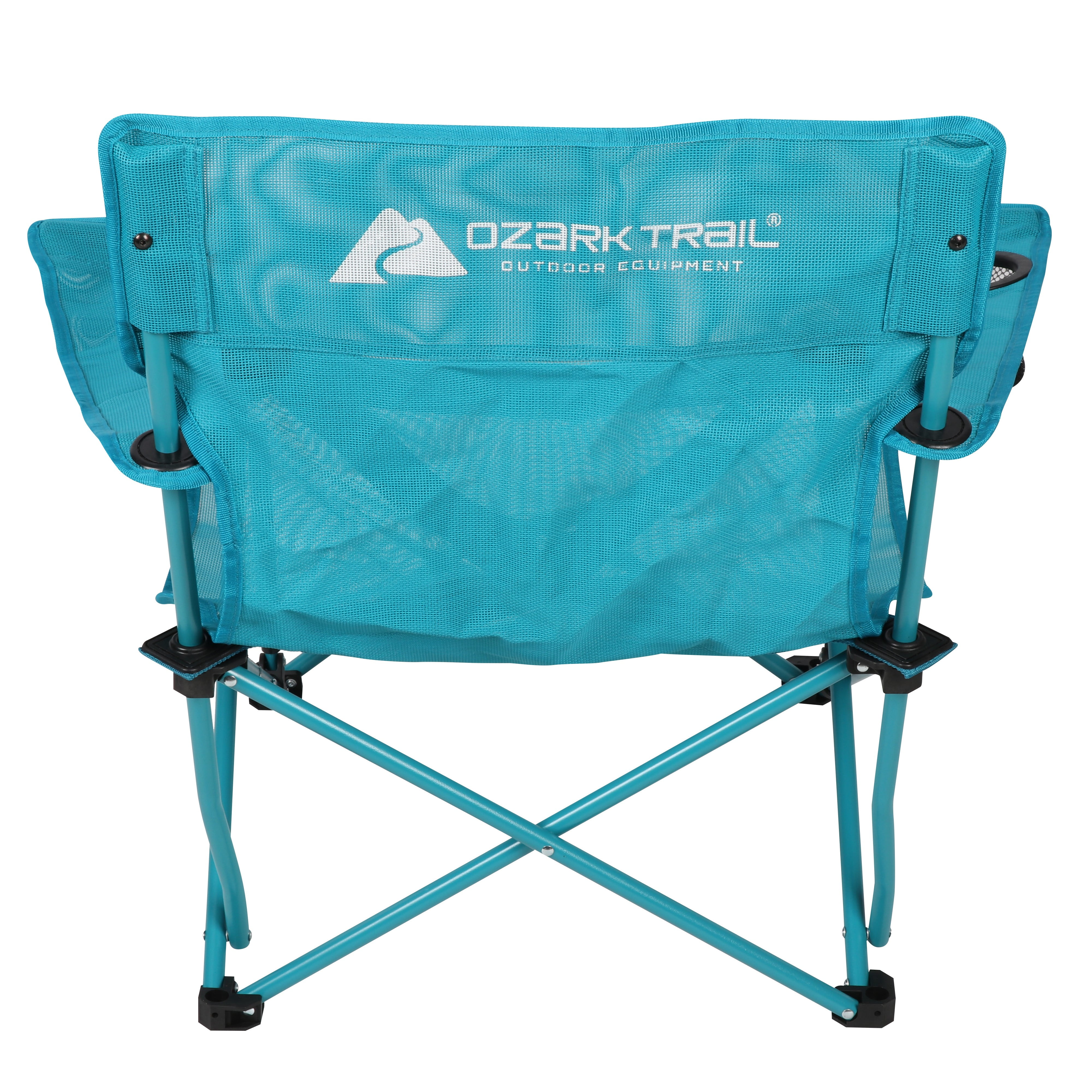 Ozark Trail Mesh Beach Folding Chair, Turquoise: Durable steel frame Compact, quad folding design Dura-Mesh fabric for increased ventilation Lower seat height One built-in mesh cupholder Weight capacity: 225 lbs Product weight: 6.6 lbs Open dimensions (inches): 31” x 23.7” x 27” Adult Use