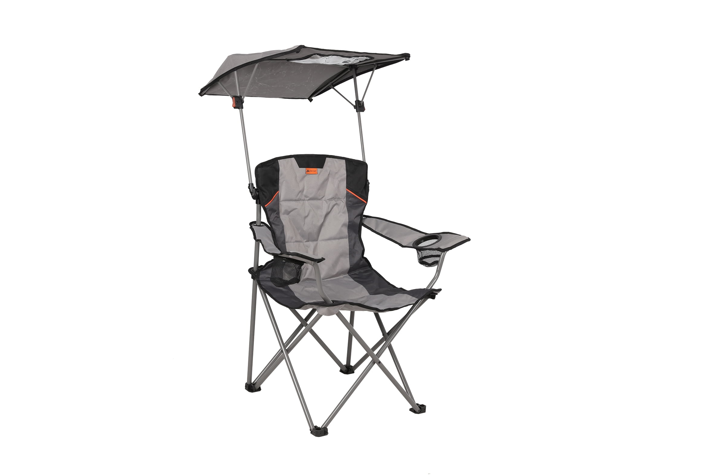 Ozark Trail Camping Chair with Shade, Black and Gray, Adult, Oversized