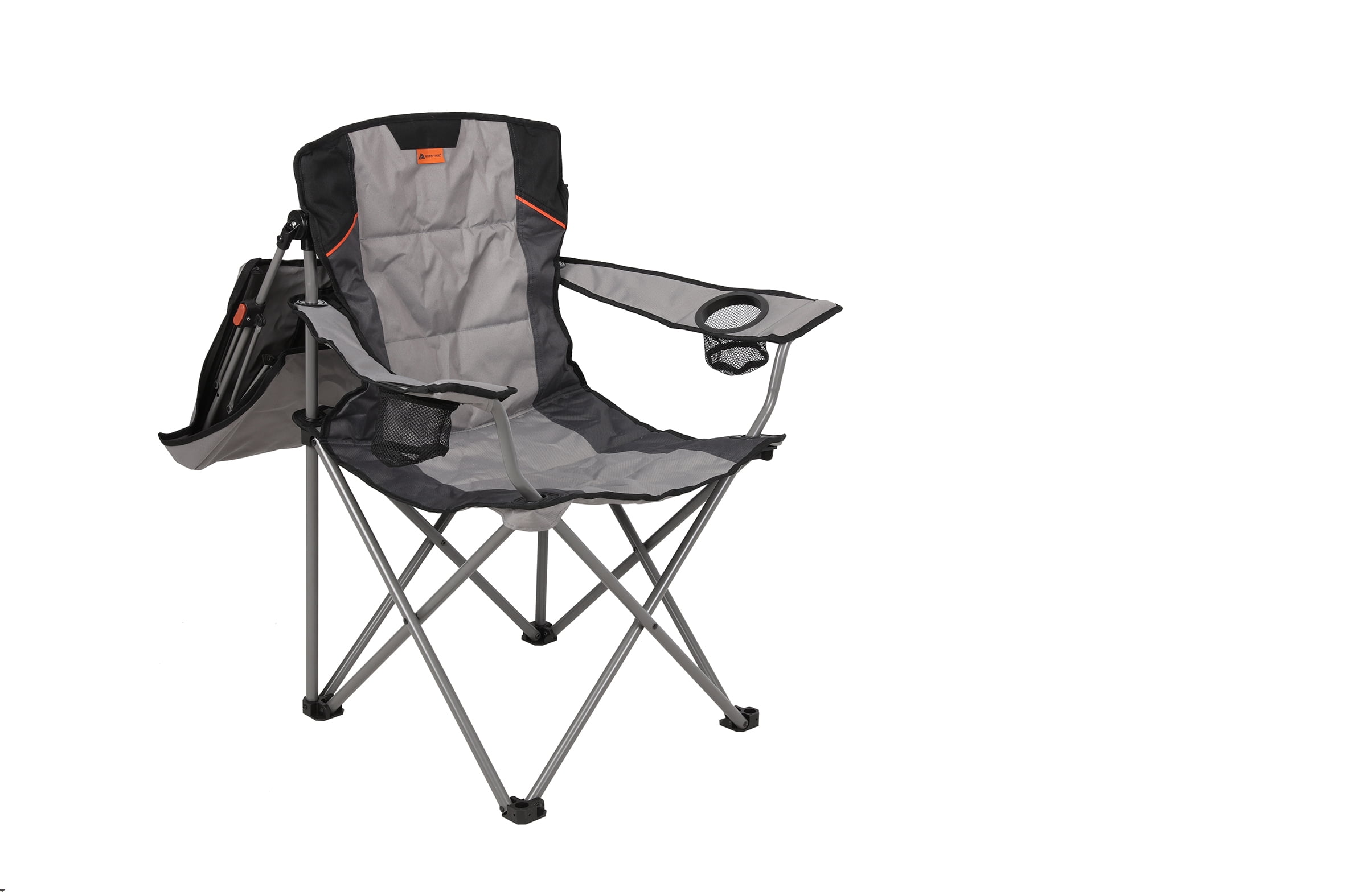 For comfortable, shaded adult seating choose the Ozark Trail oversized quad folding canopy chair. This chair boasts a 300-pound weight capacity and features an adjustable canopy to ensure you’re always in the shade. The padded seating area detaches to reveal mesh for ideal ventilation to help keep you cool on hot days, and when the padding is removed, it can also be used as a portable dog bed. Additionally, this chair features a mesh cup holder to keep a drink nearby. To ensure you spend more time relaxing, this chair is sets up easily for quick comfort. When it’s time to go, it folds flat for compact transportation and storage. Whether camping, tailgating or just hanging out in your backyard, before heading out on your next outdoor adventure, make sure to grab the Ozark Trail oversized quad folding canopy chair.