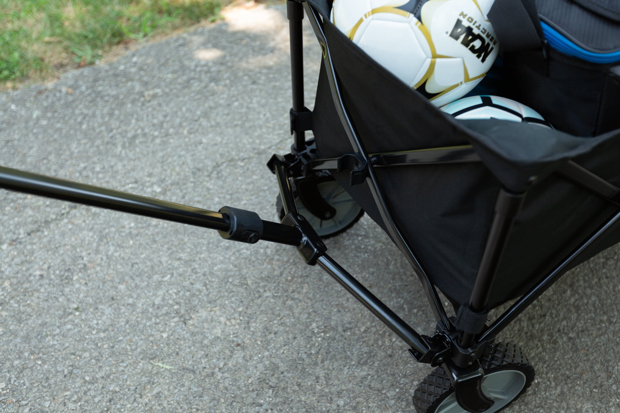 Ozark Trail Folding Multipurpose Wagon: Quad folds for easy storage in your closet, garage, or the trunk of your car Great for hauling around supplies at your campsite 7-inch heavy-duty PVC wheels MDF board insert for the bottom of the wagon is also the carry wrap Ergonomic telescoping handle extends for easy towing Use the carry handle to fold up the wagon Durable steel folding frame and polyester fabric Weight Capacity: 225lbs Assembled Dimensions: 35.50 x 18.90 x 21.60 Inches