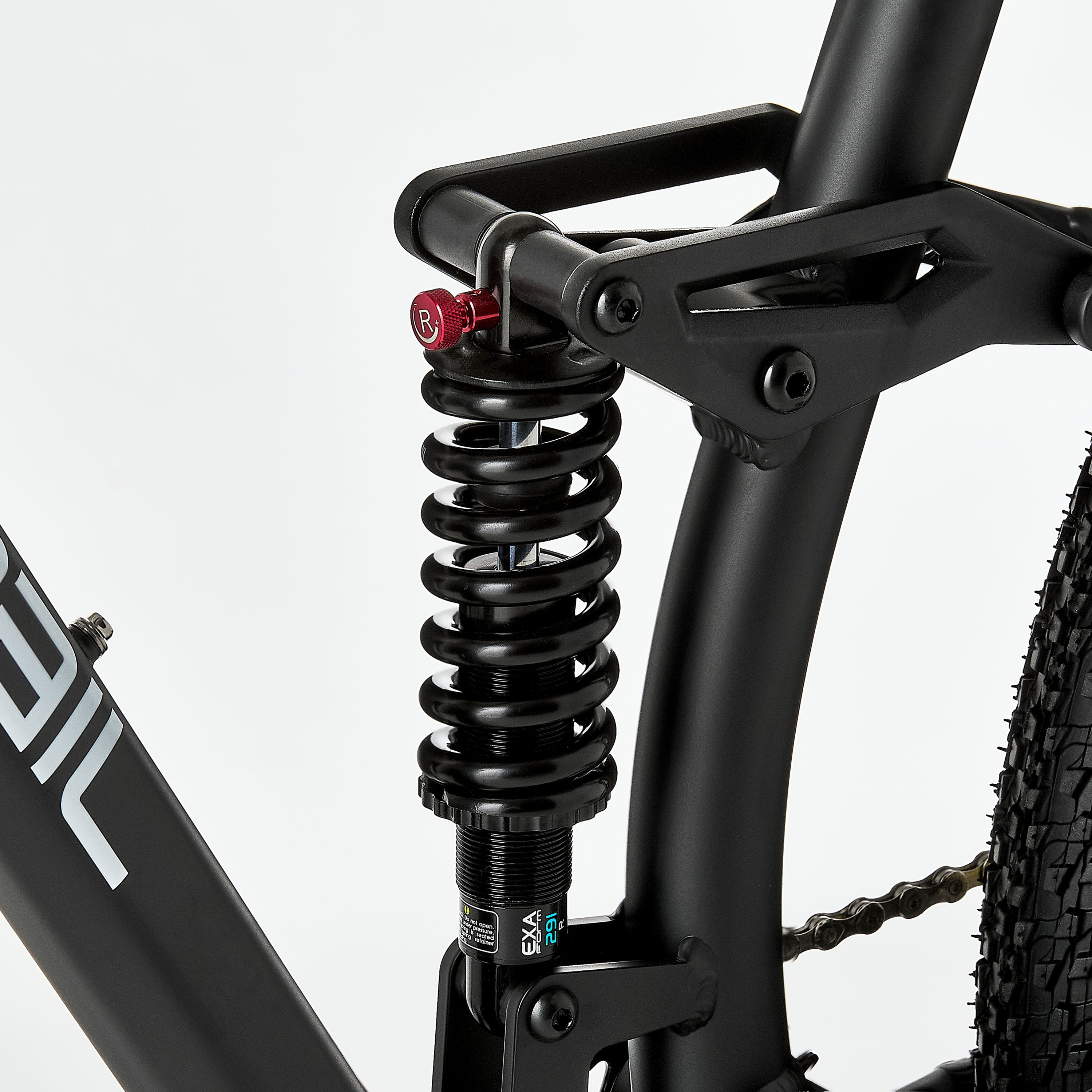 This adult Ozark Trail full suspension bicycle features a robust 29″ full alloy frame with a tapered head tube and 4-point pivot bearing, providing enhanced stability and strength. Equipped with a adjustable damping rear shock and coil suspension fork, it absorbs impacts for a smooth ride. The front and rear disc brakes offer reliable stopping power, while the Shimano Cues 1×9 speed derailleur system ensures smooth gear changes. The 29″*2.35 tires with double-wall alloy rims and alloy hubs ensure durability. Adventure is where memories are made, whether it’s campouts in the backyard with the kids, Saturdays at the river with friends, or a week in the wilderness alone. Ozark Trail helps you and your family create everyday adventures with gear and accessories built with you in mind. From backpacks to tents, they’re rugged, dependable, and priced to be practical. Because adventure is not a destination; it’s a lifestyle.