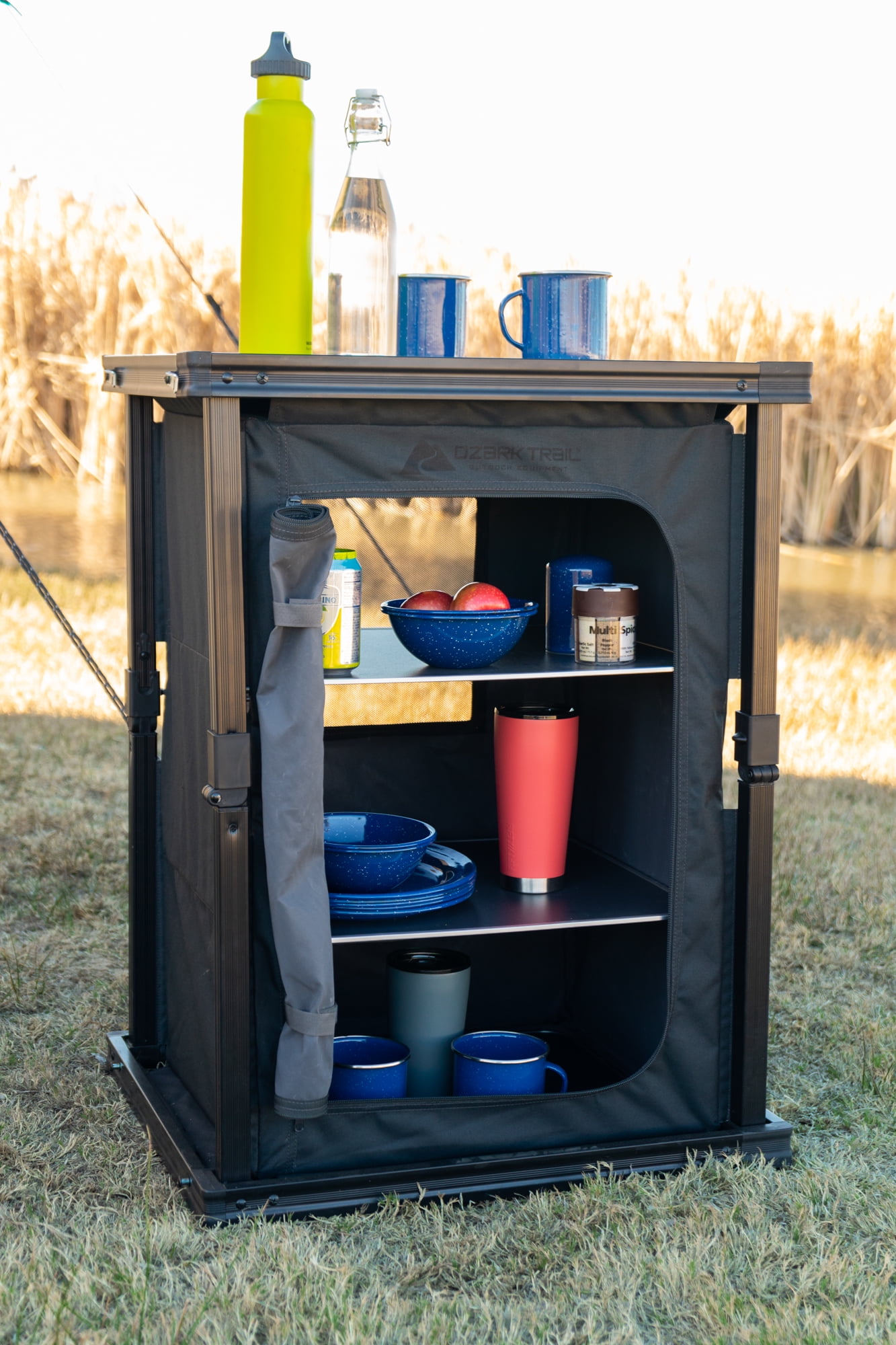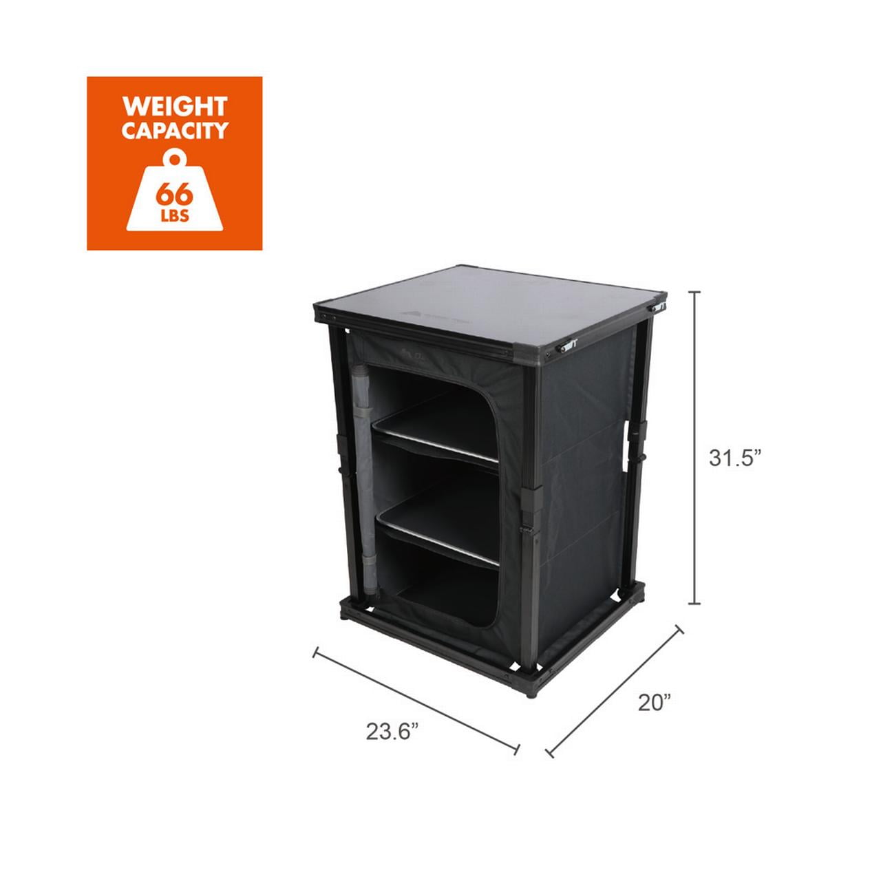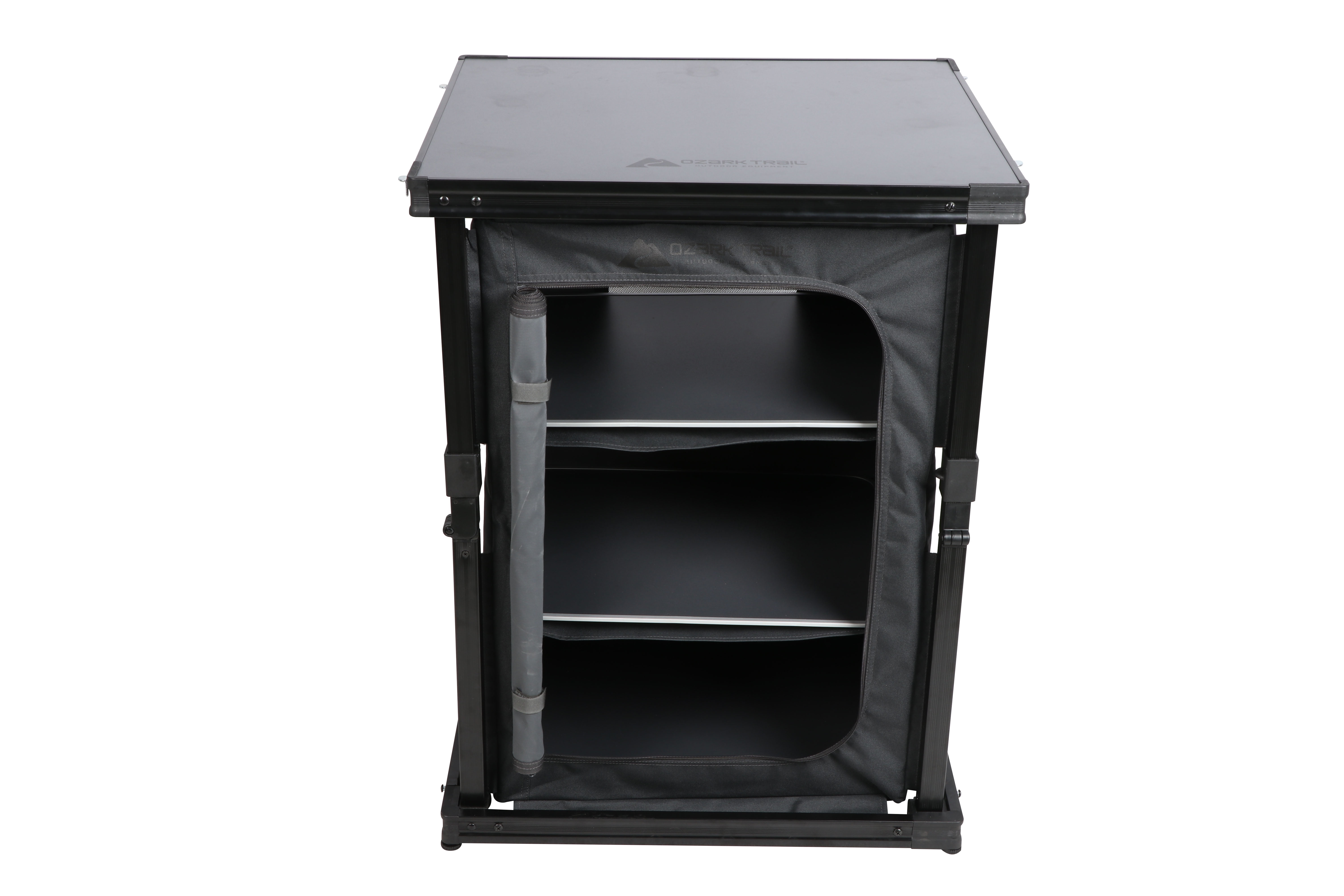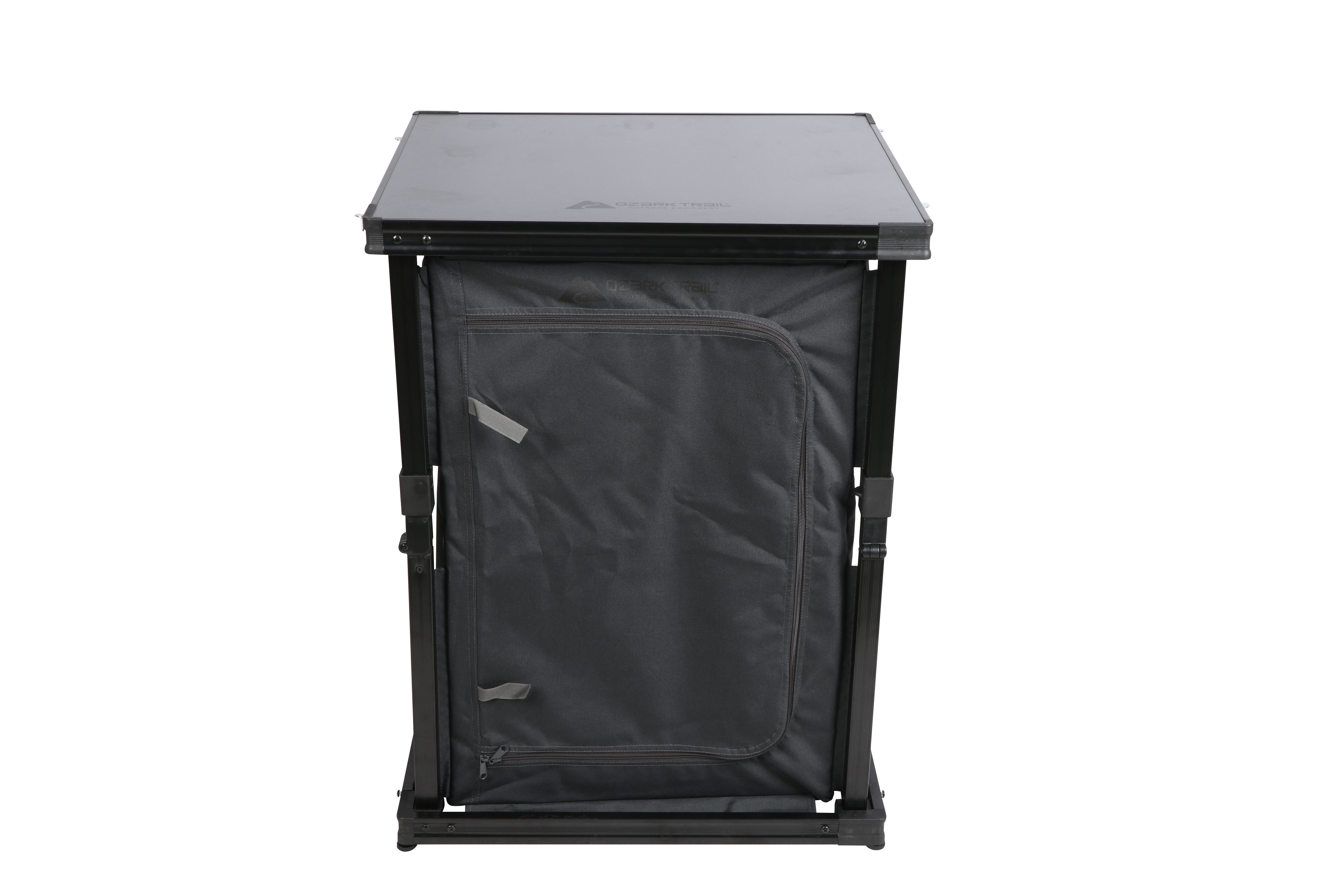 Get ready to whip up a gourmet meal by the campfire with the Ozark Trail Crane Lake Kitchen Organizer. It gives you plenty of room for prep and storing your cooking tools and supplies at the campsite. An easy-to-clean MDF board on top is perfect for preparing your food and wiping up the mess. Setup is easy with this organizer, so you can save on the hassle and concentrate on the outdoor fun. When it’s time to go, it folds up easily into a convenient carrying case, making it easy to carry and store in your car trunk or closet. Whether you’re taking the family on an extended camping trip in the mountains or just taking a day trip to a local hiking trail, Ozark Trail has everything you need to enjoy the great outdoors. Browse all our gear like spacious tents, durable backpacks, warm sleeping bags, outdoor cooking supplies, and more. Step up your outdoor adventures with the Ozark Trail Crane Lake Kitchen Organizer, Gray color. 23.6Wx20Dx31.5H