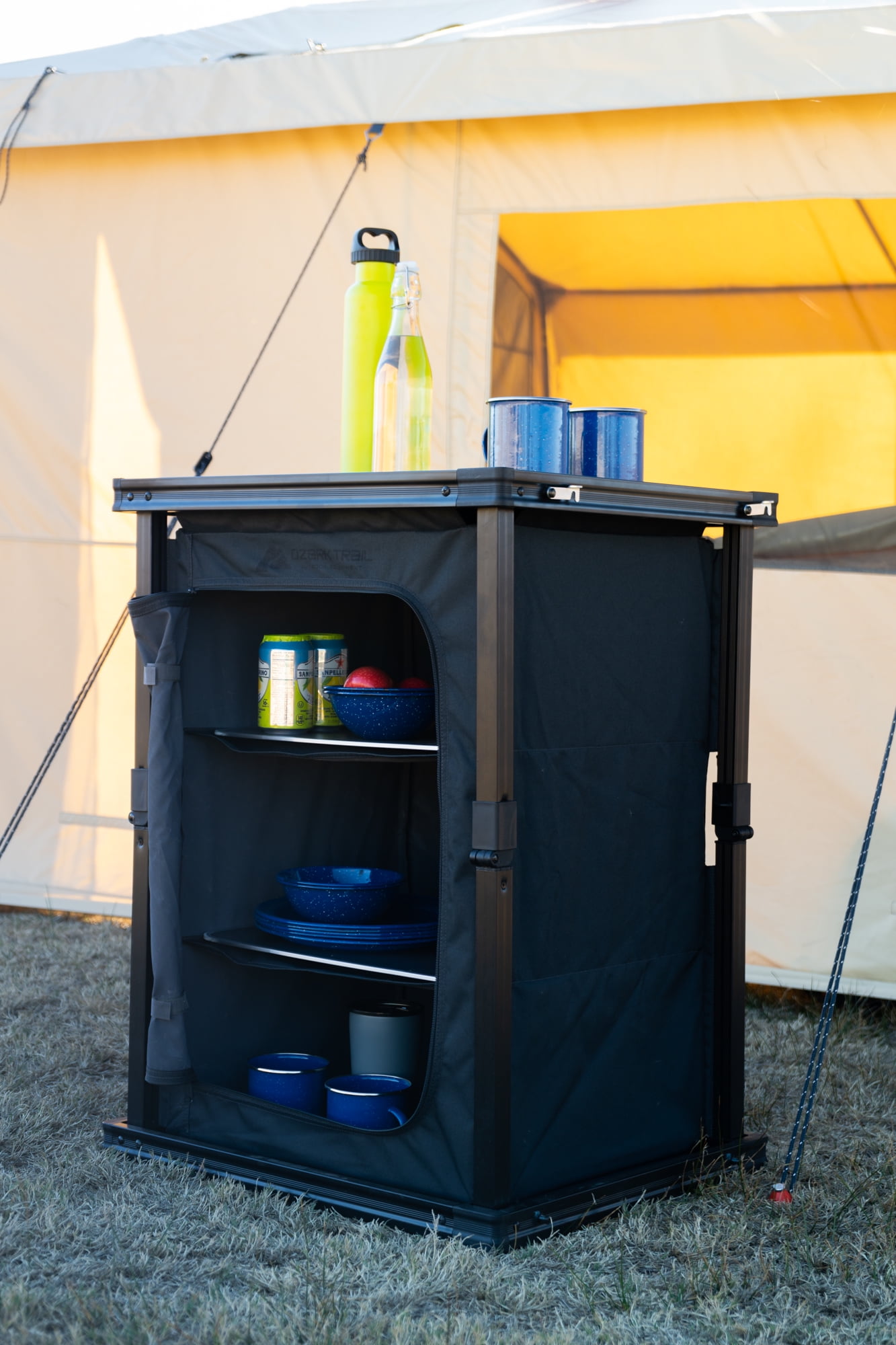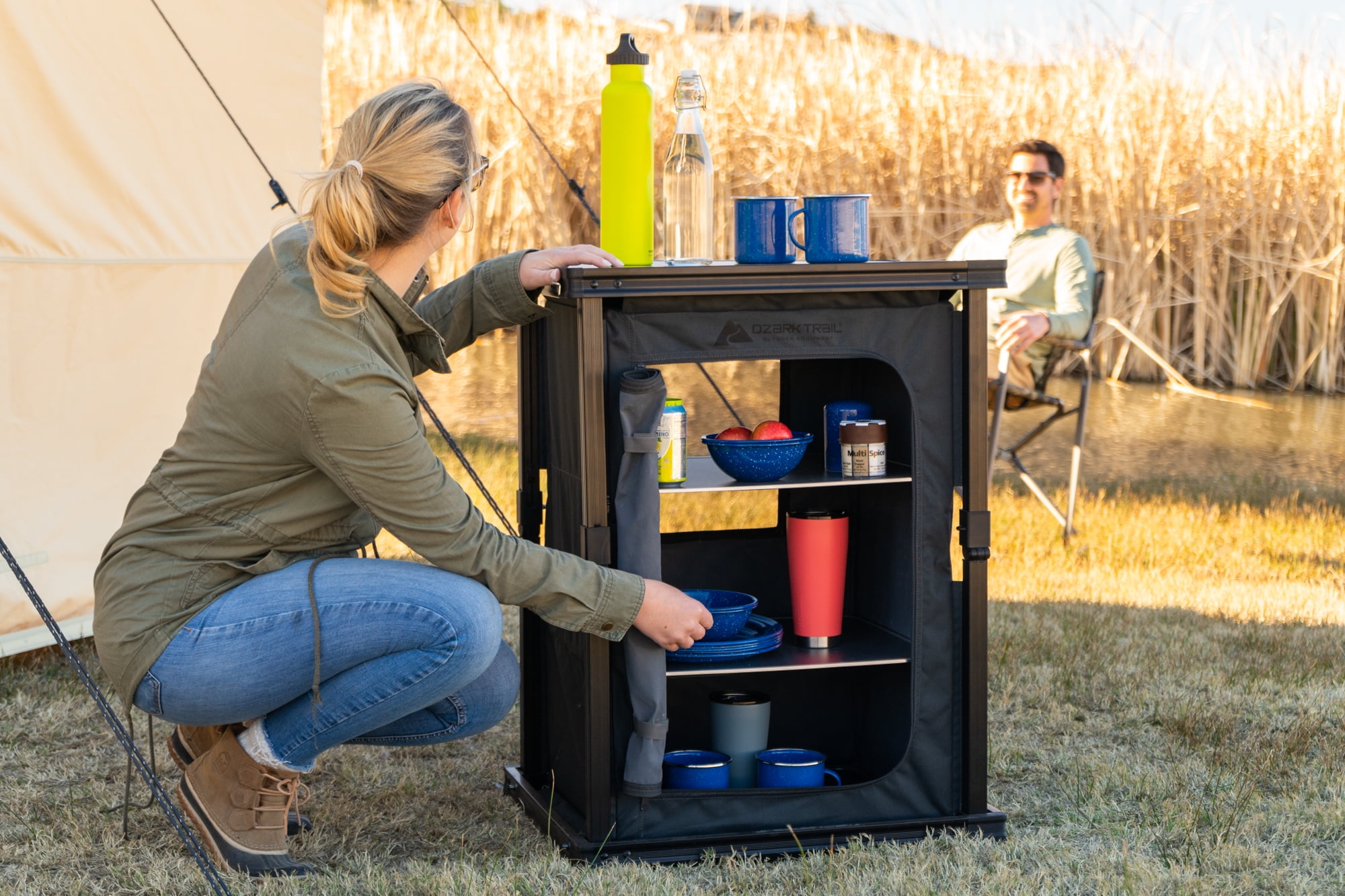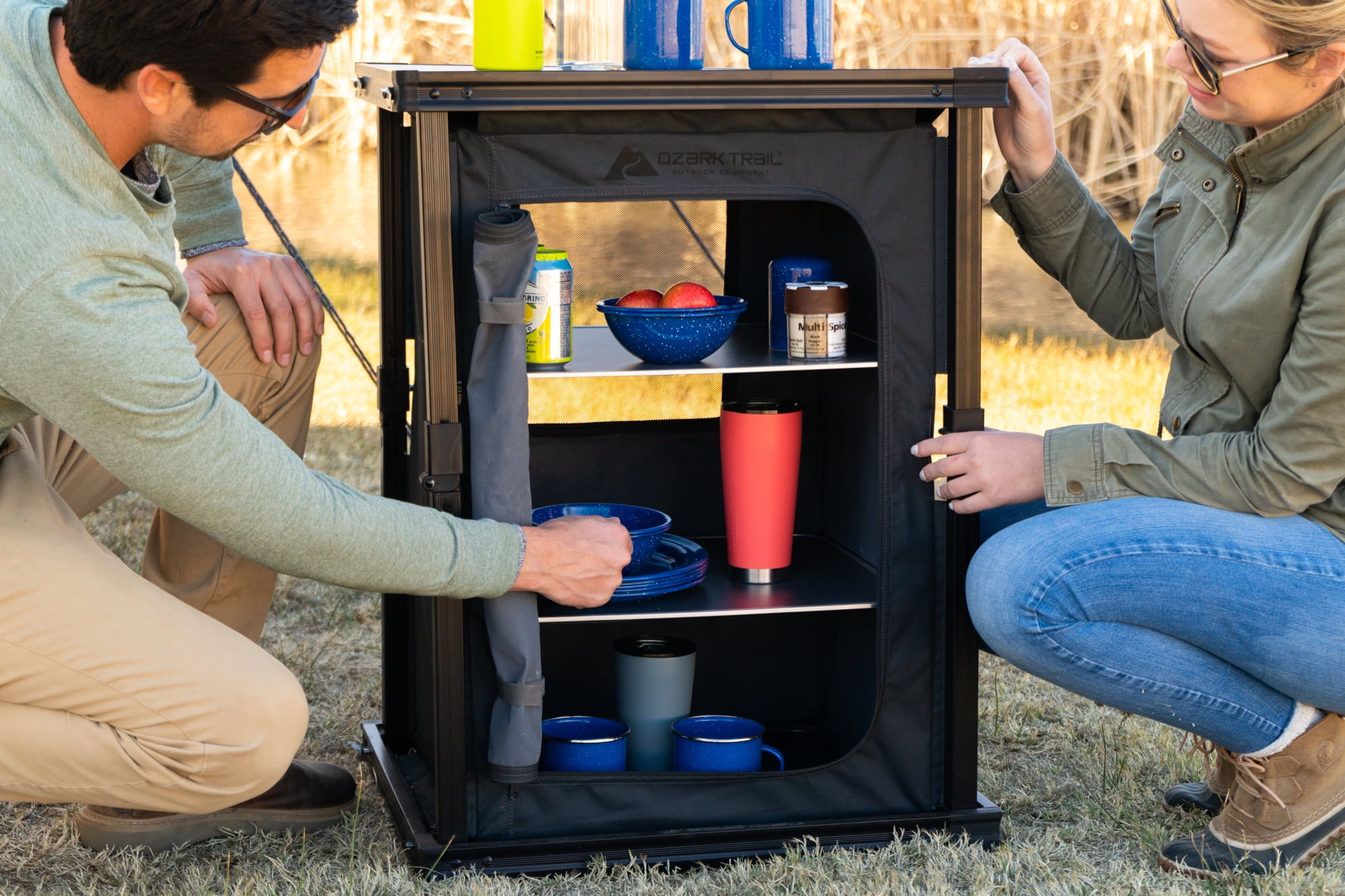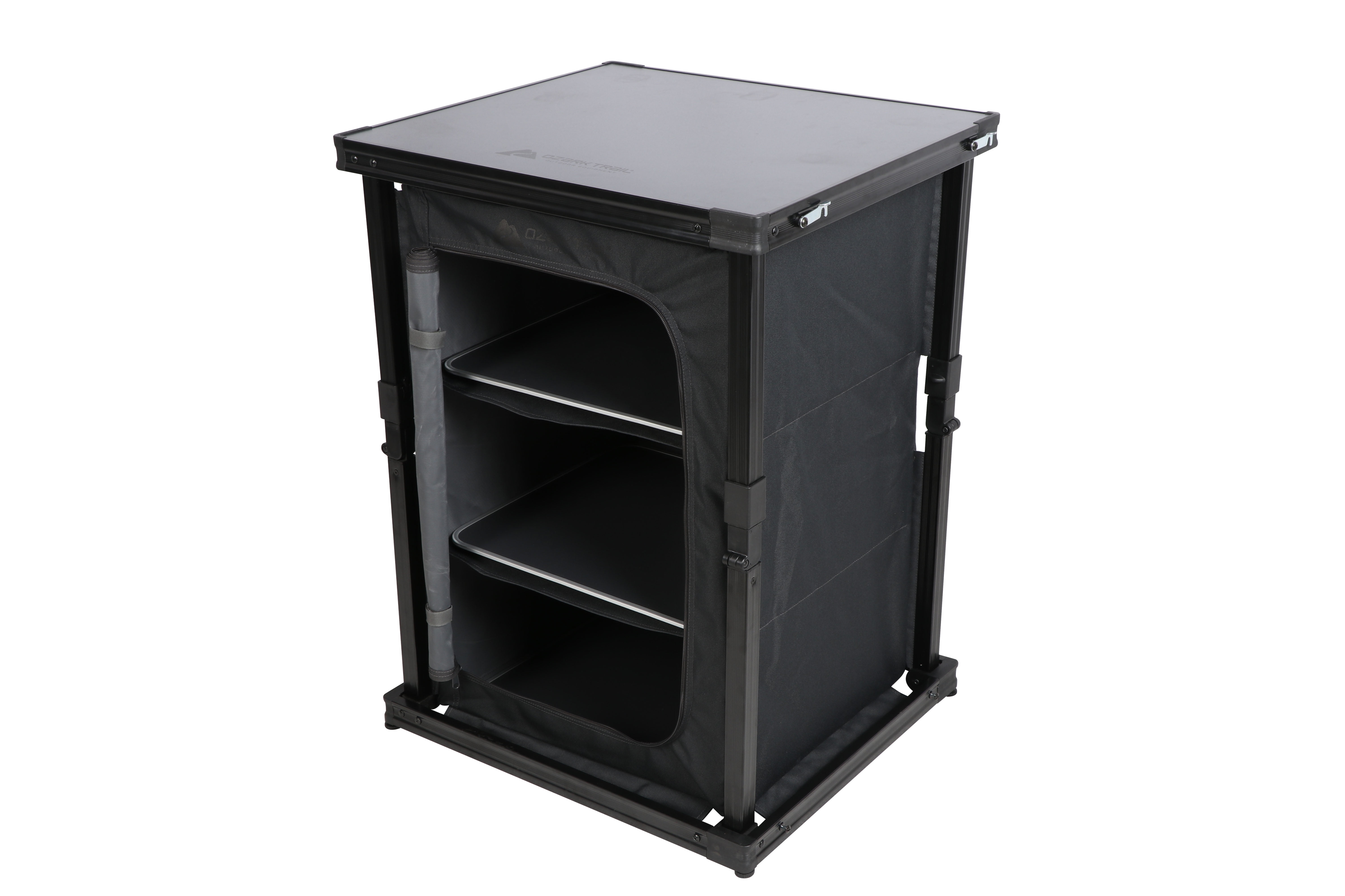 Get ready to whip up a gourmet meal by the campfire with the Ozark Trail Crane Lake Kitchen Organizer. It gives you plenty of room for prep and storing your cooking tools and supplies at the campsite. An easy-to-clean MDF board on top is perfect for preparing your food and wiping up the mess. Setup is easy with this organizer, so you can save on the hassle and concentrate on the outdoor fun. When it’s time to go, it folds up easily into a convenient carrying case, making it easy to carry and store in your car trunk or closet. Whether you’re taking the family on an extended camping trip in the mountains or just taking a day trip to a local hiking trail, Ozark Trail has everything you need to enjoy the great outdoors. Browse all our gear like spacious tents, durable backpacks, warm sleeping bags, outdoor cooking supplies, and more. Step up your outdoor adventures with the Ozark Trail Crane Lake Kitchen Organizer, Gray color. 23.6Wx20Dx31.5H