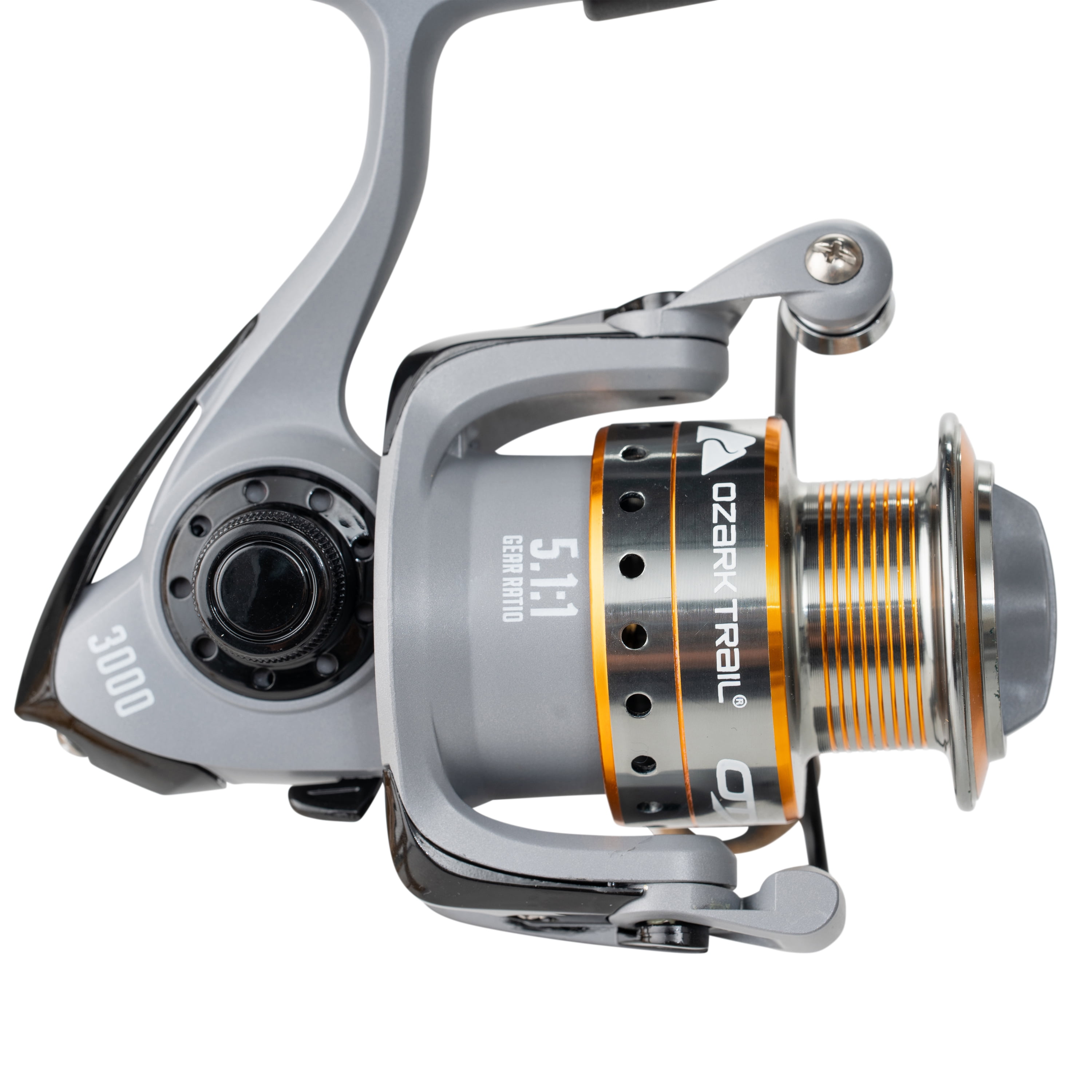 7’0″ 1 piece IM7 rod 8 ball bearing size 3000 spinning reel 5.1:1 gear ratio Ozark Trail
