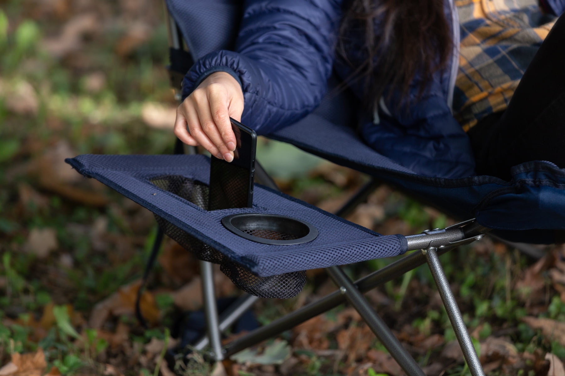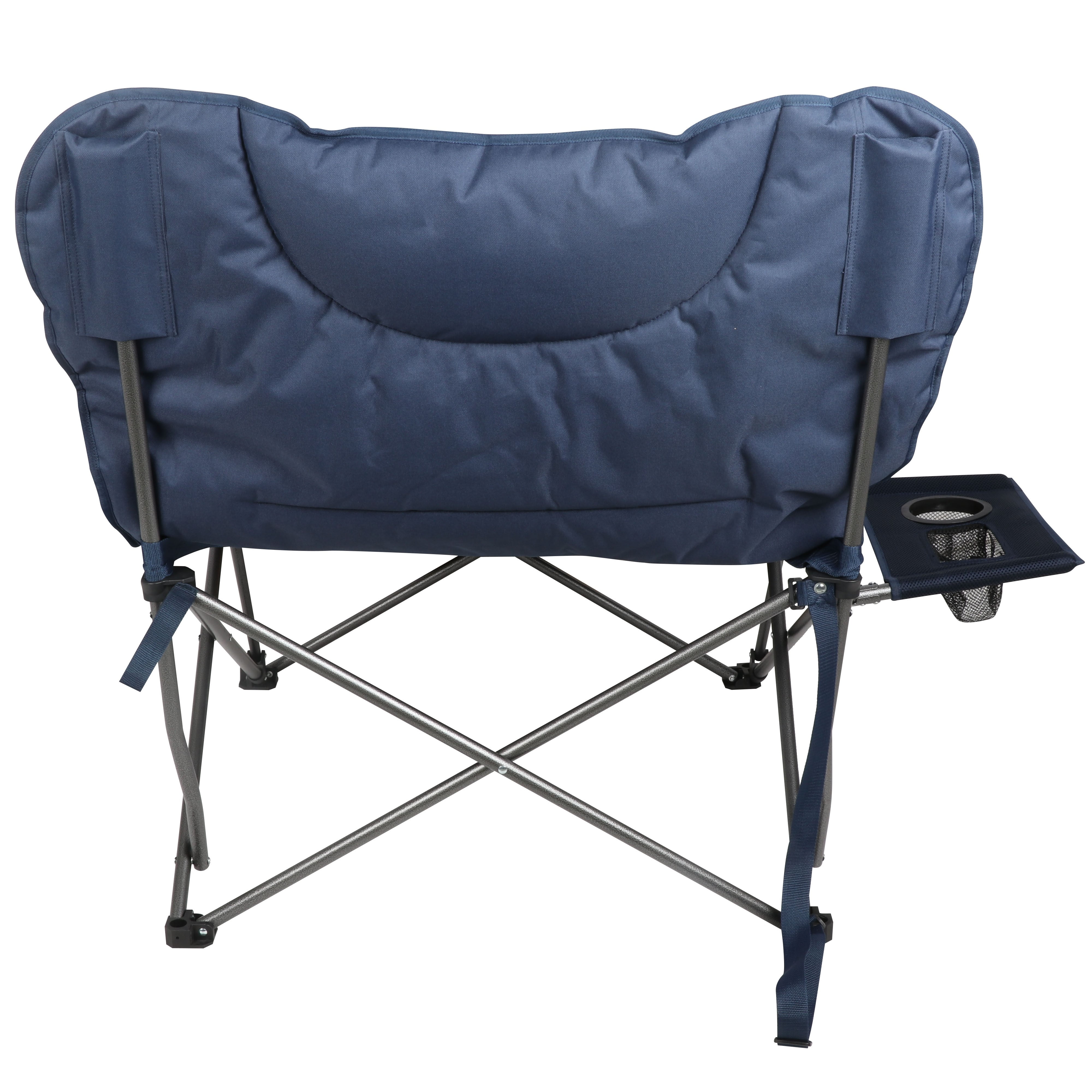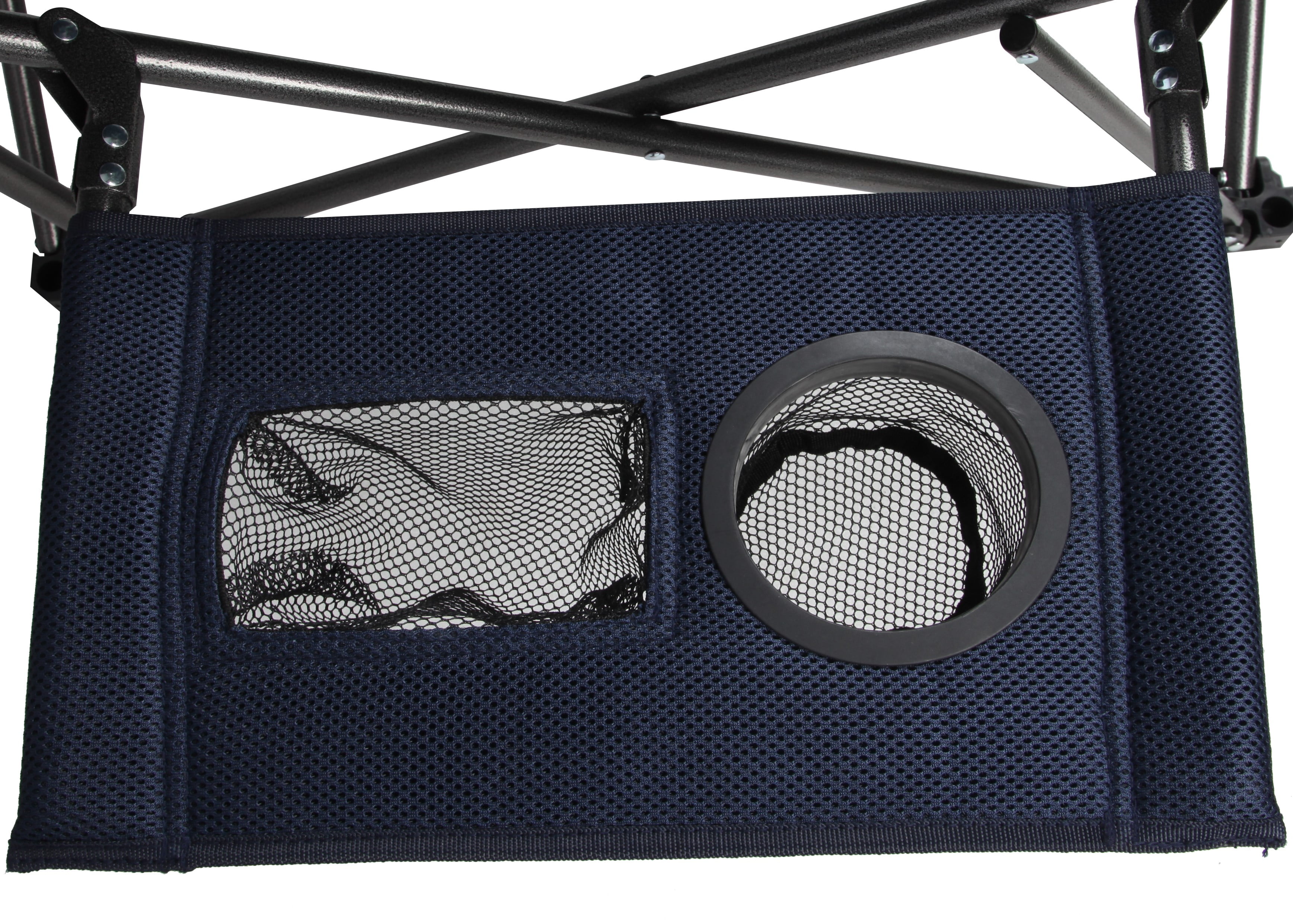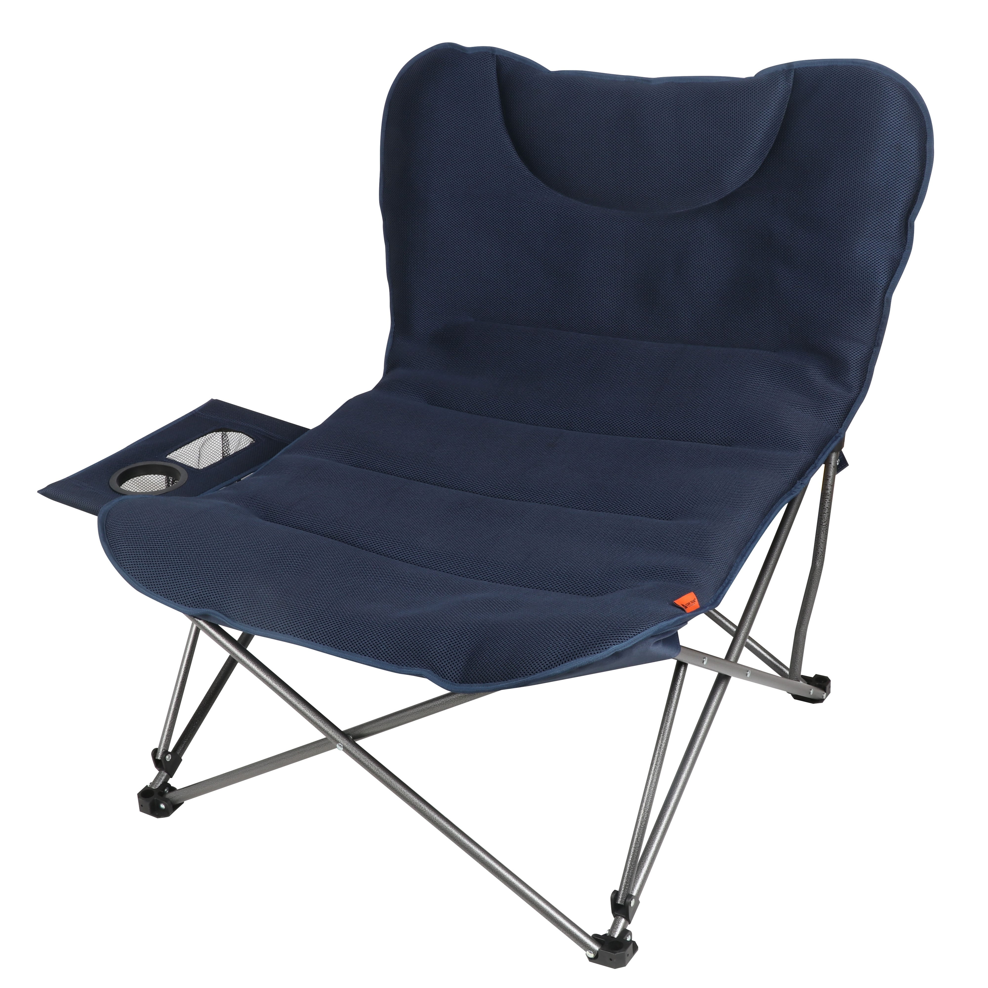 Ozark Trail Oversized Relax Plush Chair with Side Table, Blue Plush, extra wide foldable chair Includes a side table with cup holder Take it with you to sporting events, camping, farmer’s markets, or any outside adventure Can hold up to 300 pounds Made with durable polyester and 3D mesh with a polyester filling Set on a sturdy quad foldable steel frame Adult size Product overall size: 43.5″ W x 37″ D x 37.5″ H Seat size: 32.3″ W x 31.1″ D x 18.1″ H