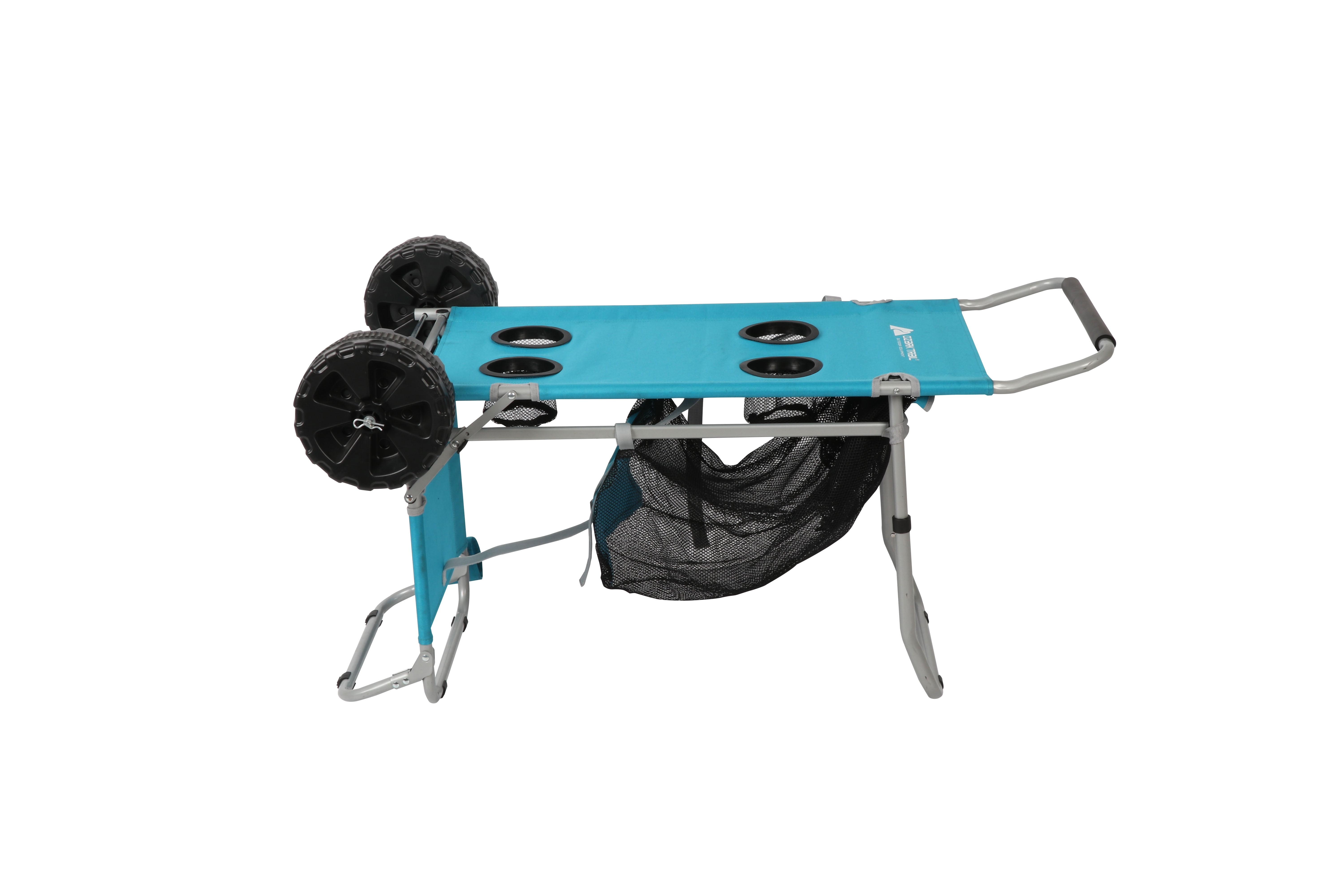 Ready to make your next beach day even better? If so, the extremely versatile Ozark Trail Sand Island Convertible Beach Cart is the perfect addition to your beach day gear. This cart is designed for maximum storage space so you can take everything you need with you. It features a large storage area as well as large and small mesh pockets, you can easily transport bulky items like chairs or umbrellas and keep track of smaller important items like keys, phones, or wallets. Also, this cart’s large beach wheels are specifically designed to make traversing through sand and other terrain effortless. And, when you find your spot on the beach, this cart doubles as a table when turned over and includes 4 cup holders to keep drinks within reach. The Ozark Trail Sand Island Beach Cart is a must-have for your next beach day adventure. Adult use beach cart.