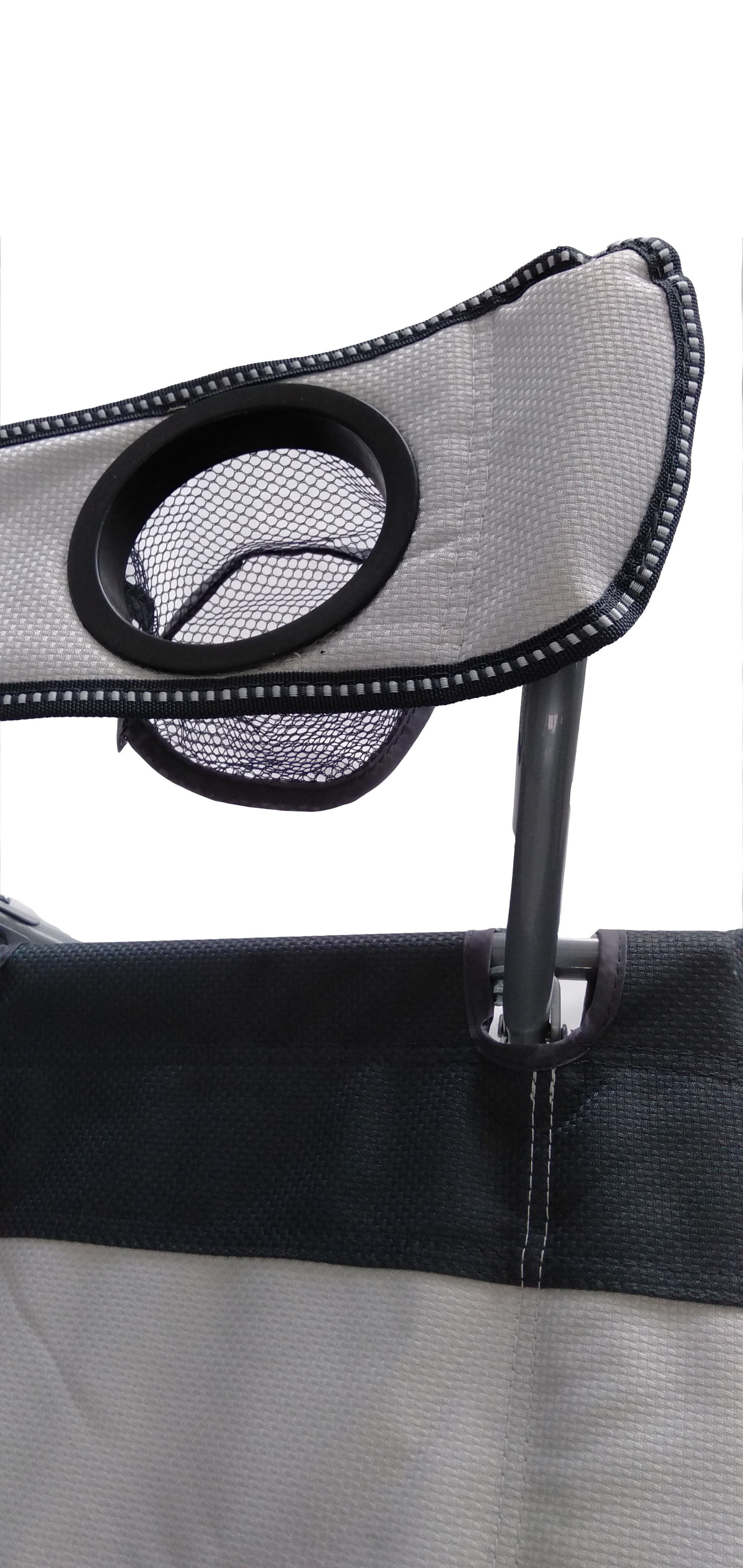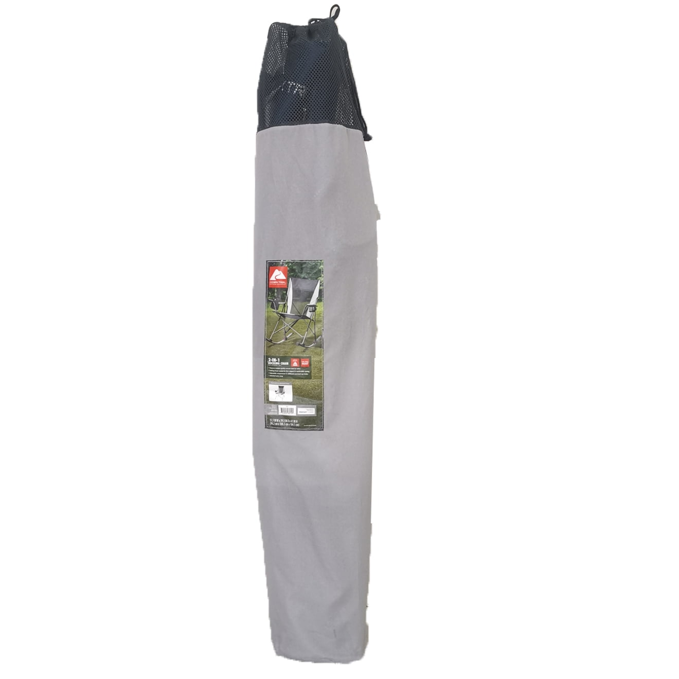 Ozark Trail Tension 2 in 1 Rocking Chair Grey and Black Durable steel frame Breathable mesh polyester fabric 100% polyester Foldable rocking chair with built-in cup holder Dimensions: 35.5″W x 39.5″D x 41″H Adult weight capacity: 400 lbs. Additional holder for cell phone and other items Folds for storage and transport No assembly required