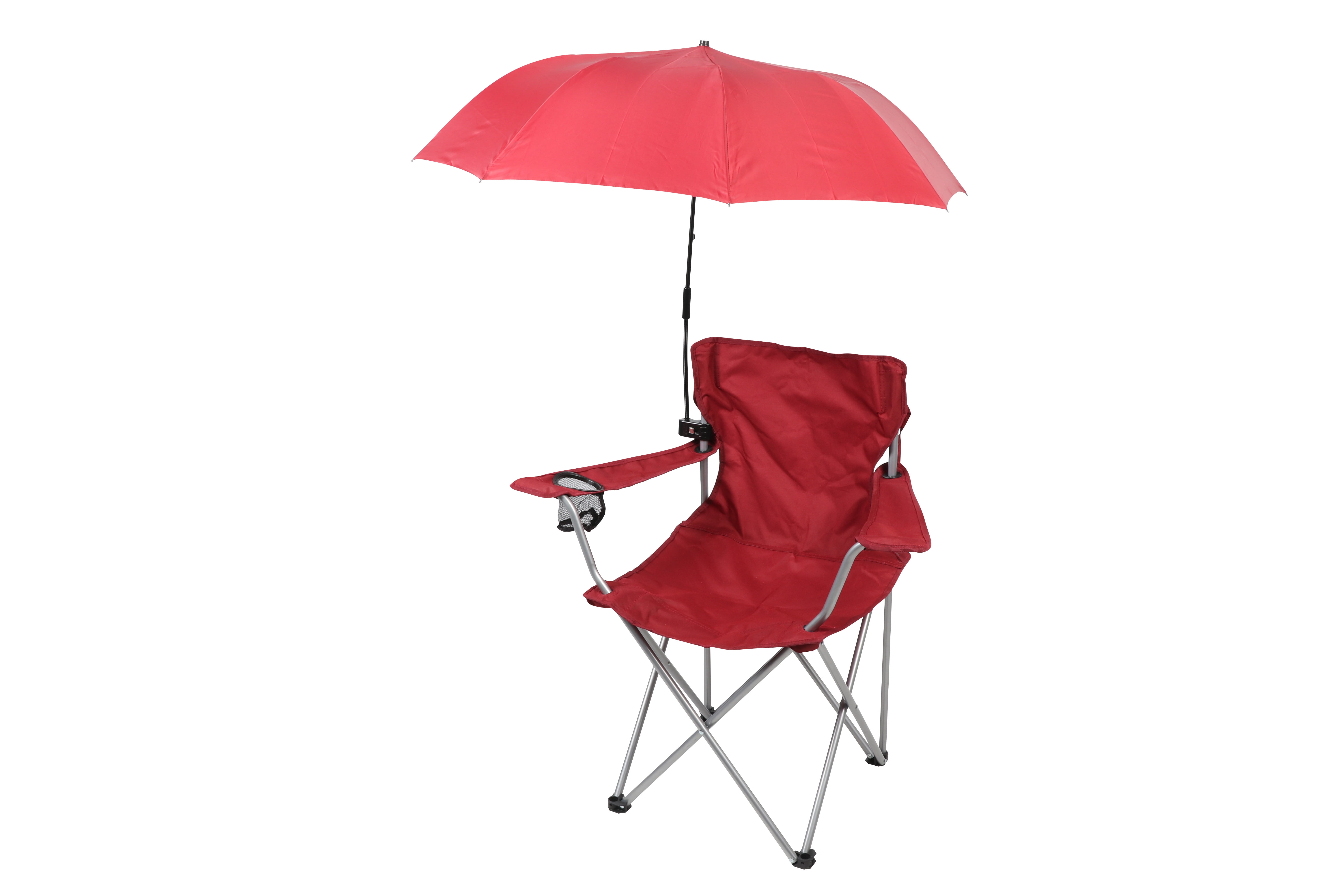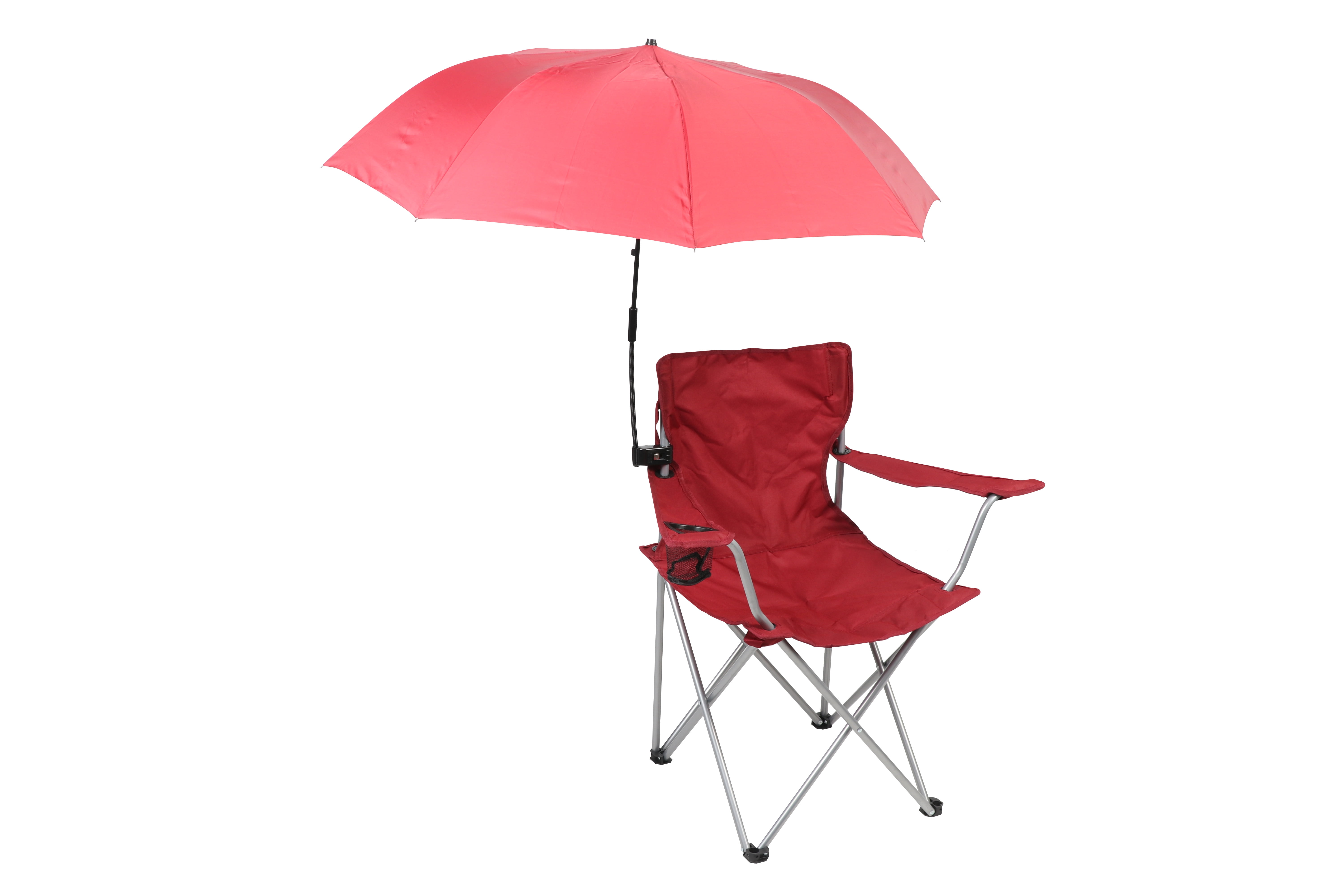 Ozark Trail Regular Chair Umbrella with Universal Clamp Durable red 180T polyester fabric with UPF 50 silver coating to protect you from the sun, rain, and other elements Flexible shaft bends for adjustable and customizable shade and protection throughout the day Clip on the umbrella bottom provides easy attachment to most folding chairs Draw String Carry Bag Easy to transport and store when not in use Adds shade to any chair Adults or teens Product weight (pounds): 1.1 lbs. Dimensions (inches): 42” L x 42” W x 31” H