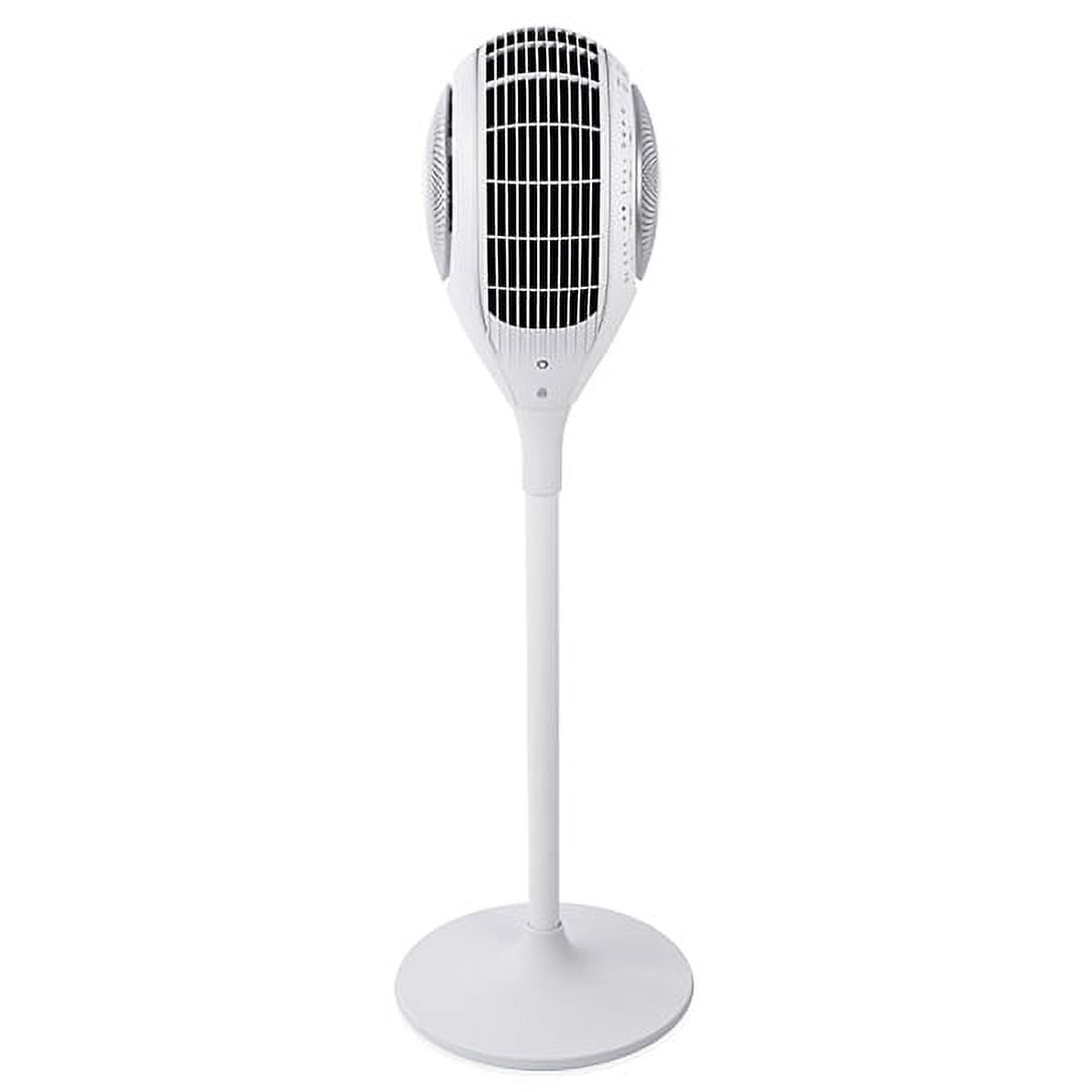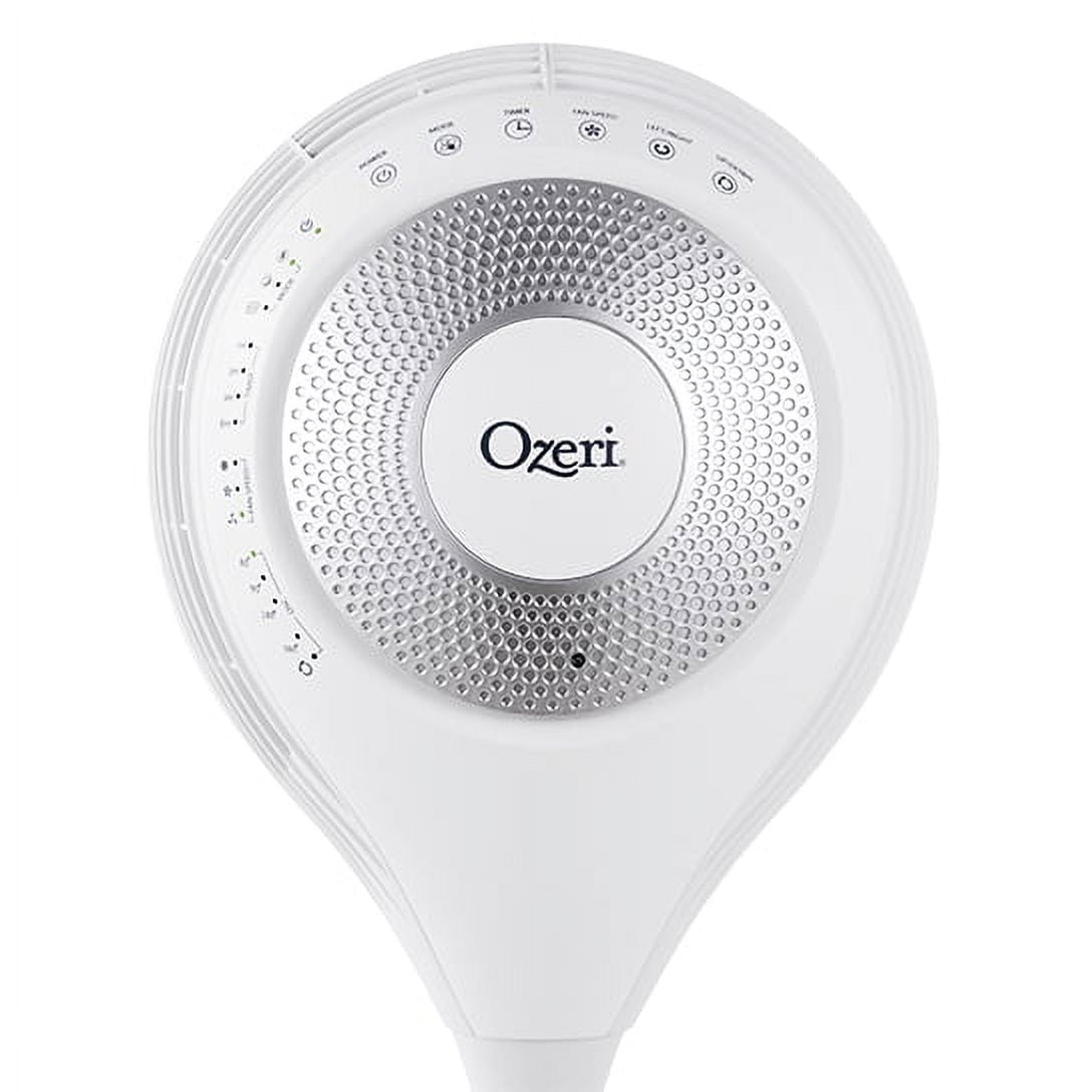 Ozeri 360 Duo Tower Fan Dual Oscillation Large Air Intake Quiet Remote Control Defying conventions both in design and function the Ozeri 360 Duo Tower Fan pairs a unique dual oscillation system with a large air intake vent at its center and a narrower output vent along its outer edge enabling it to refresh an entire room in mere minutes and reach isolated pockets of stale air missed by traditional fans. The large vent at its center allows the fan to intake more air than traditional tower fans while the output vent along its rim boosts the airflow along a more concentrated path resulting in significantly more airflow without a parallel increase in mechanical noise. With the Ozeri 360 Duo Fan s unique dual oscillation system the head of the fan can rotate up to 360 degrees in concert with the separately controlled vertically oscillating vent along one edge of the fan. This unorthodox design generates helical wind currents that cyclically push air across multiple vectors culminating in a complete sphere upon a full rotation. The 360 Duo Fan is supplemented with 4 preprogrammed wind patterns and 3 whisper-quiet speed settings. The wind patterns consist of the Normal Natural Sleeping and Eco modes. Natural mode alternates between low medium and high airflow during a cycle to foster the gentle relaxing wind patterns often found in nature. Sleeping mode provides similar soothing patterned airflow but reduces the speed settings after 30 minutes lowering the volume gradually to guide you into restful sleep. ECO mode adjusts the speed of the fan to meet the demands of varying temperatures providing timely relief to save you the hassle of manually changing the settings. The fan also features an easy-access touch control panel LED display and timer function for 1 2 4 or 8-hour operation before automatically turning off. Additionally the Ozeri 360 Duo Tower fan is equipped with an auto dimming function for light-sensitive sleepers decreasing the LED to 30% of its original brightness for a restful night sleep. Satisfaction guaranteed.