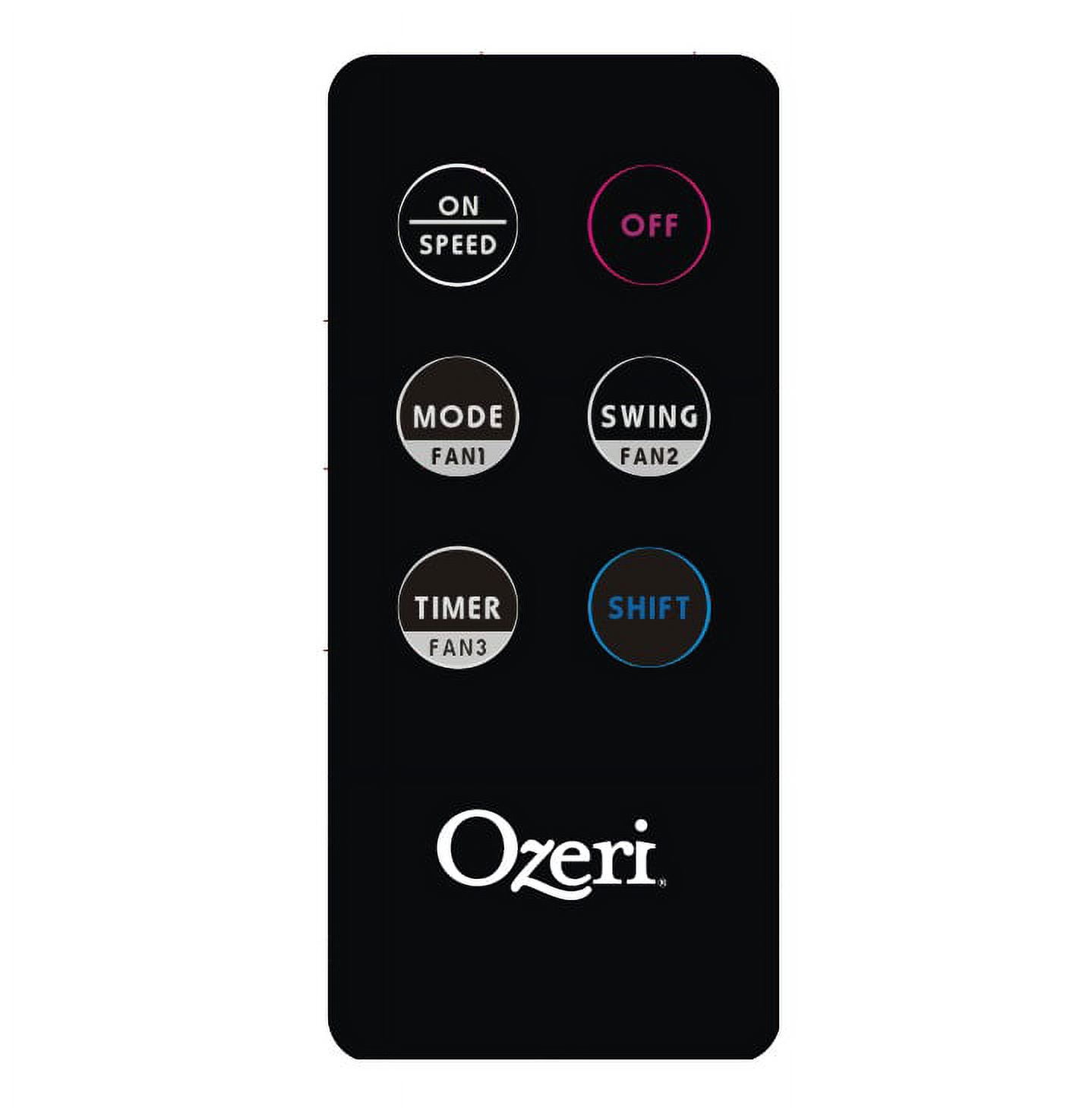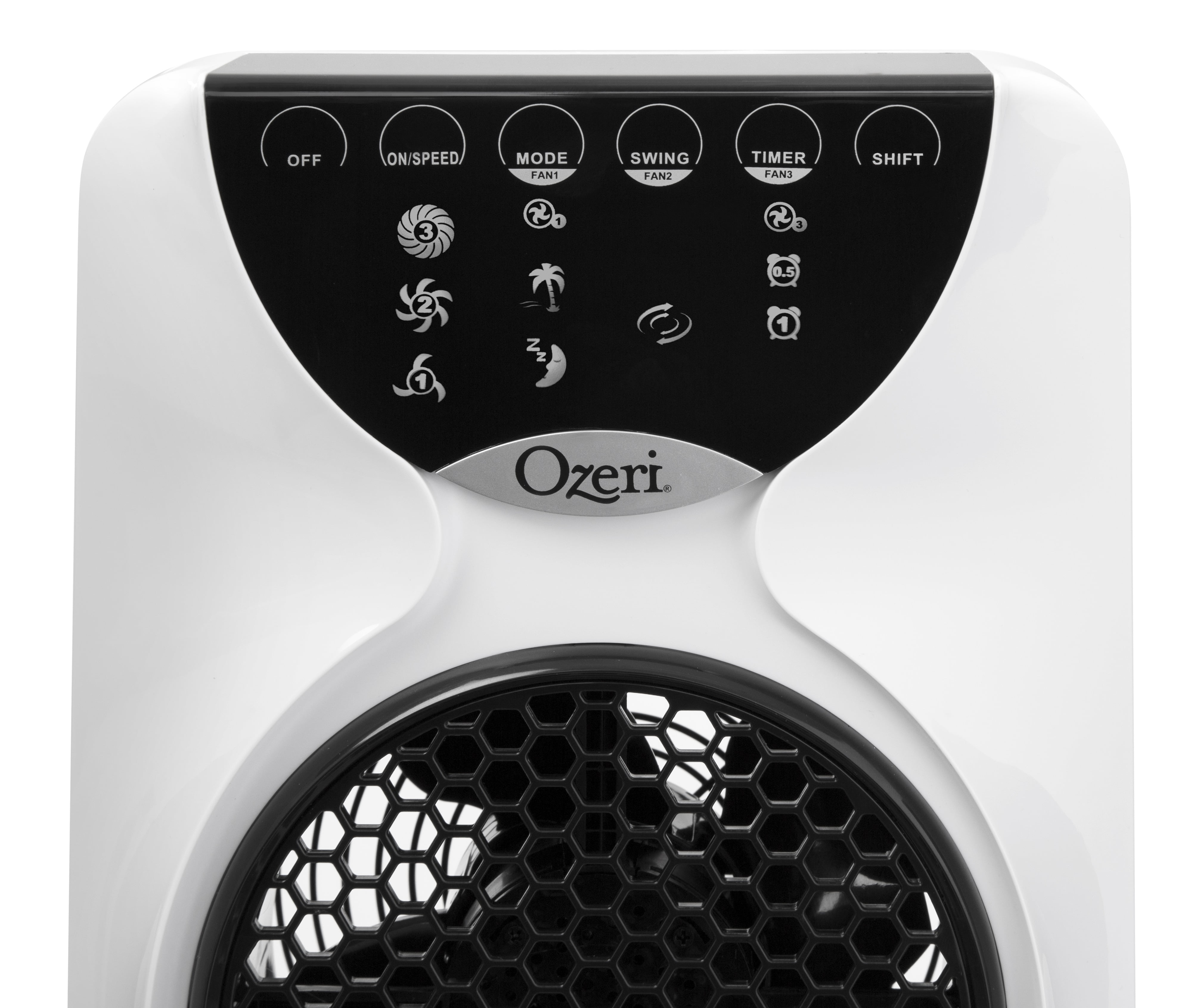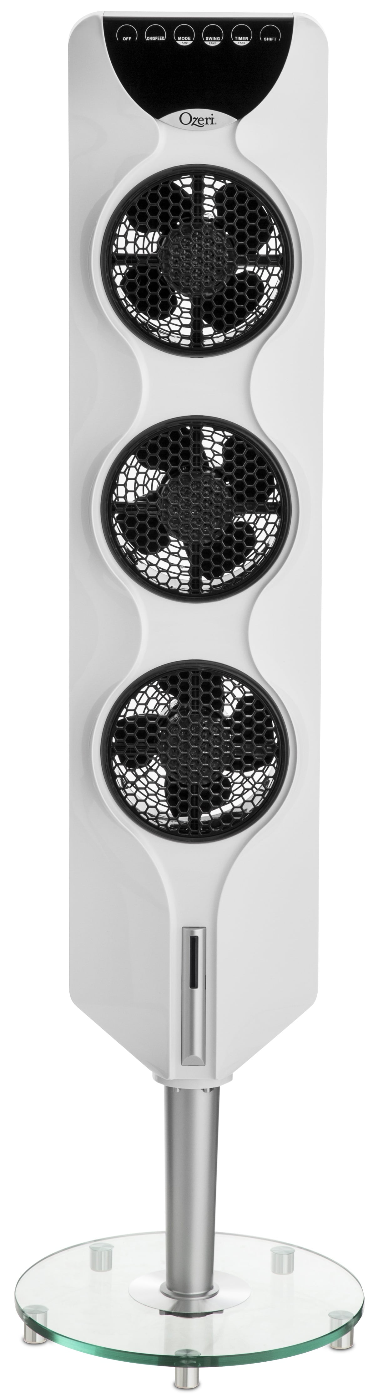 Featuring unrivaled technology, the new Ozeri 3x 44″ Tower Fan defines the latest in stylistic innovation and digital décor with its visually stunning design, slim form factor and elegant glass base stand. At less than 3 inches thick, the 3x Tower fan is one of the world’s thinnest fans and boasts 3 independently controllable fans with passive noise cancellation technology for remarkable airflow velocity at less than 50dB. The 3x Tower Fan’s passive noise reduction technology utilizes the physics of blade curvature to generate mitigating sound waves that reduce blade noise and help isolate the soothing sounds of the airflow itself. The 3x Tower fan is engineered with 3 independently controllable fans and 3 fan speeds, offering up to 9 levels of cooling and the ultimate in customized airflow. It also features 3 preprogrammed airflow patterns designed to foster sleep, relaxation and comfort with 90 degree whisper-quiet oscillation for optimal air circulation for timely relief on a sweltering summer day or for refreshing circulation all year long. The Ozeri 3x Tower Fan also features a 7.5 hour timer that can be programmed in 30 minute increments with ease. All of the Fan’s features, including programmable timer, easily controlled via the included extended-range remote or via the touch sensitive LED control panel. The 3x Tower fan features a dismountable design that only requires the hand assembly of the fan base using an included large nut, with no tools required. Satisfaction guaranteed.