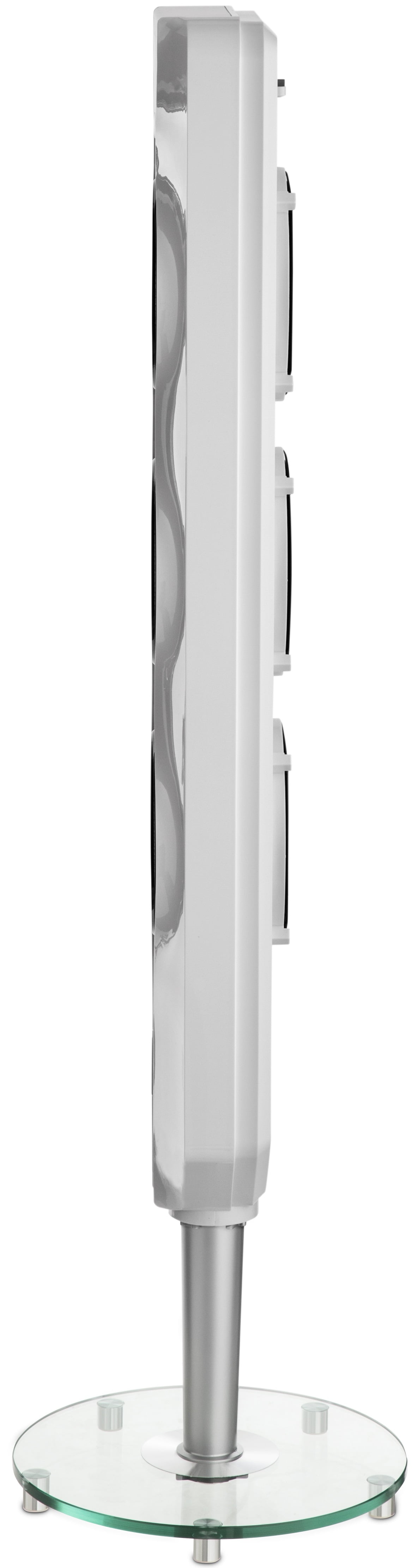 Upgraded with canted fan blades that utilize the physics of blade curvature to generate opposing sound waves to reduce blade noise and isolate the soothing sounds of the airflow itself; Boasting unrivaled technology, the 3x Tower fan is engineered with 3 independently controllable fans and 3 fan speeds, offering up to 9 levels of cooling and customized airflow Defining the latest in stylistic innovation and digital decor, the 3x Tower fan is among the world’s thinnest fans at less than 3 inches thick and boasts a visually arresting design with an elegant reinforced glass base stand; Features 3 preprogrammed airflow patterns designed to foster sleep, relaxation and comfort with 90 degree whisper-quiet oscillation for optimal air circulation Extended range remote control and the touch sensitive LED control panel provide easy access to all features, including a 7.5 hour timer that can be programmed in 30 minute increments
