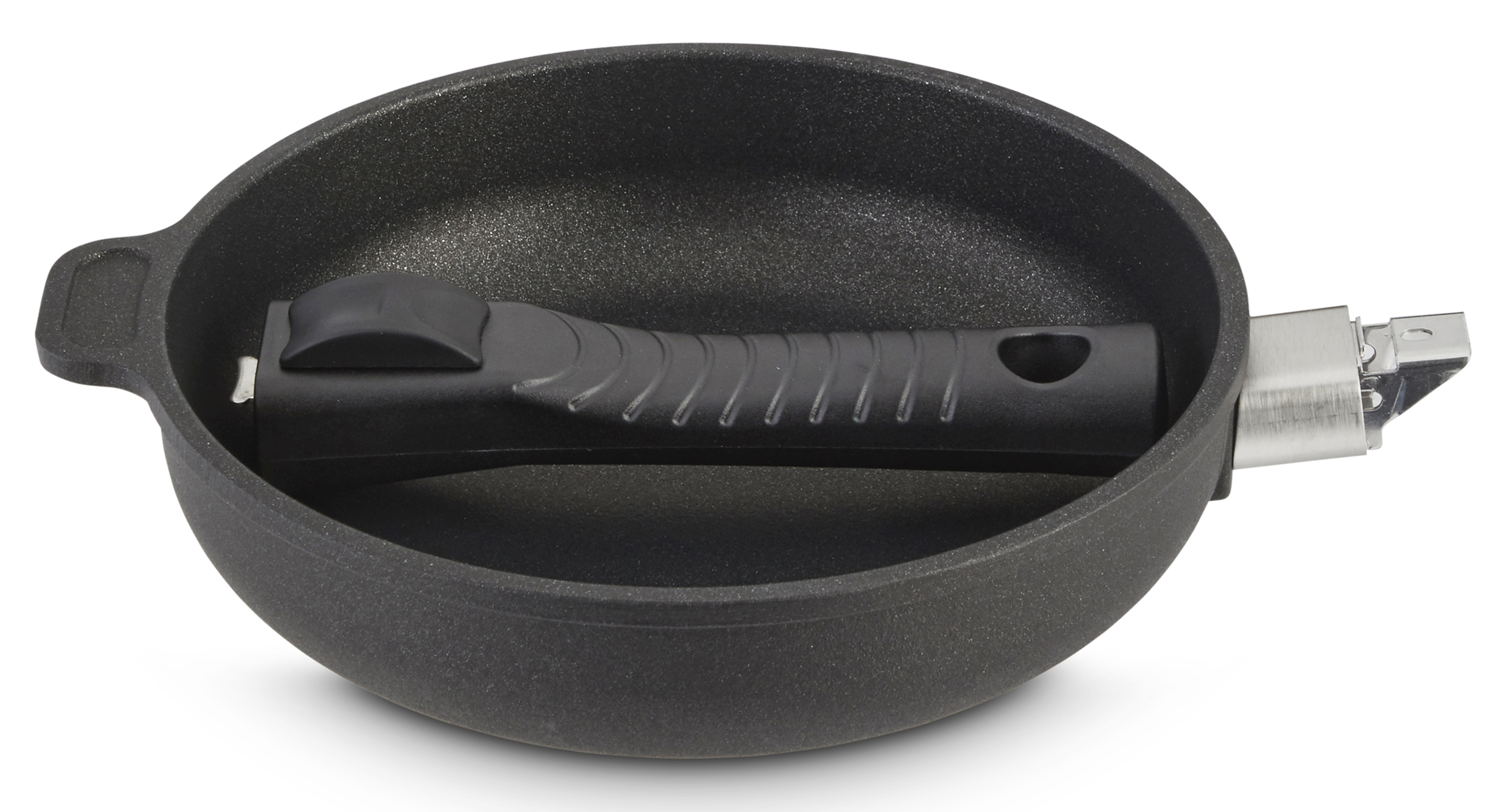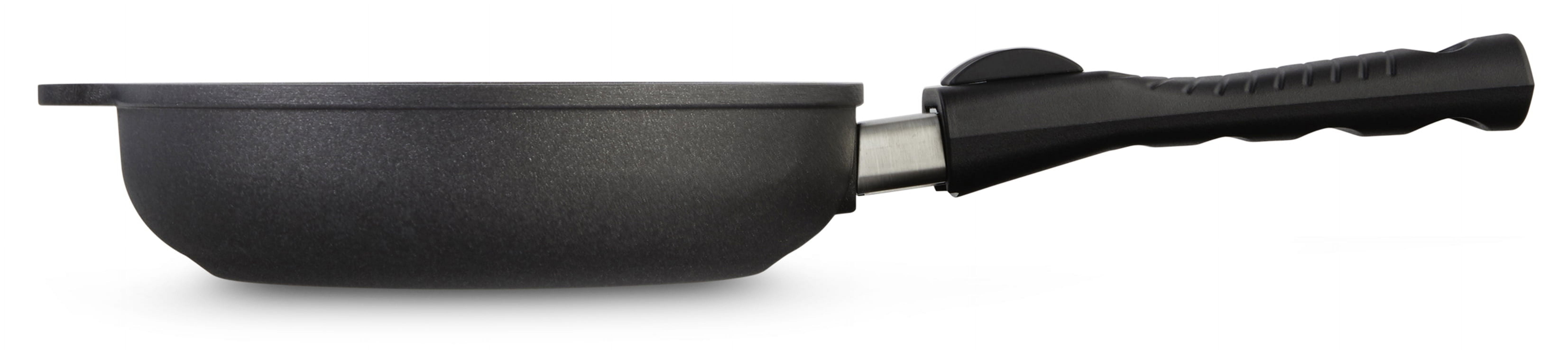 Individually hand-cast in Germany and quadruple sealed with a professional ceramic coating that is hardened for scratch resistance and lifetime performance. Achieves non-stick perfection without risk of exposure to GenX fluorinated chemicals, PFBS, bisphenols (BPS), APEO, PFOS, PFOA, and the lesser known chemicals NMP and NEP. Boasts an indestructible aluminum core that is 3 times thicker than a typical frying pan, a magnetized AISI 430 layer for use with induction stoves, and a comfortable heat-resistant handle that detaches easily, for space-saving storage. Cleans with coveted ease, and oven-safe to 260 C / 500 F. 100% Hand-cast and made in Germany.